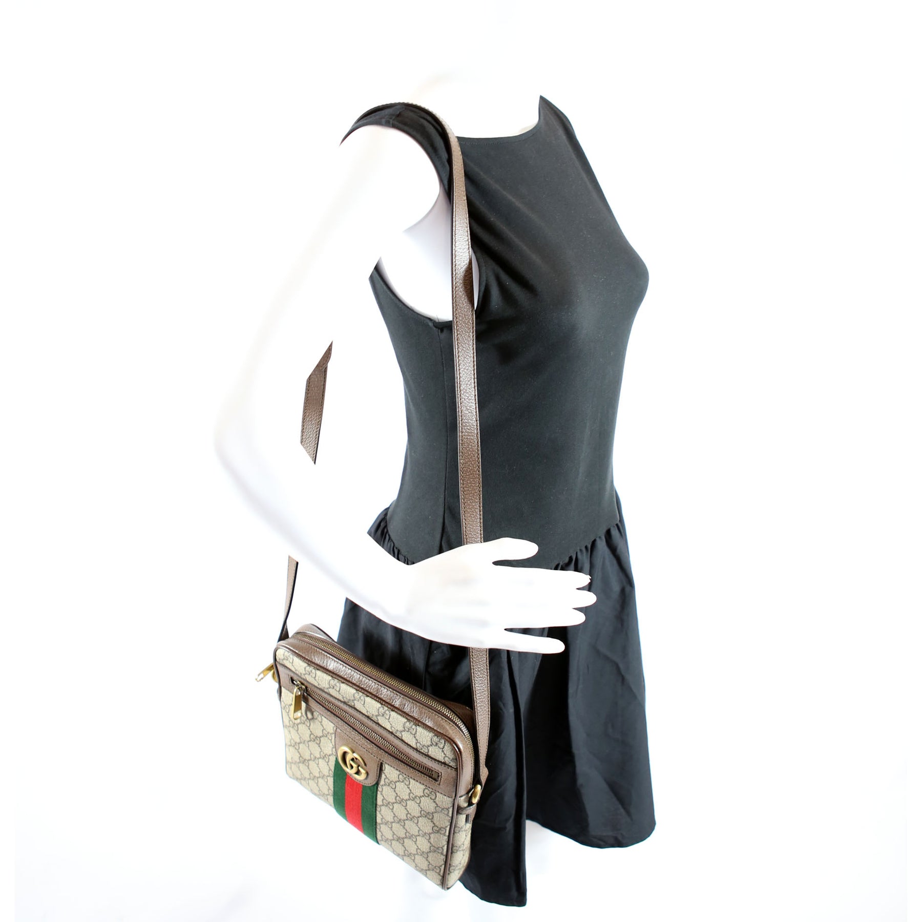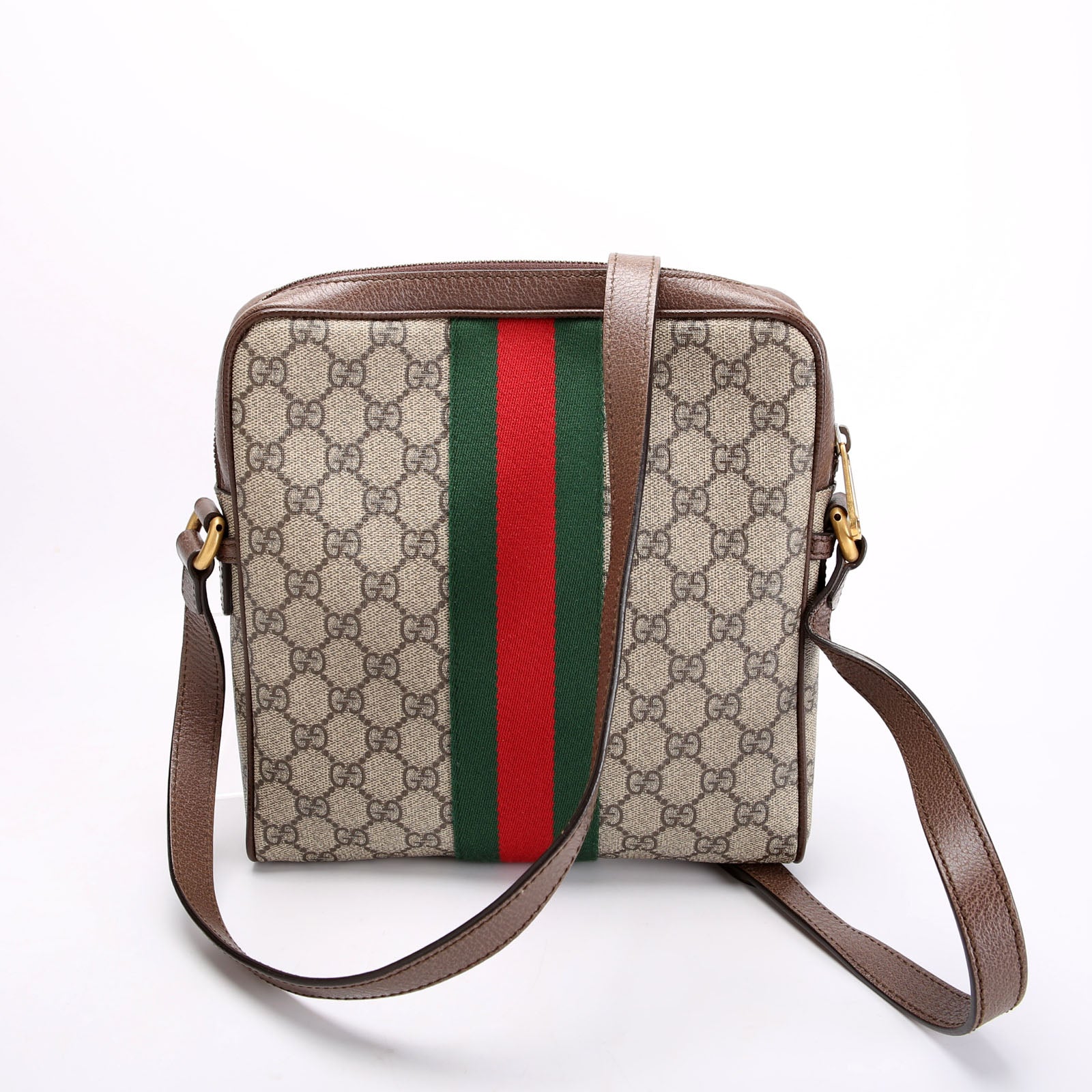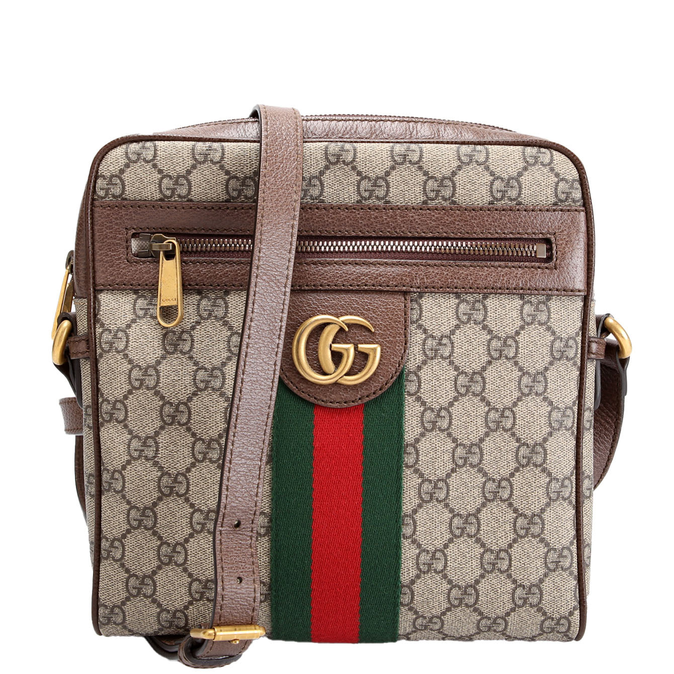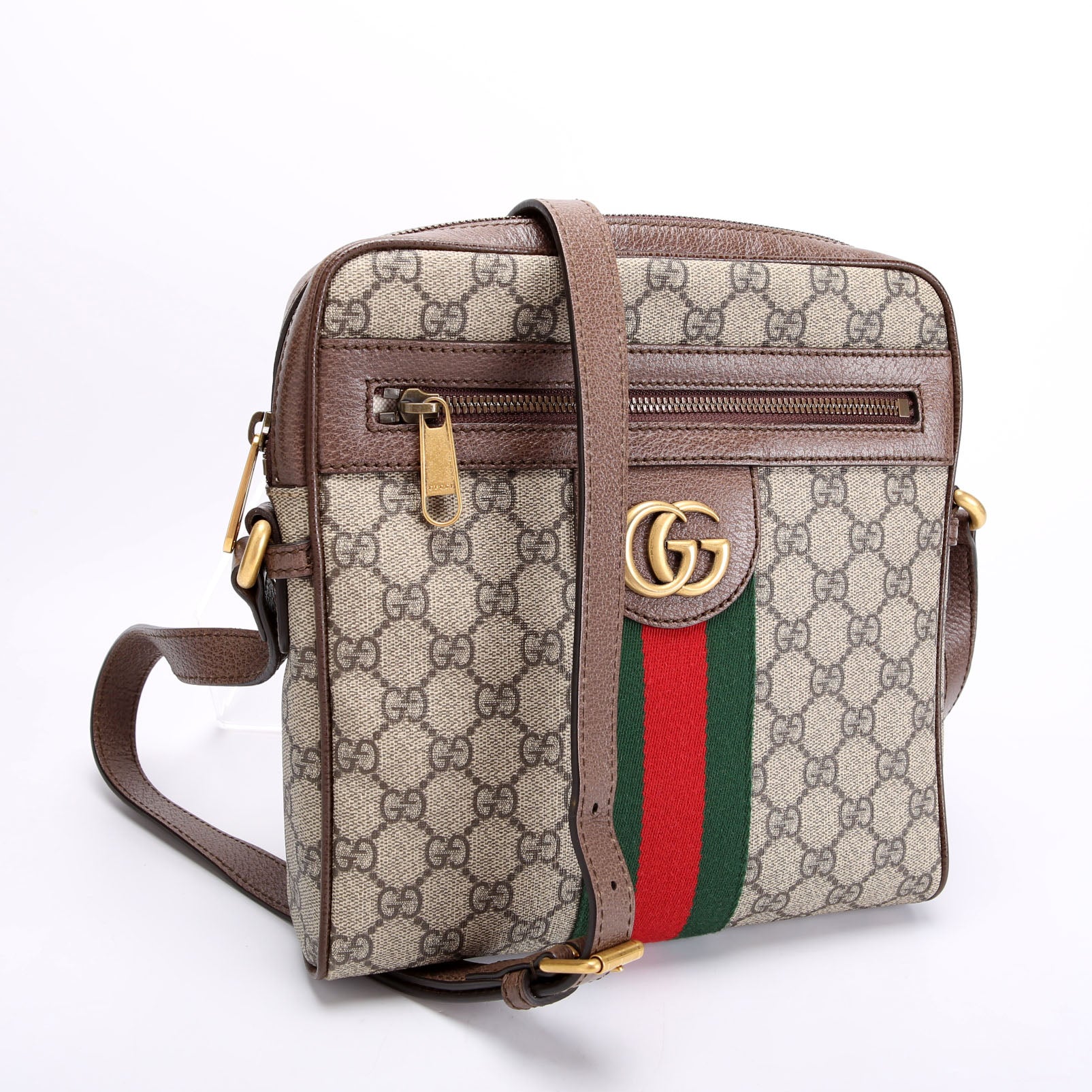 This pre-owned Gucci Ophidia Messenger is guaranteed 100% authentic. The exterior is in the classic Gucci Supreme Coated Canvas.