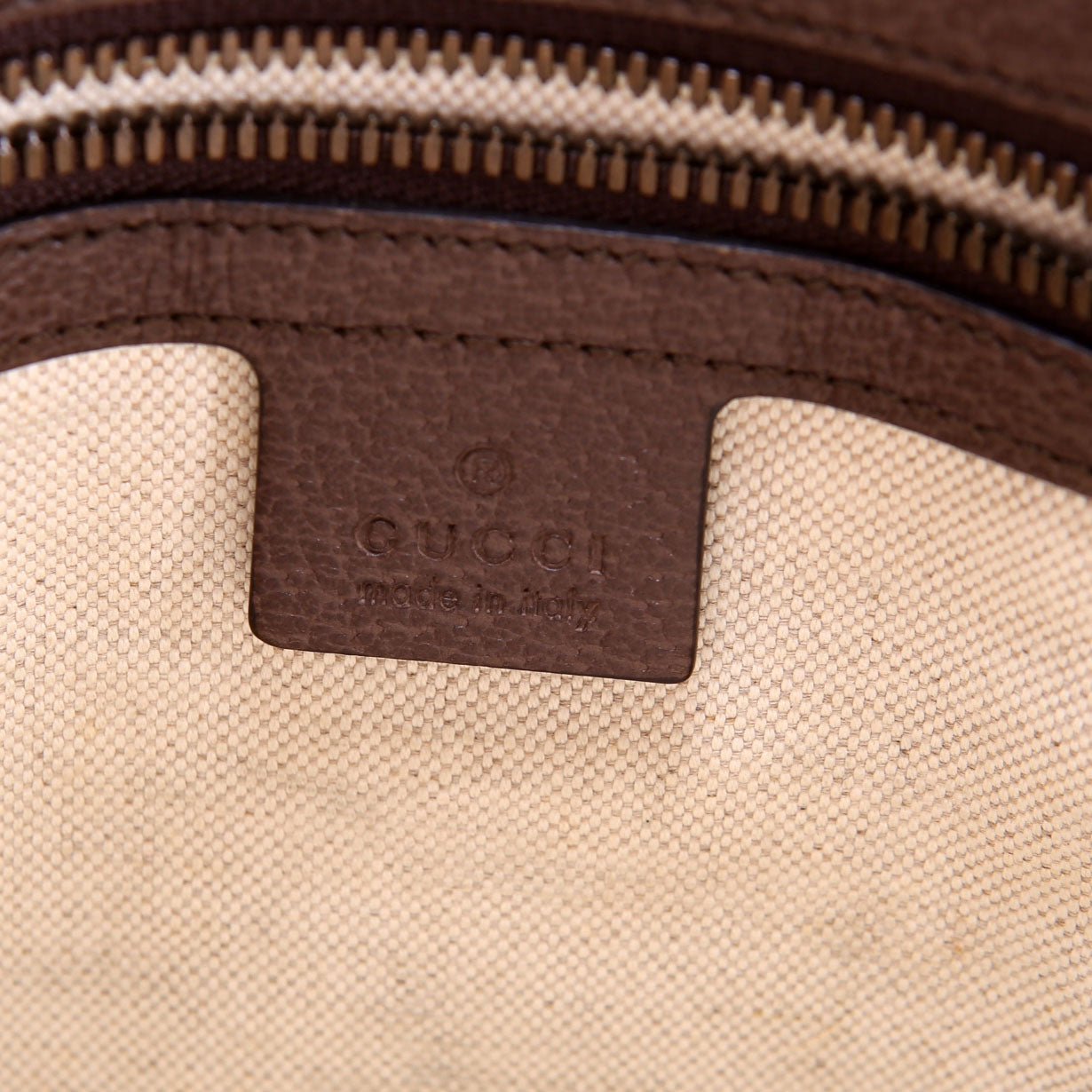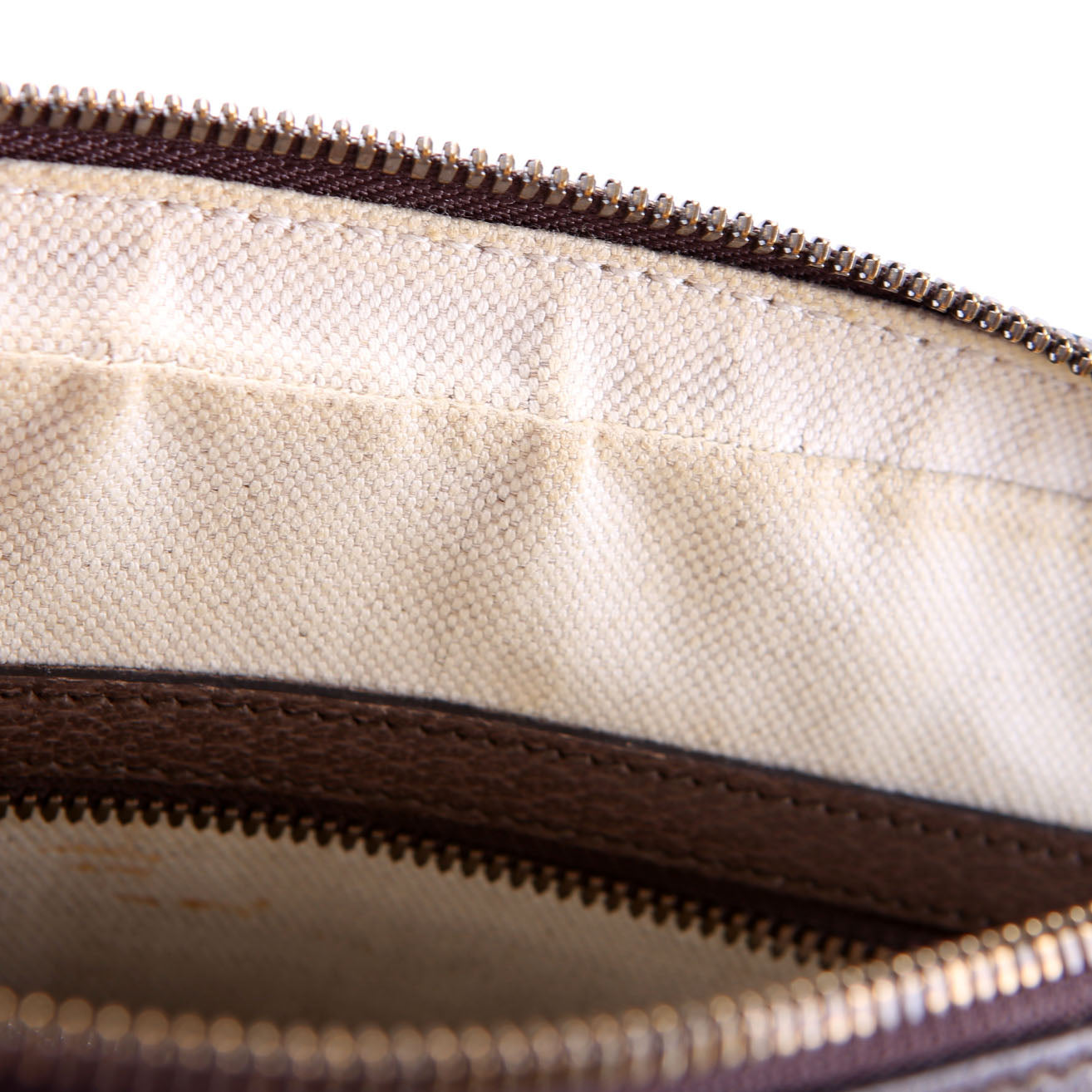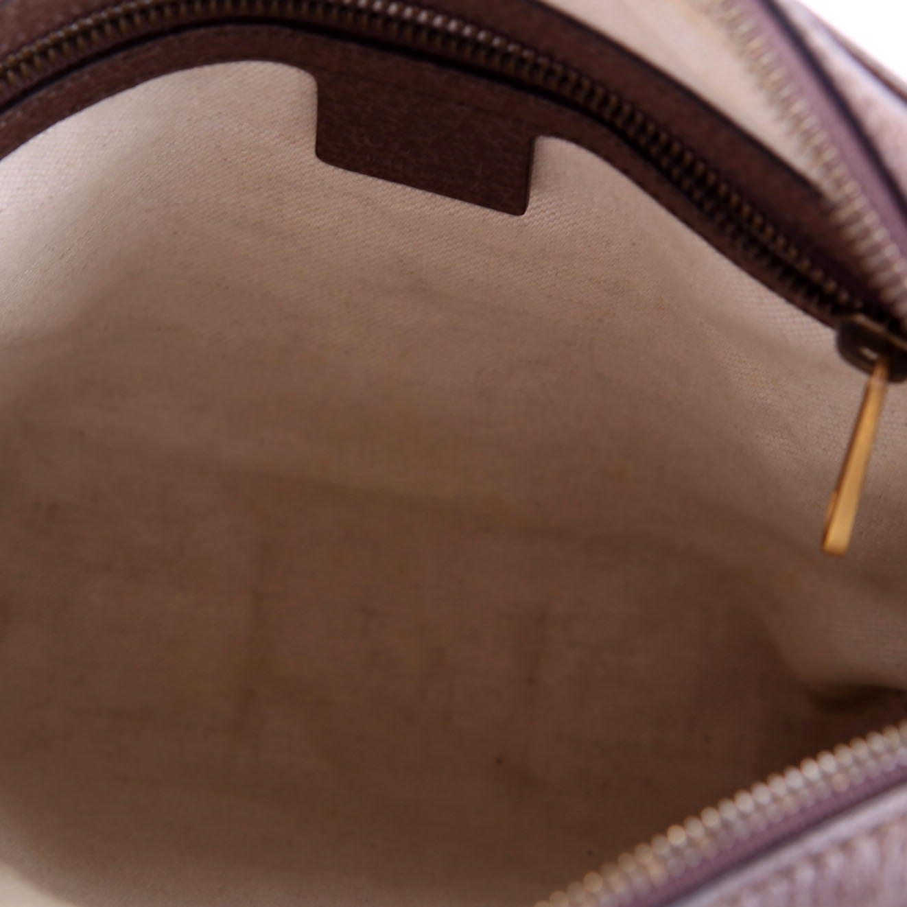 Interior: The interior has minor staining throughout the fabric. The interior features one open pocket and one zipper pocket.