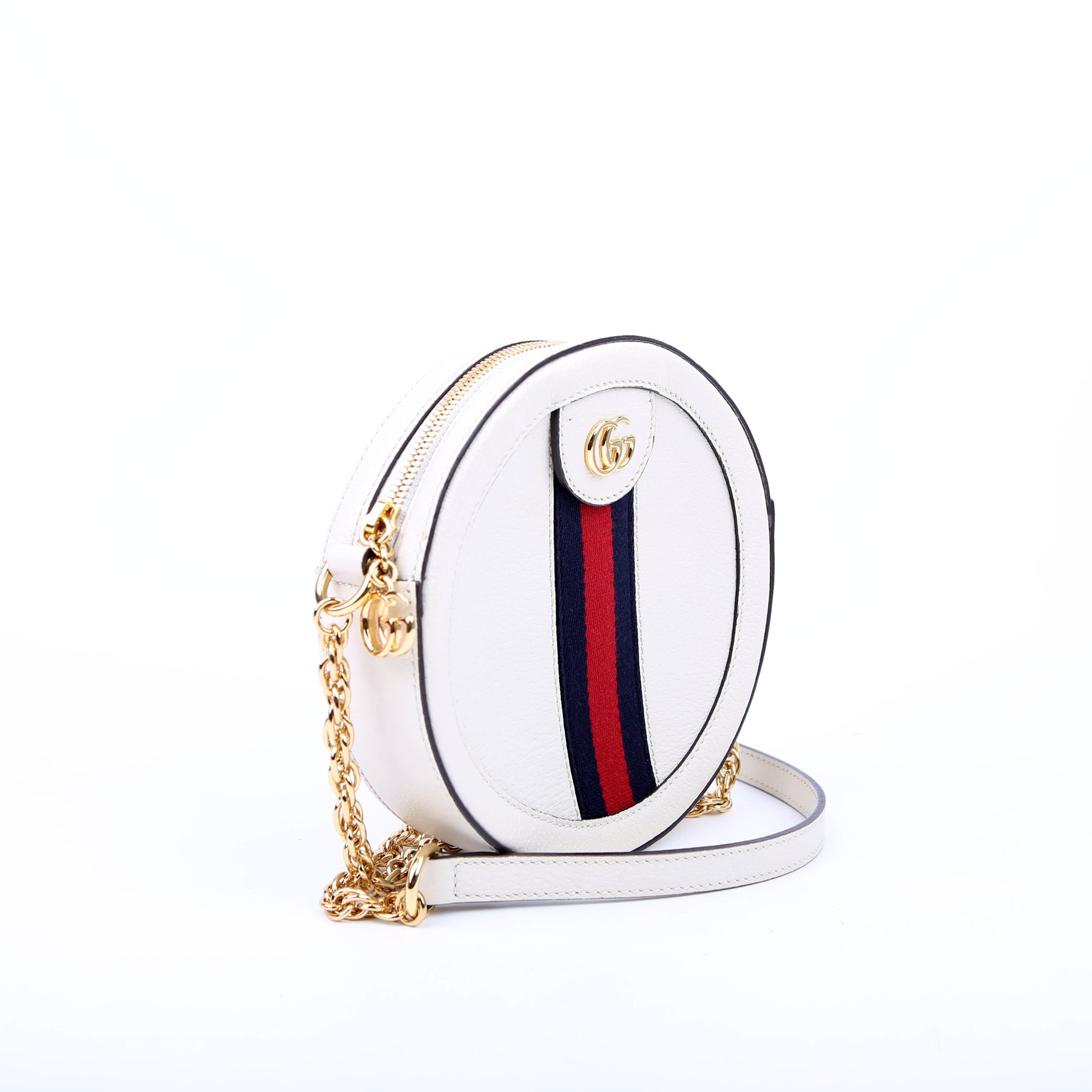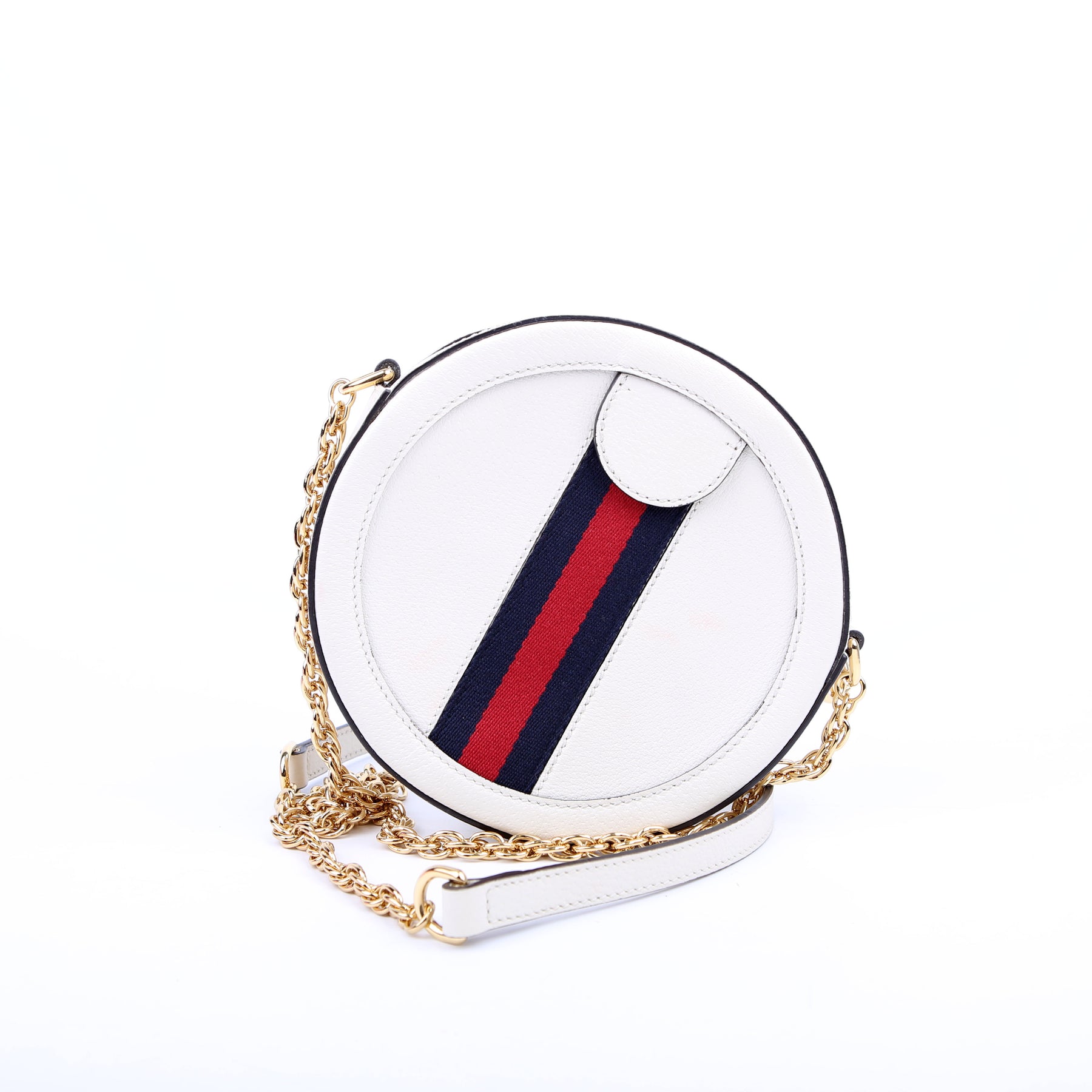 This pre-owned Gucci Ophidia Leather Round Small Crossbody is guaranteed 100% authentic.
