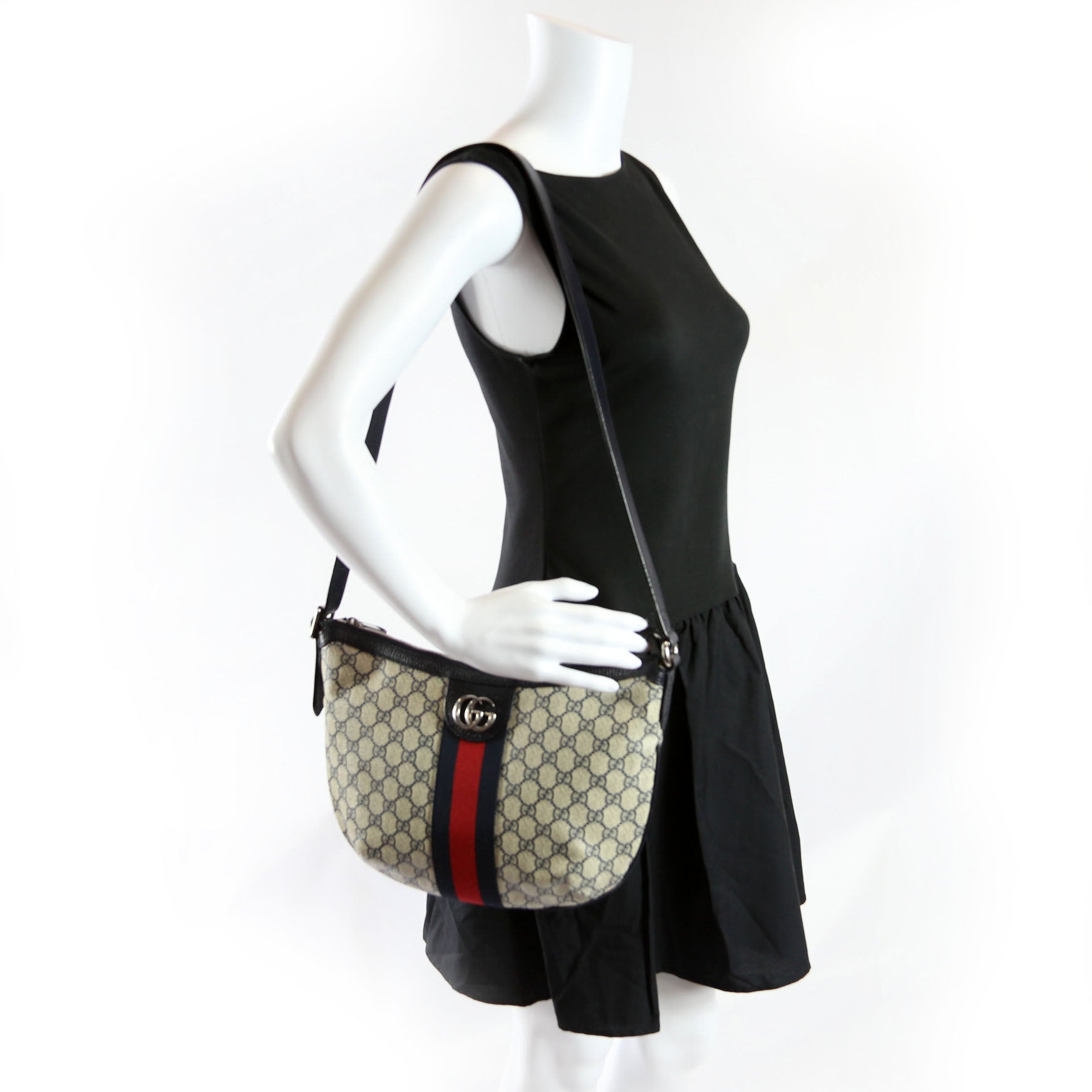 This pre-owned Gucci Ophidia GG Supreme Small Shoulder Bag is guaranteed 100% authentic. The exterior is in the classic Gucci GG Supreme coated canvas.