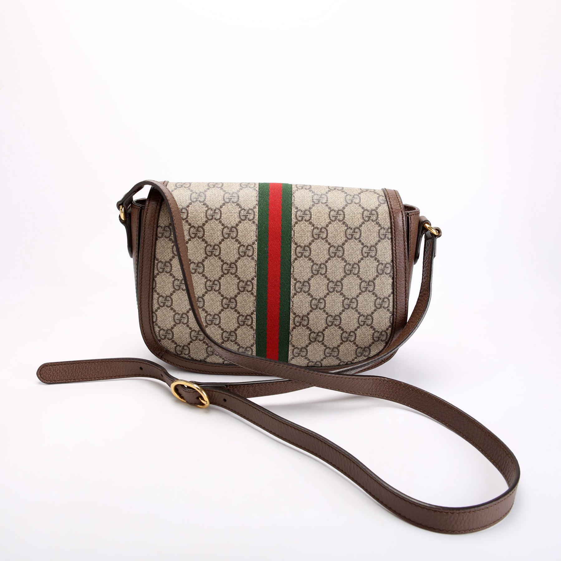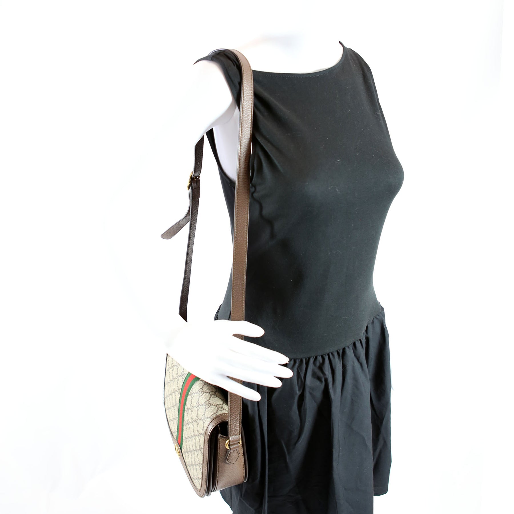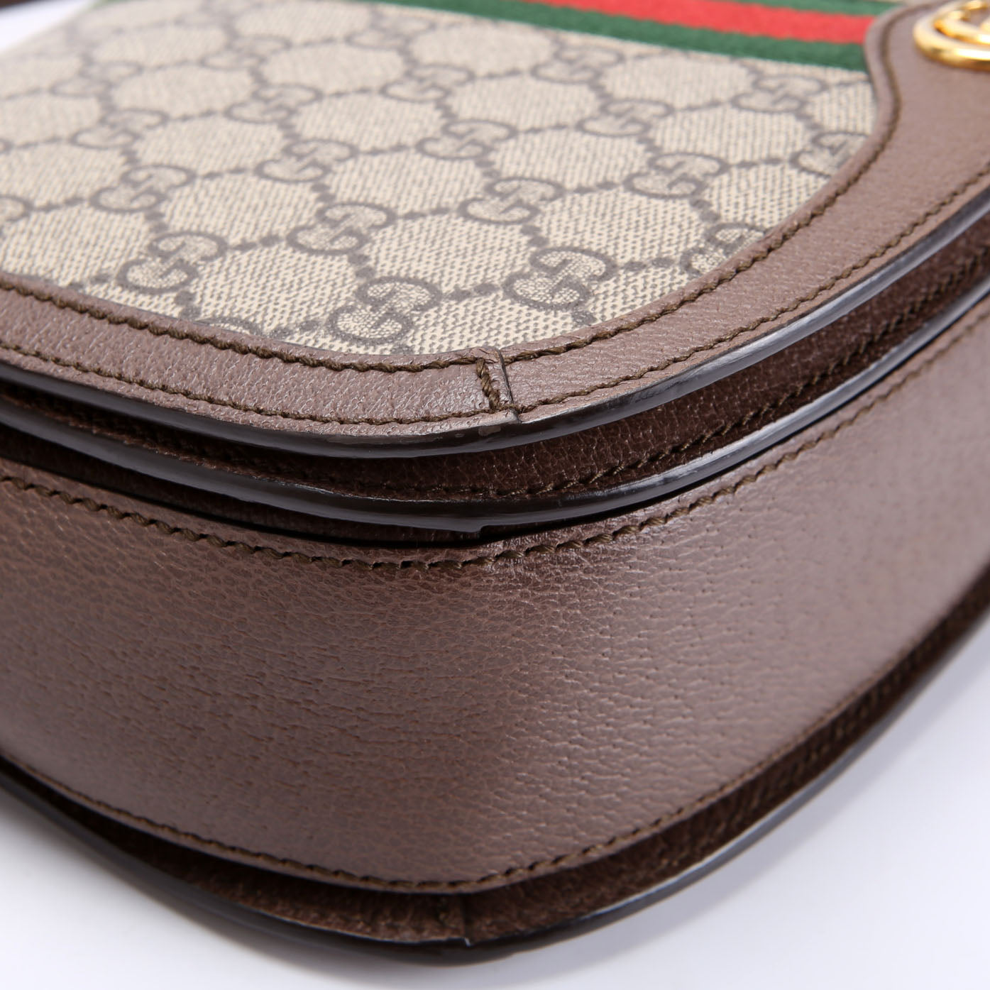This pre-owned Gucci Ophidia GG Supreme Small Shoulder Bag is guaranteed 100% authentic. The exterior is in the classic Gucci GG Supreme coated canvas.
