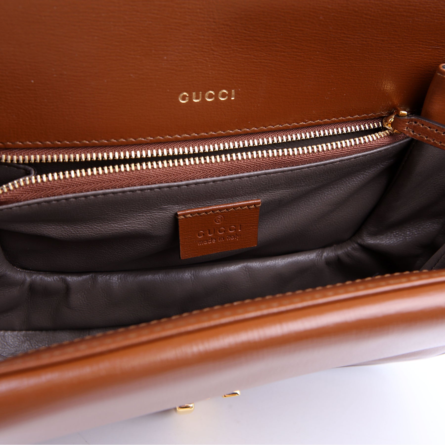 Interior: The interior is clean and free of rips or tears. The interior features one open pocket and one zip closure pocket.