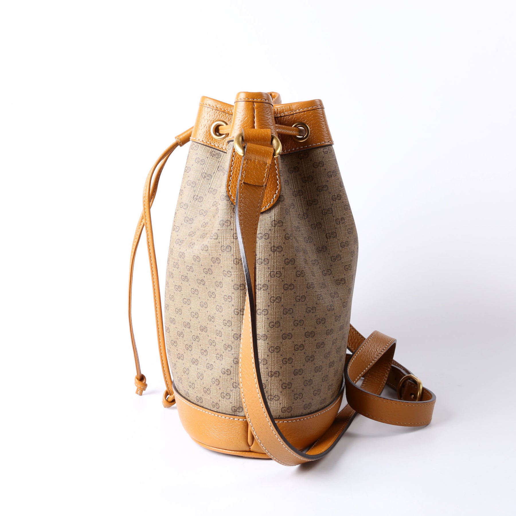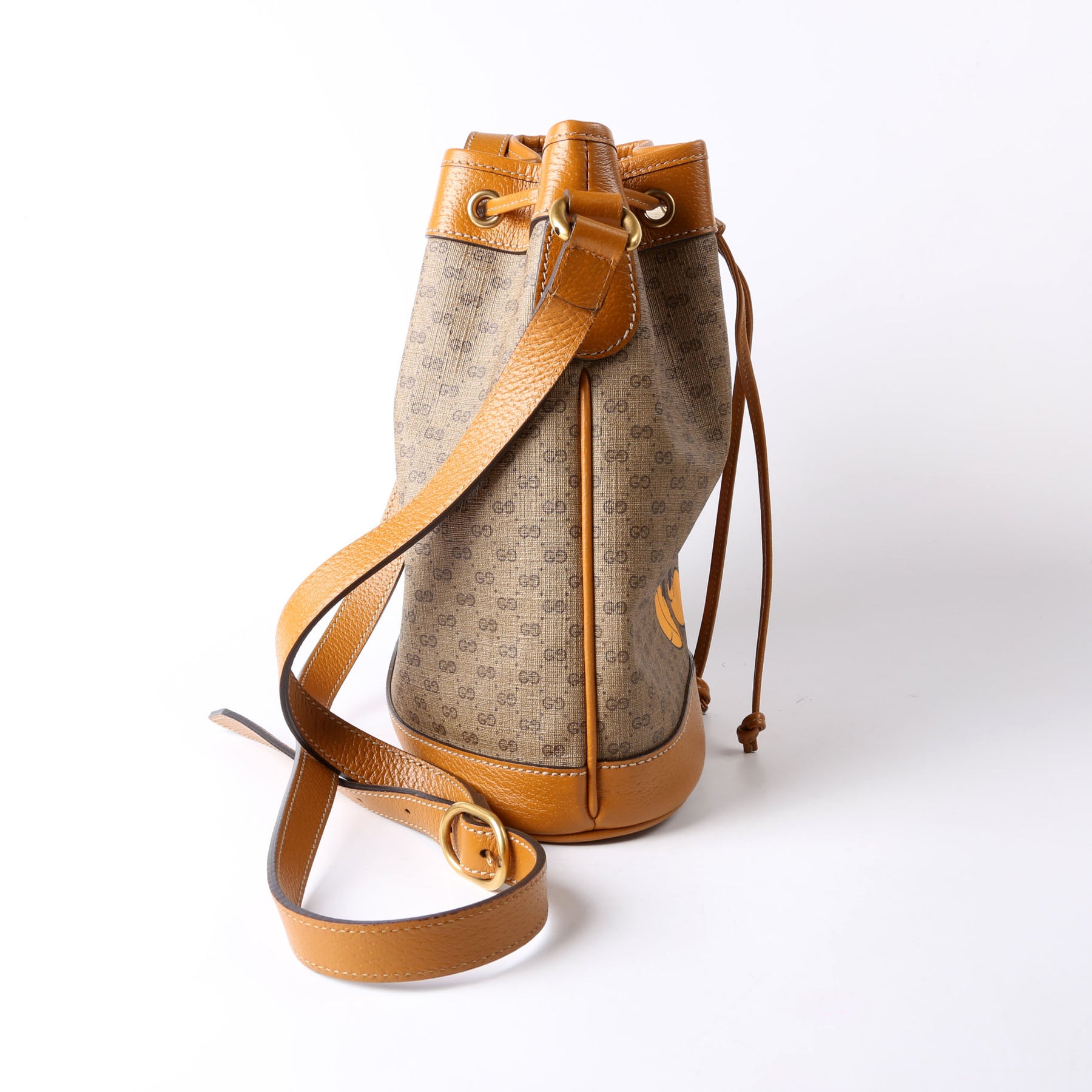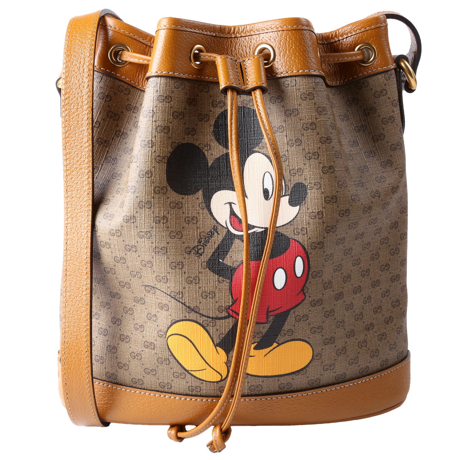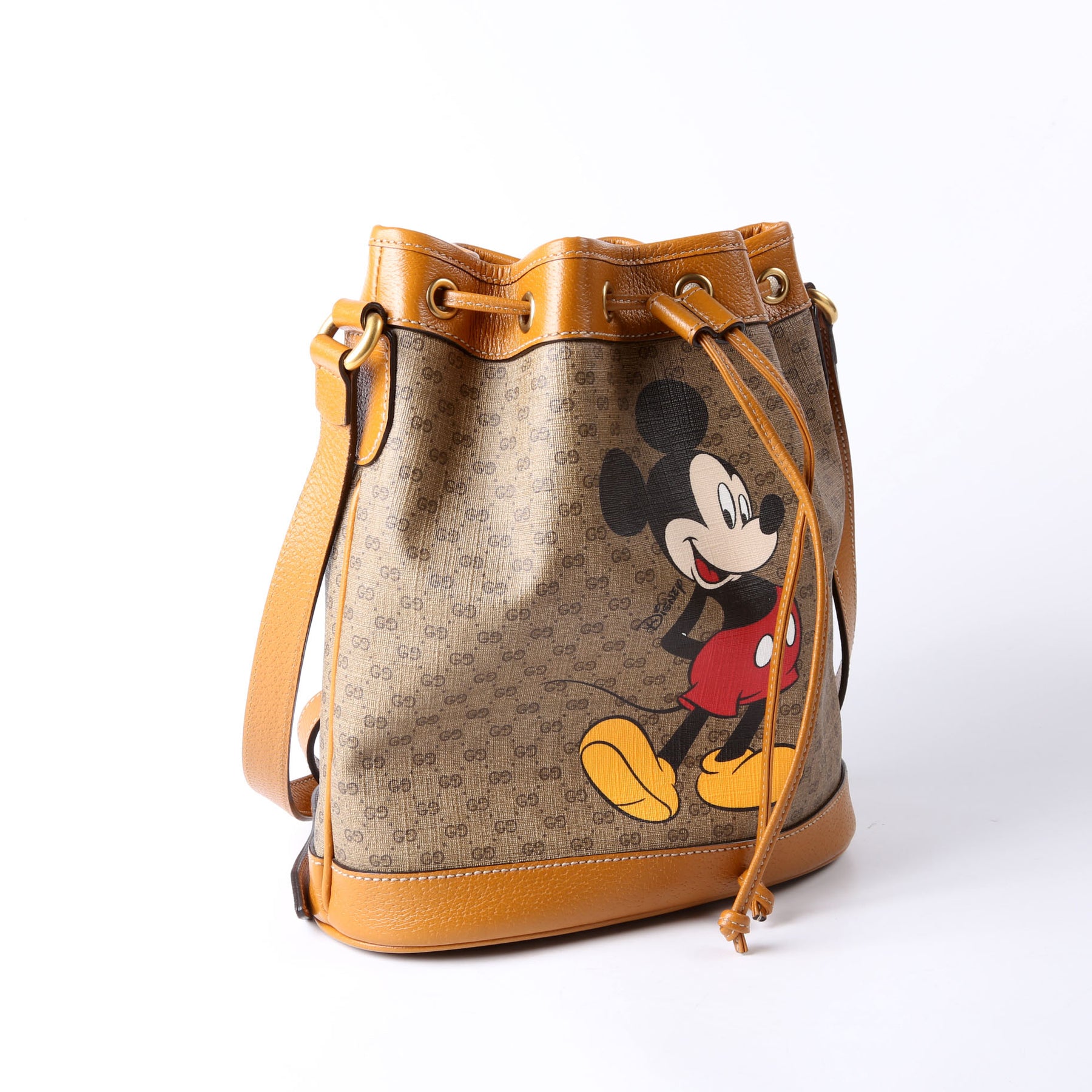 This pre-owned Gucci Disney Micro GG Bucket Bag is guaranteed 100% authentic. The exterior is in the classic Gucci GG canvas.