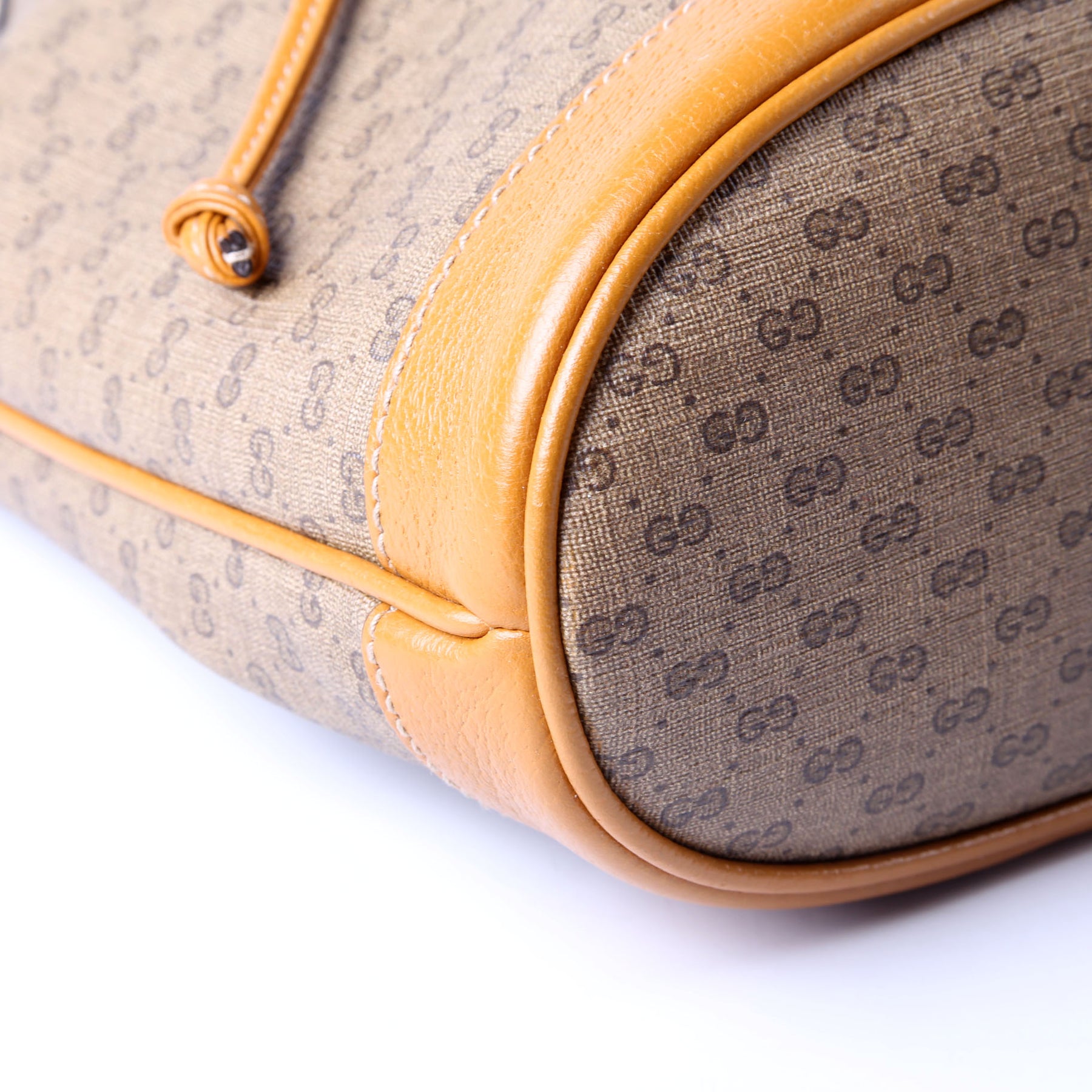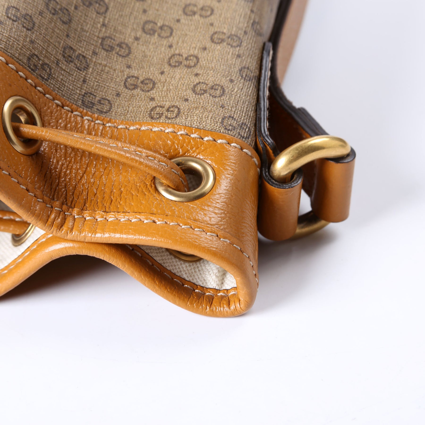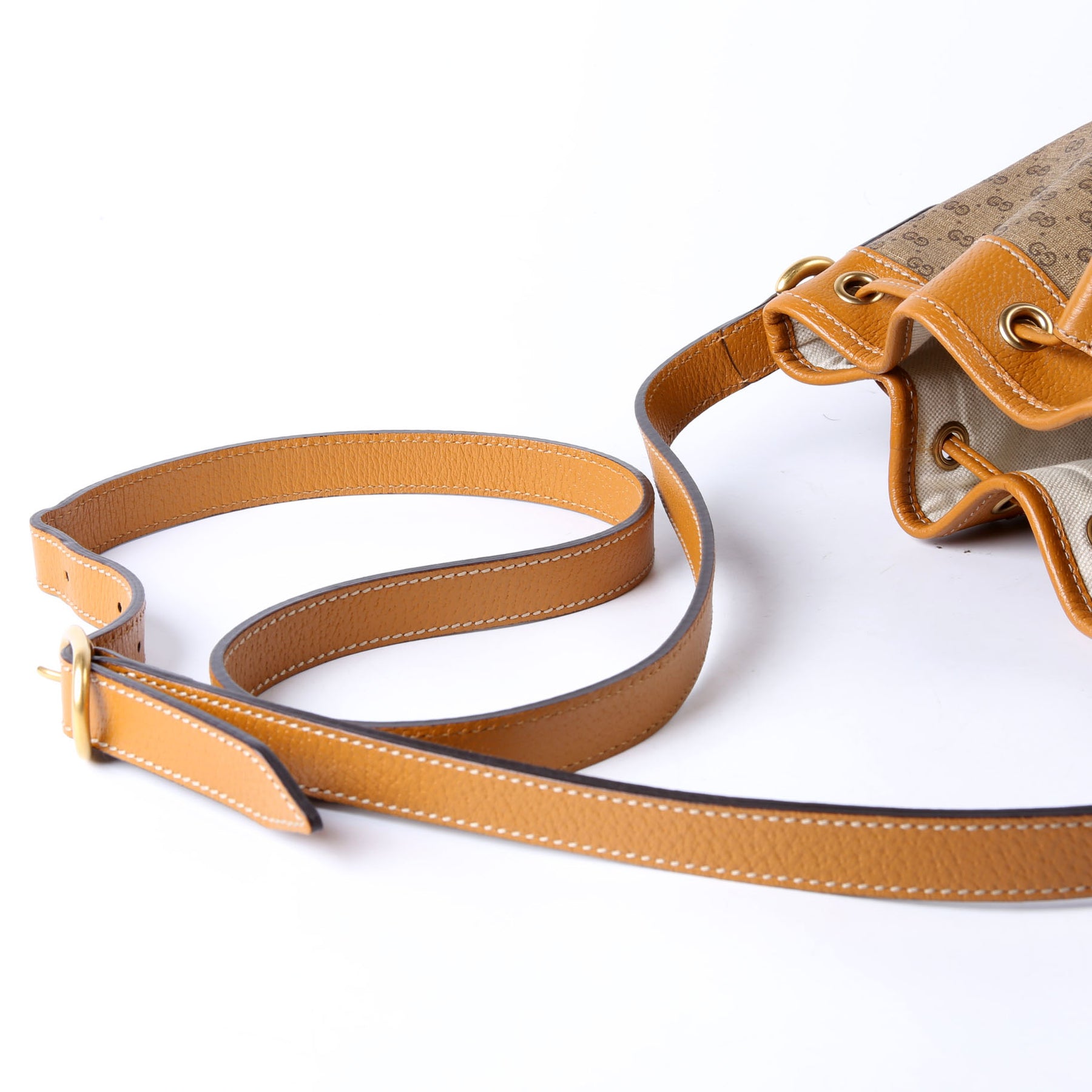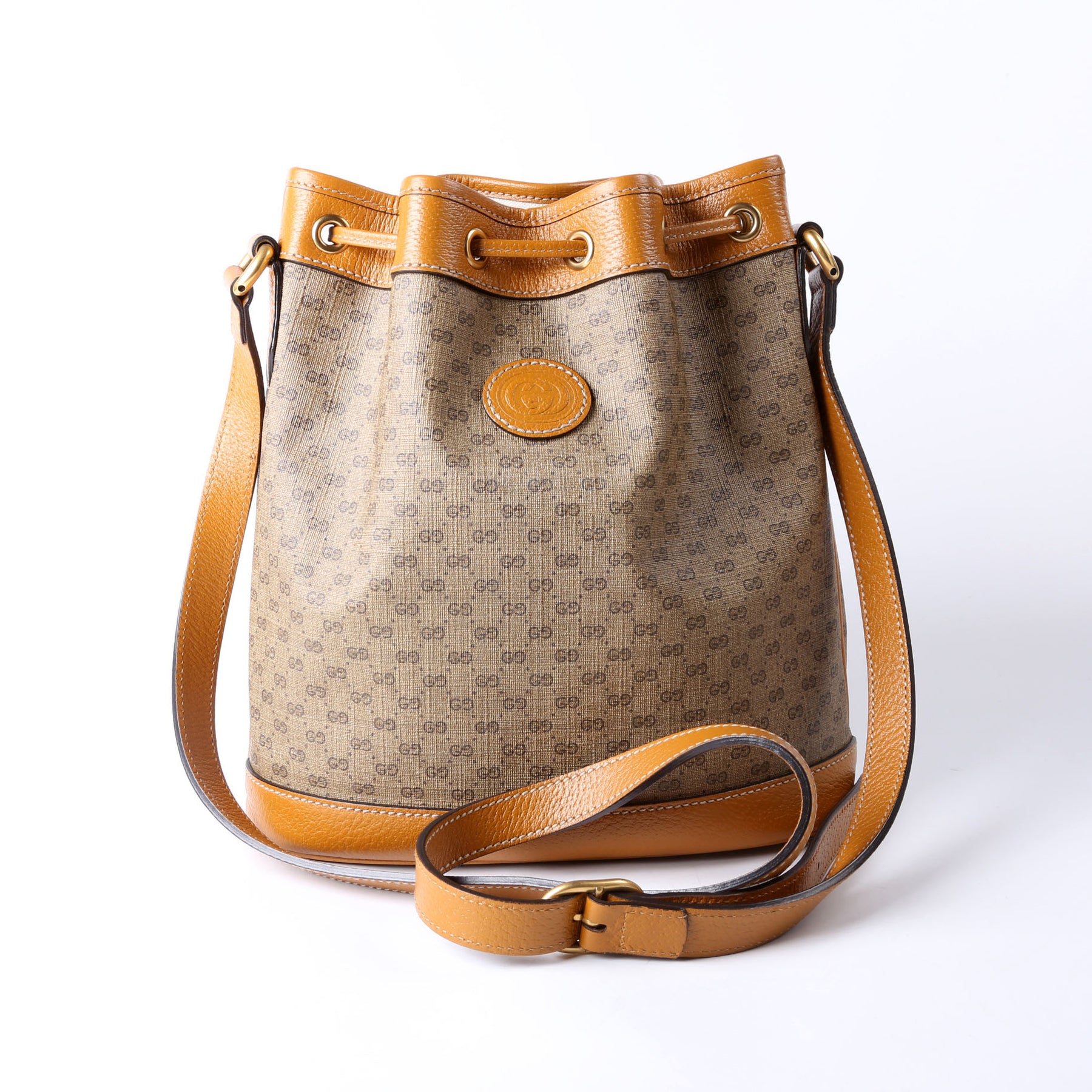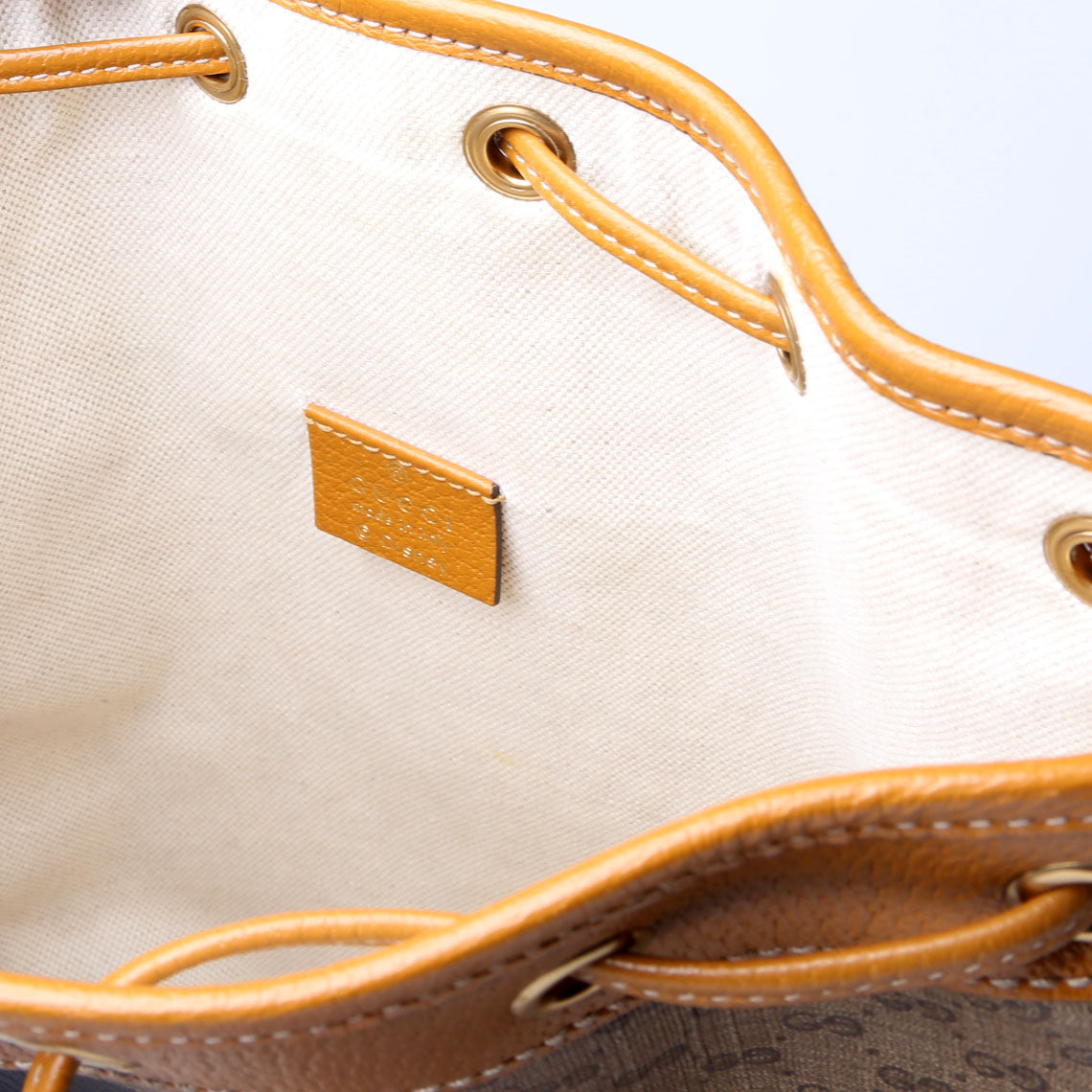 This pre-owned Gucci Disney Micro GG Bucket Bag is guaranteed 100% authentic. The exterior is in the classic Gucci GG canvas.