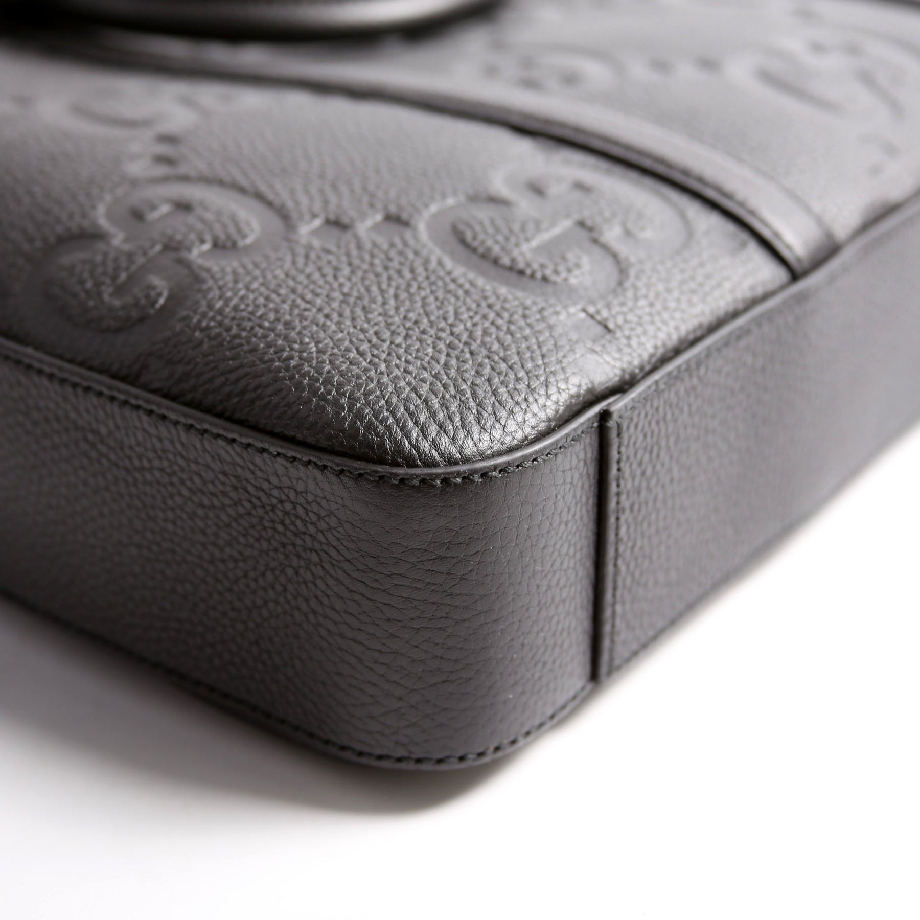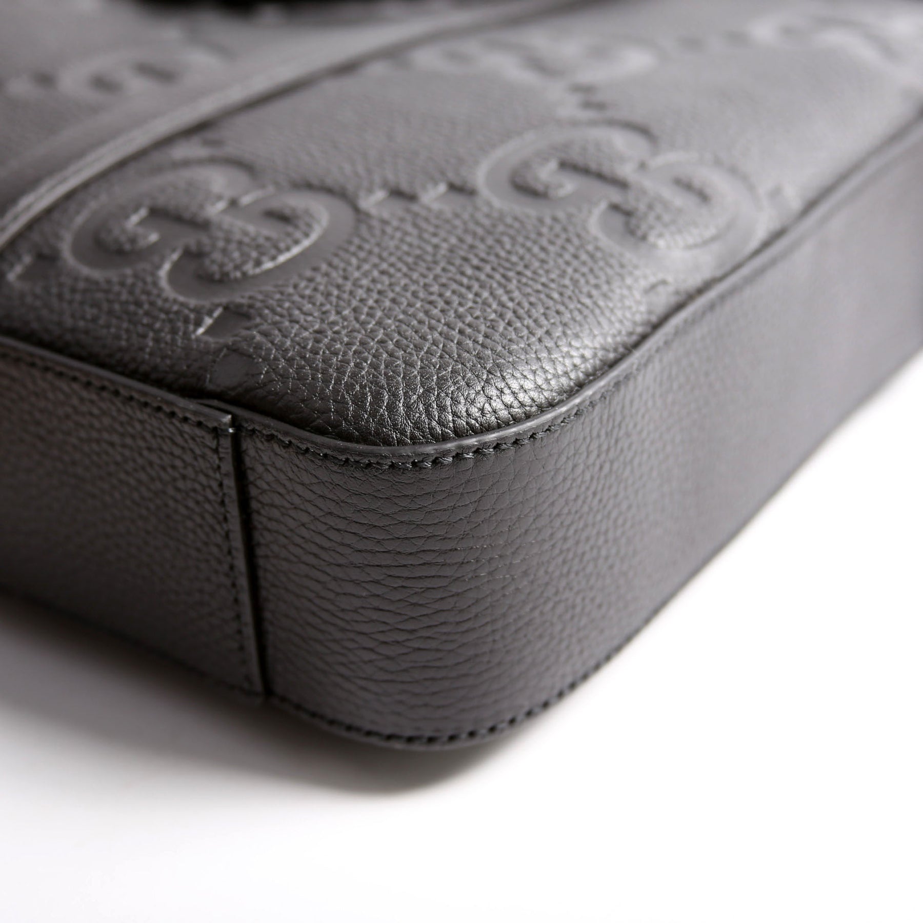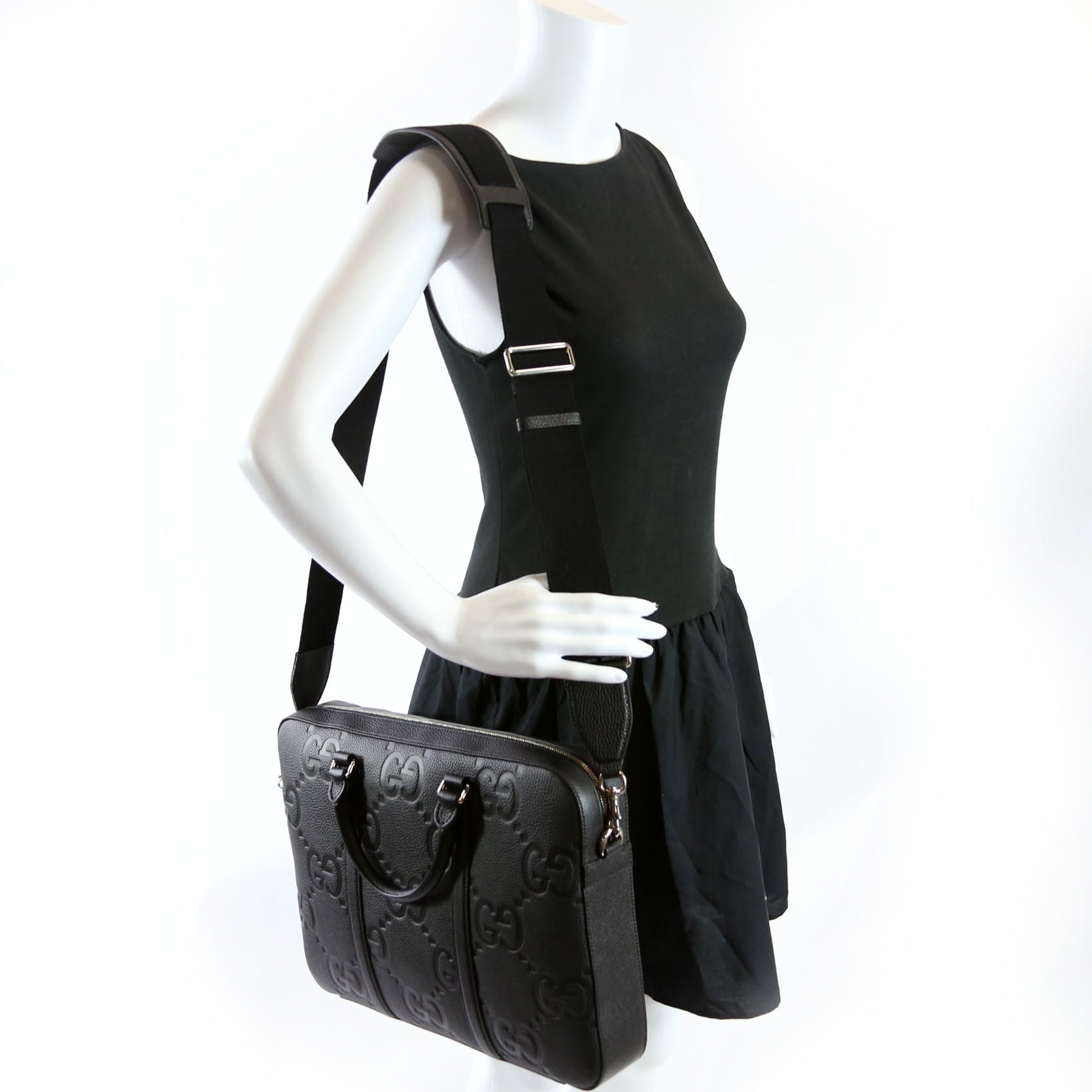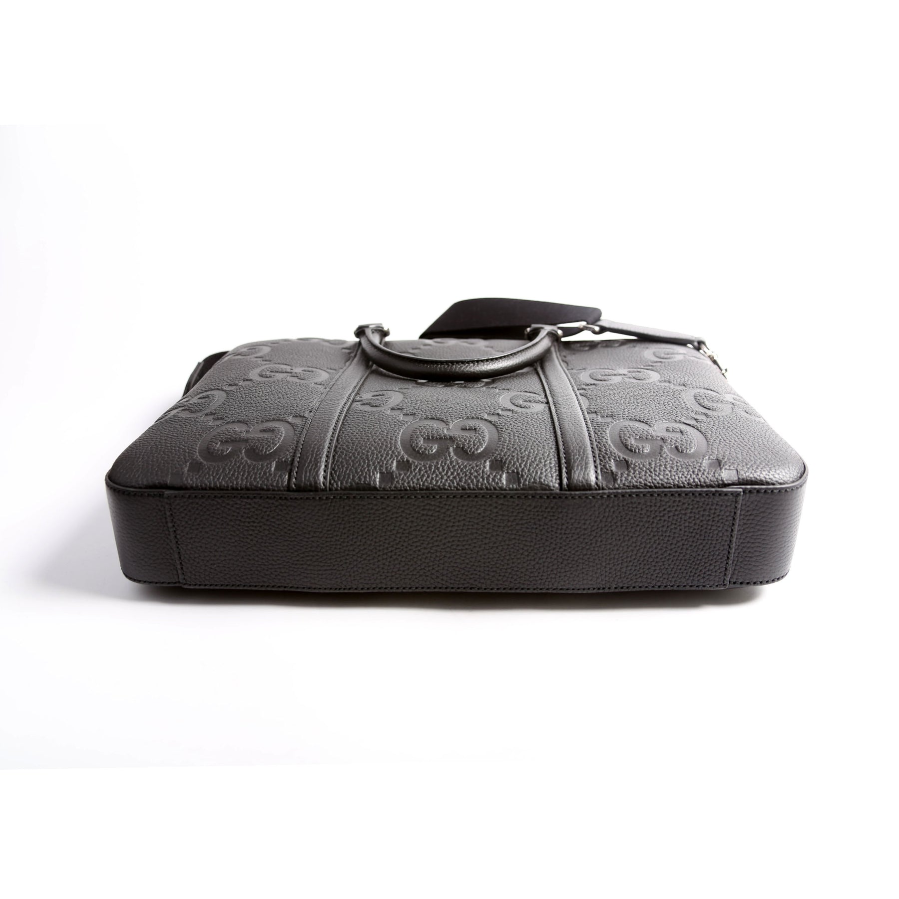 658573 Jumbo GG Leather Briefcase Black/Silver