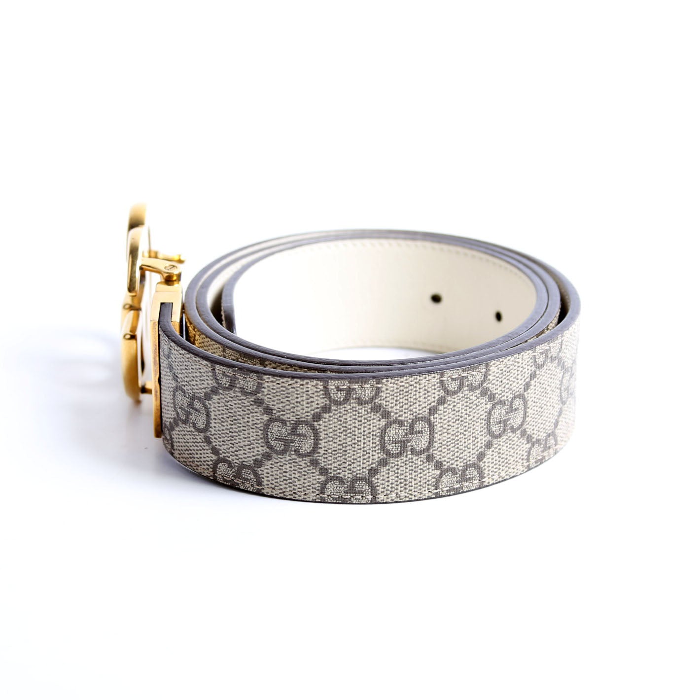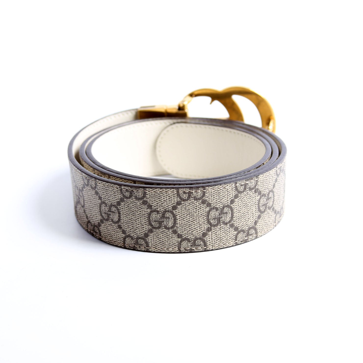 659416 GG Marmont Reversible Supreme/Leather Belt Size 95/38 Beige/Ivory