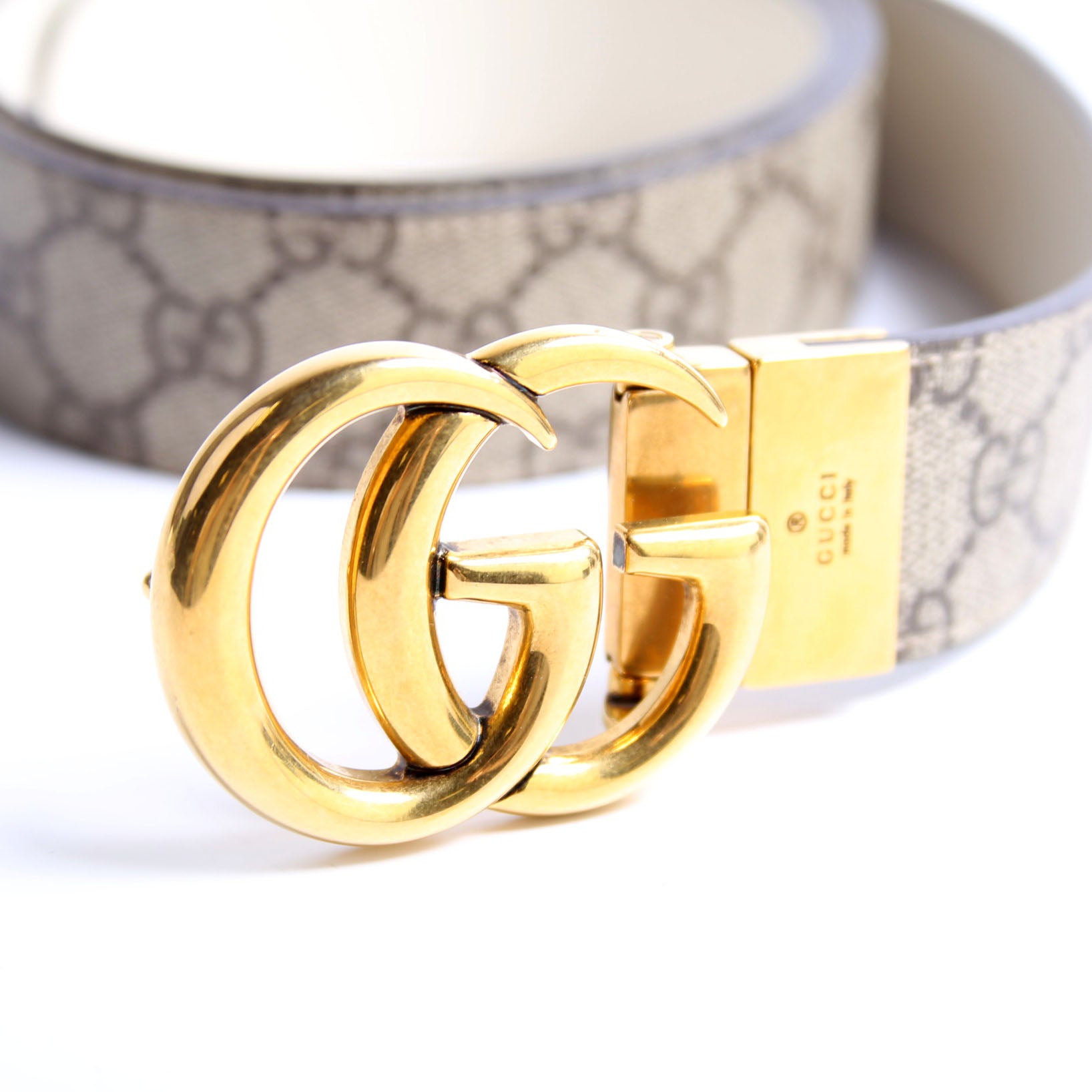 This pre-owned Gucci GG Marmont Reversible Supreme/Leather Belt is guaranteed 100% authentic. The exterior is in the classic Gucci GG Supreme coated canvas.