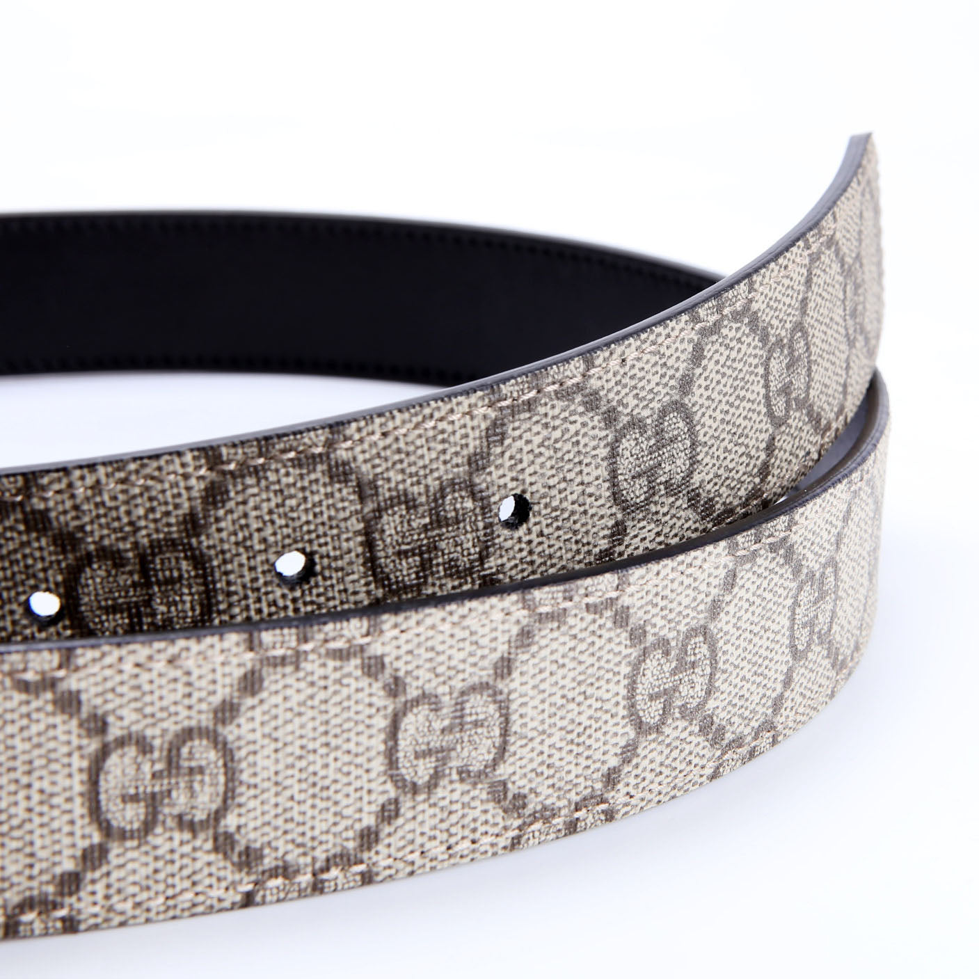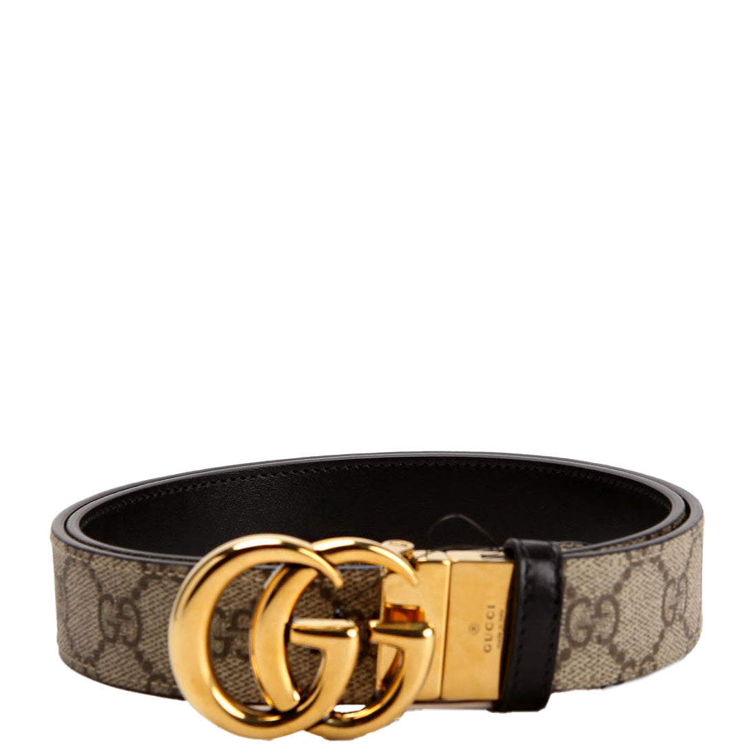 This pre-owned Gucci GG Marmont Reversible Leather Belt is guaranteed 100% authentic. The exterior is in the classic Gucci GG Supreme coated canvas.