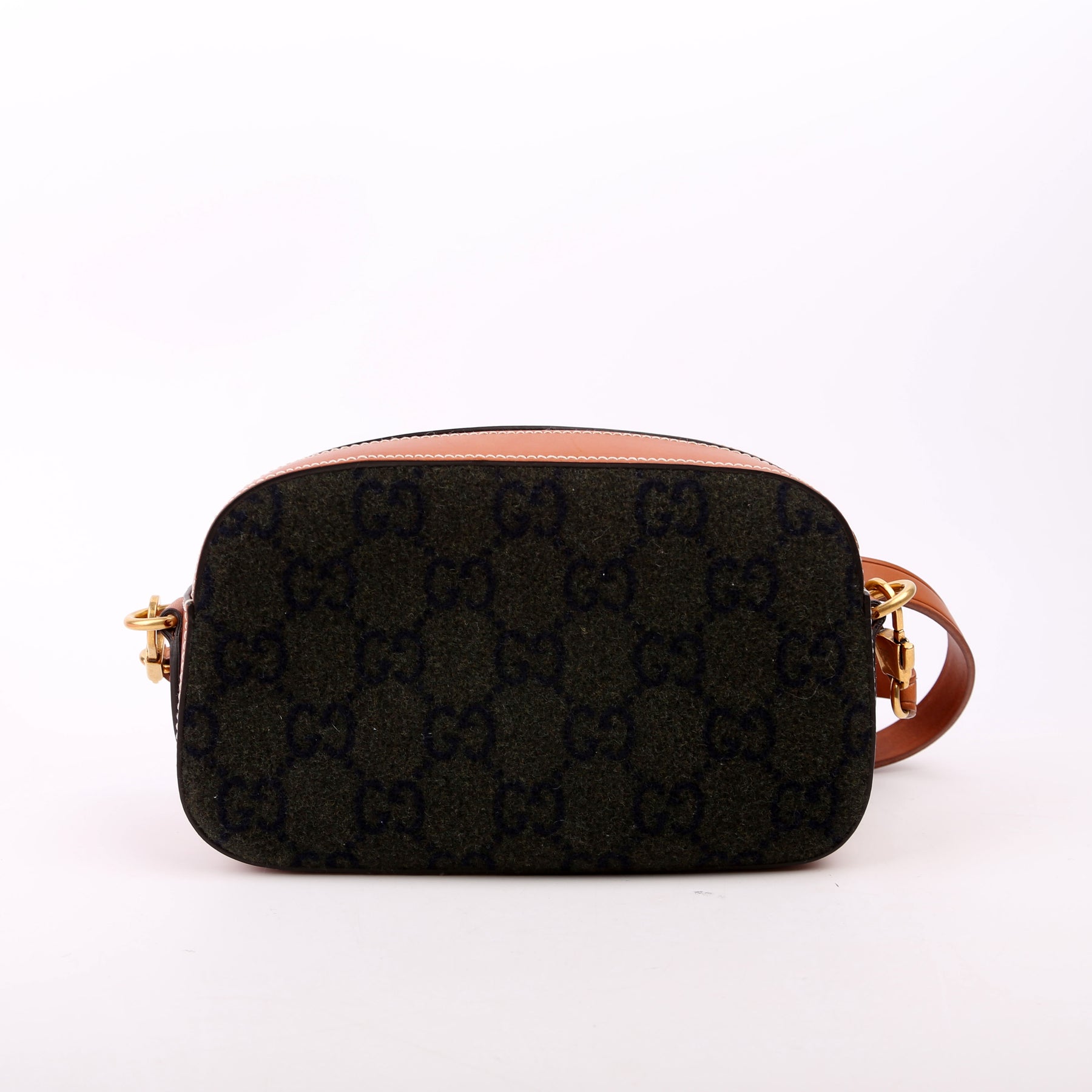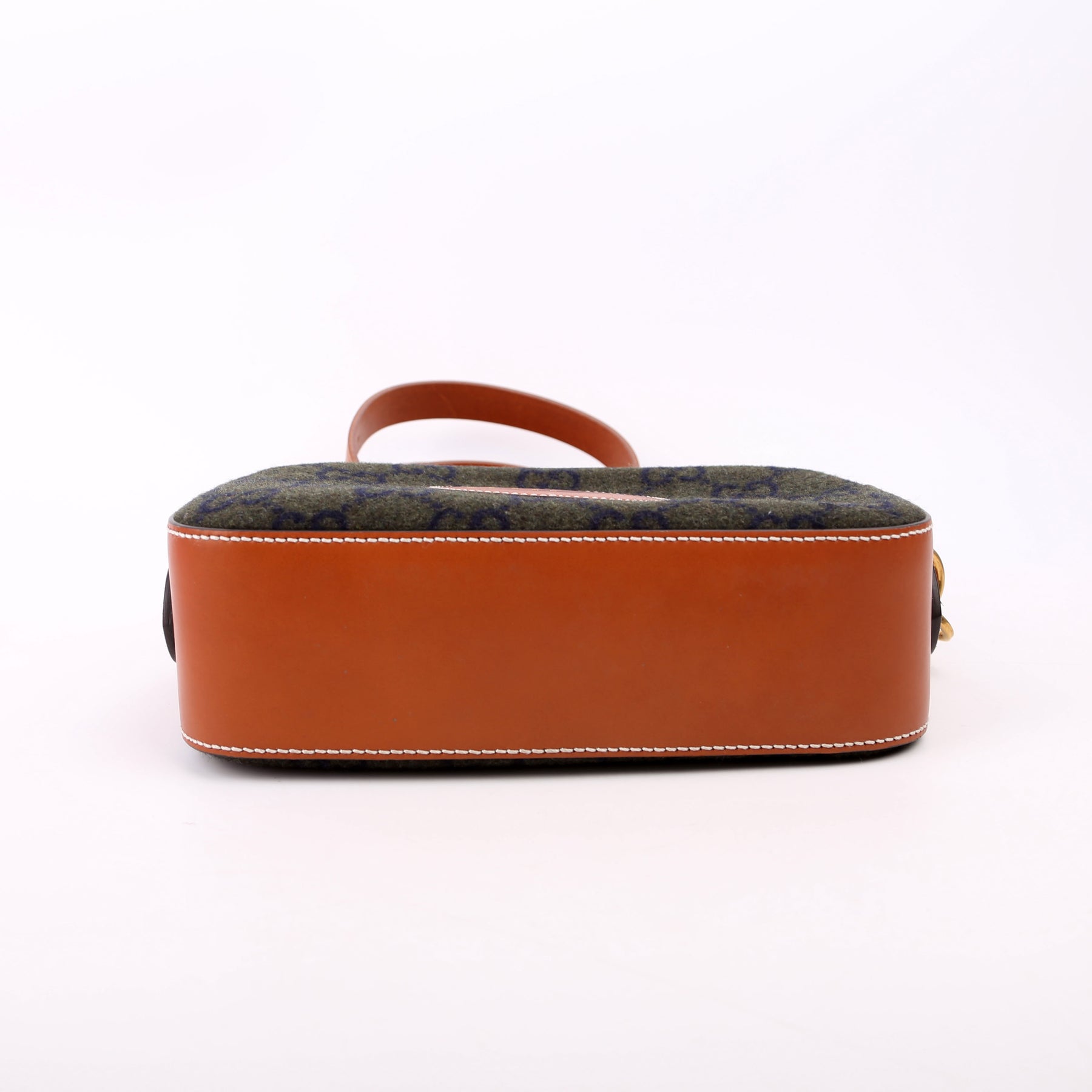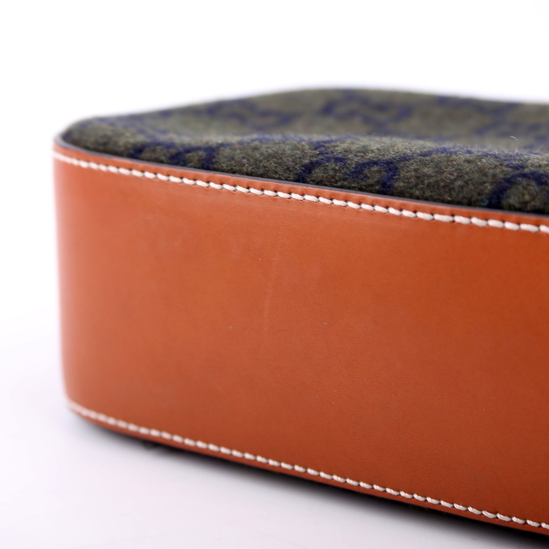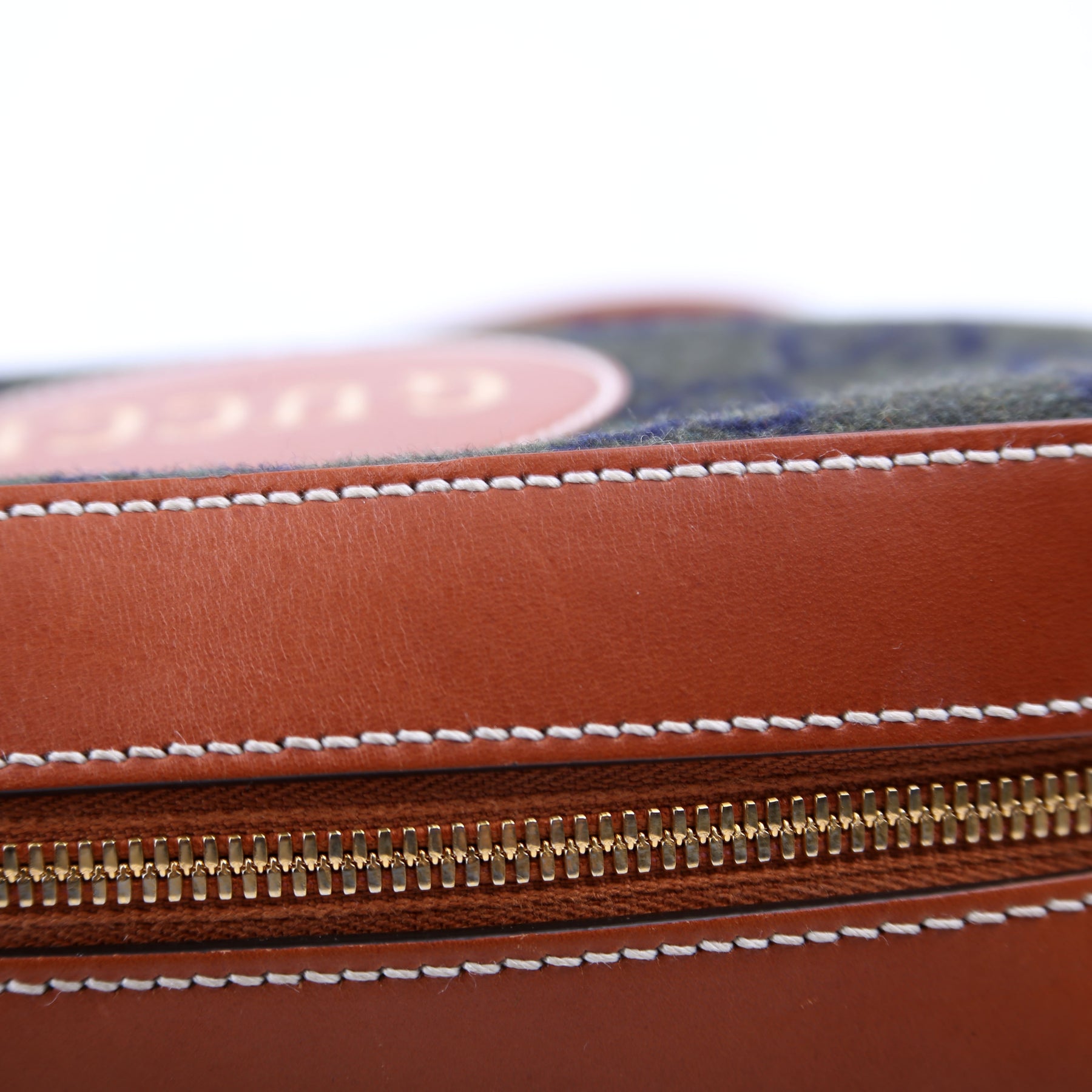 This pre-owned Gucci GG Wool/Calfskin Script Patch Shoulder is guaranteed 100% authentic.
