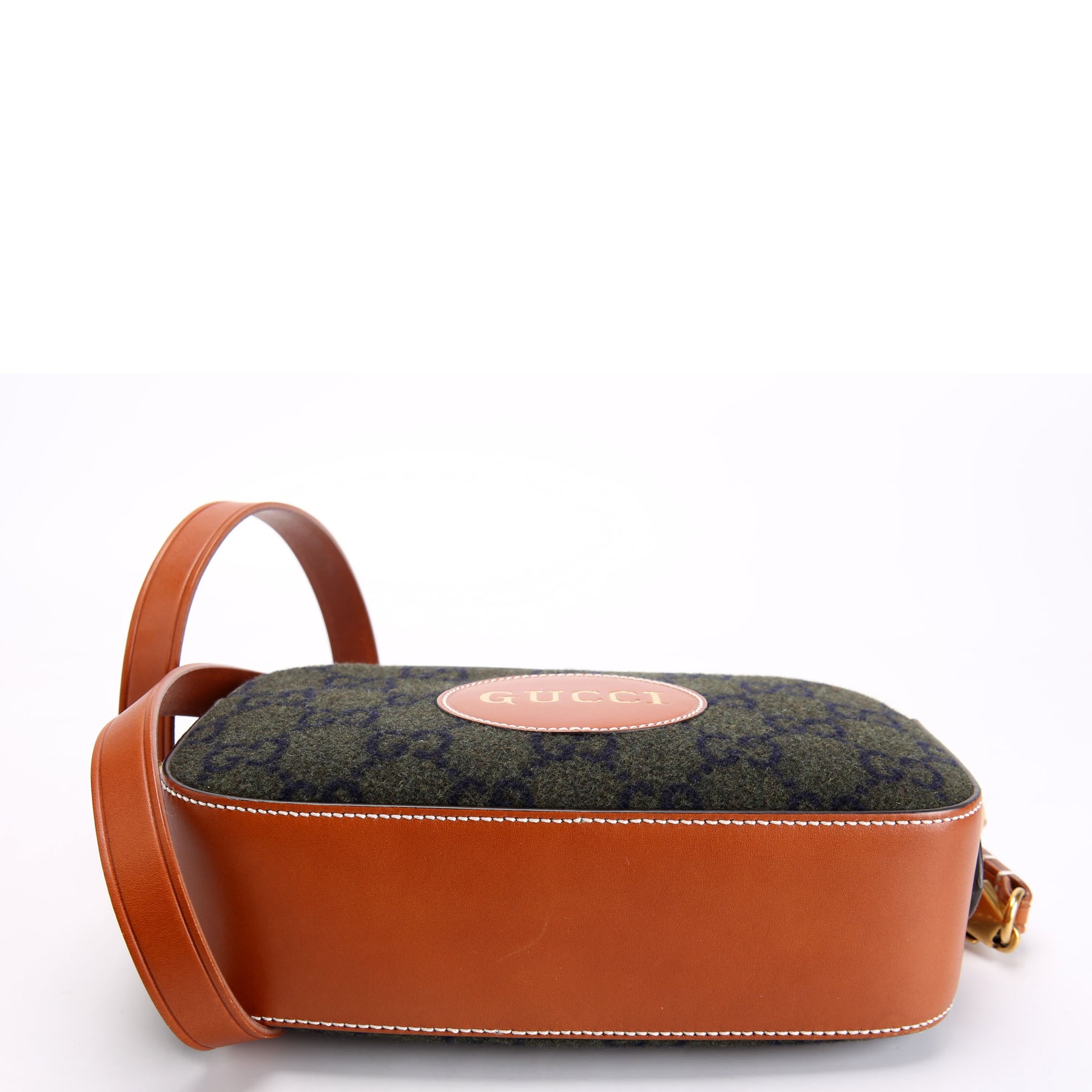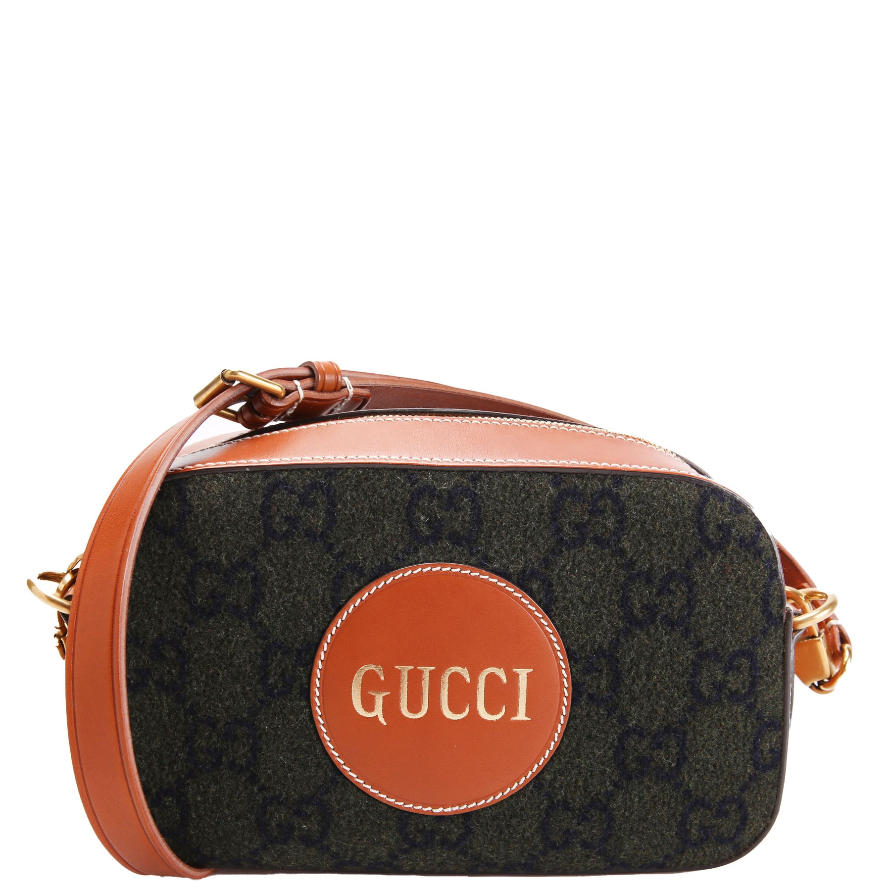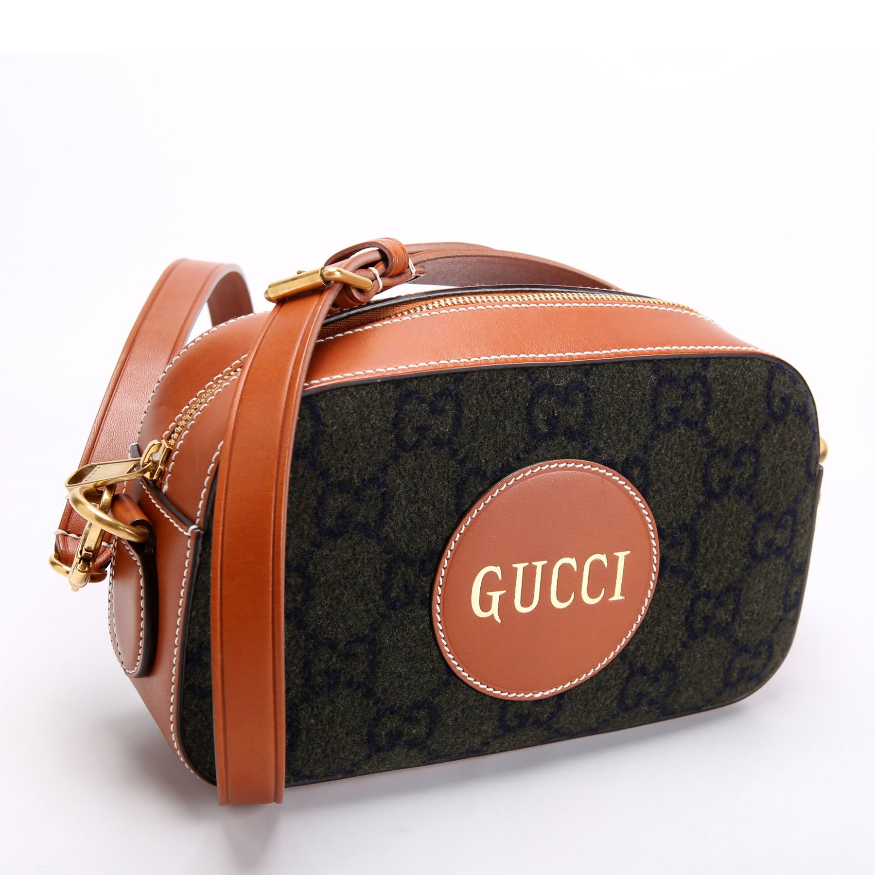 671625 GG Wool/Calfskin Script Patch Shoulder Green/Brown