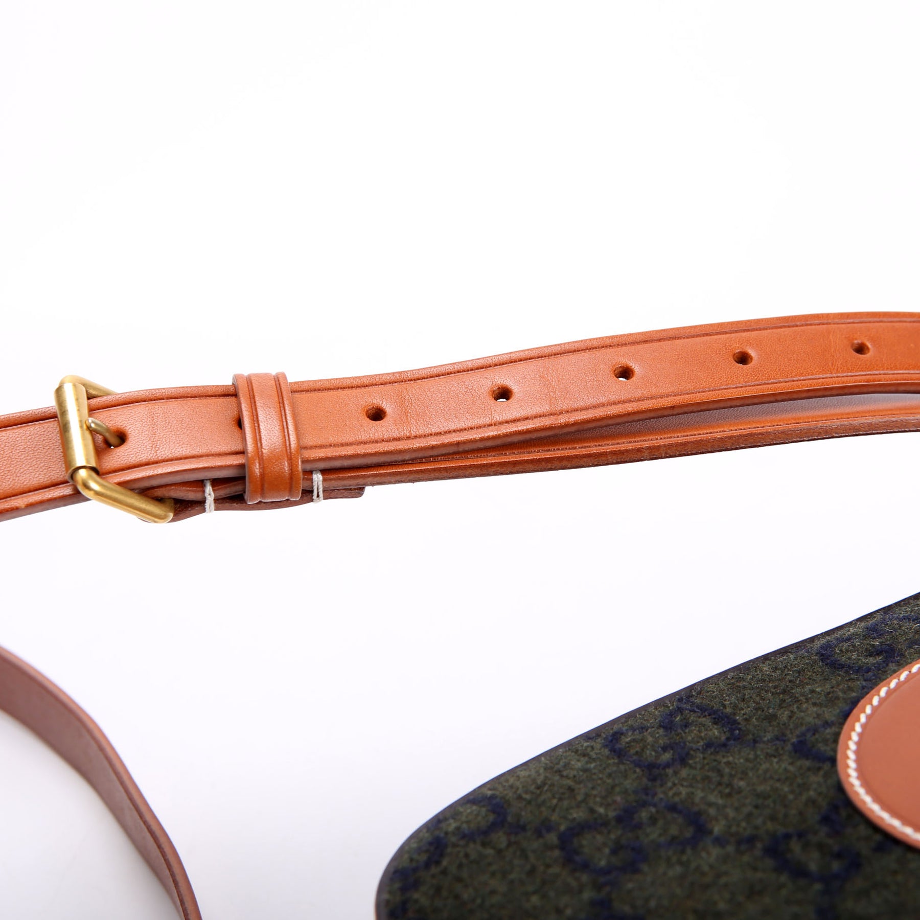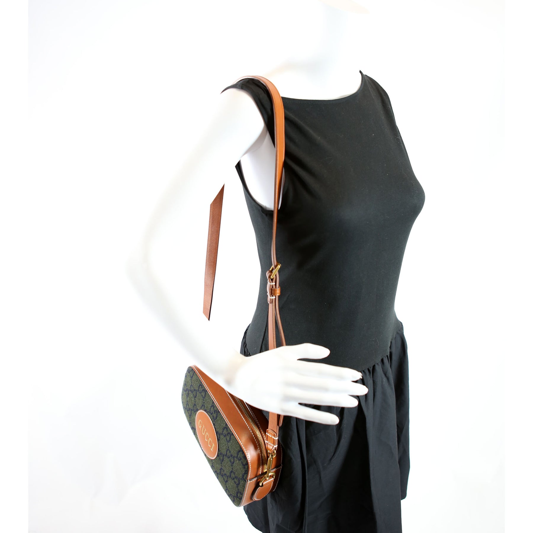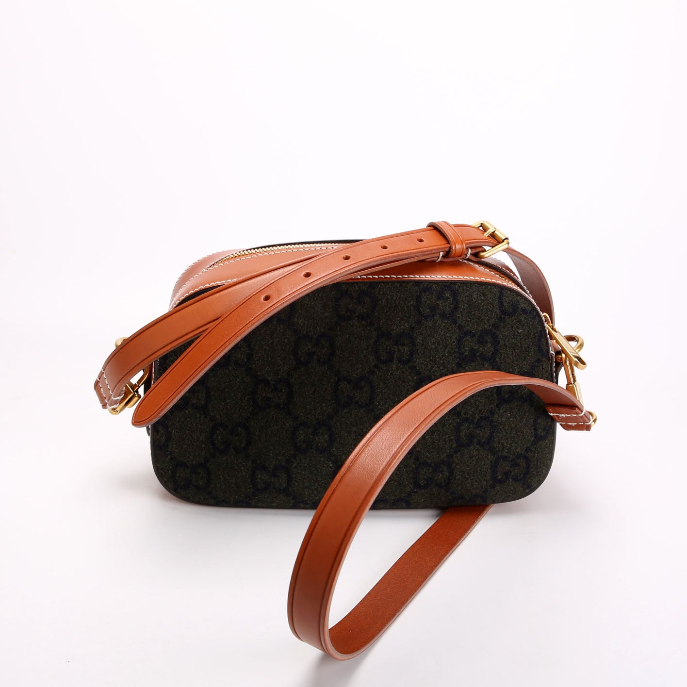 671625 GG Wool/Calfskin Script Patch Shoulder Green/Brown