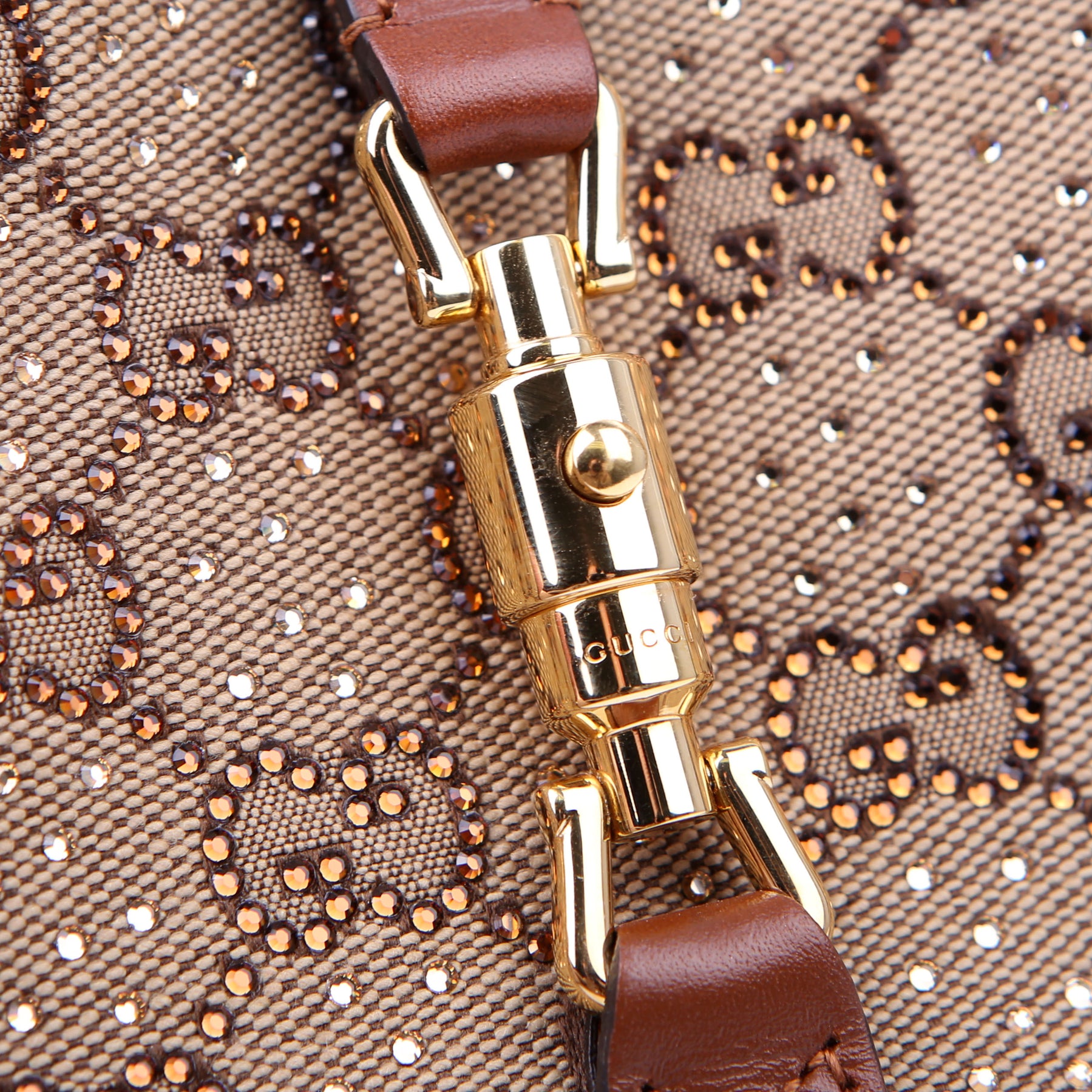 This pre-owned Gucci Jackie 1961 Crystal GG Canvas Mini Shoulder Bag is guaranteed 100% authentic.
