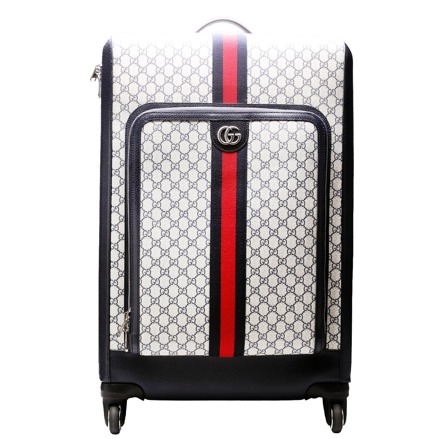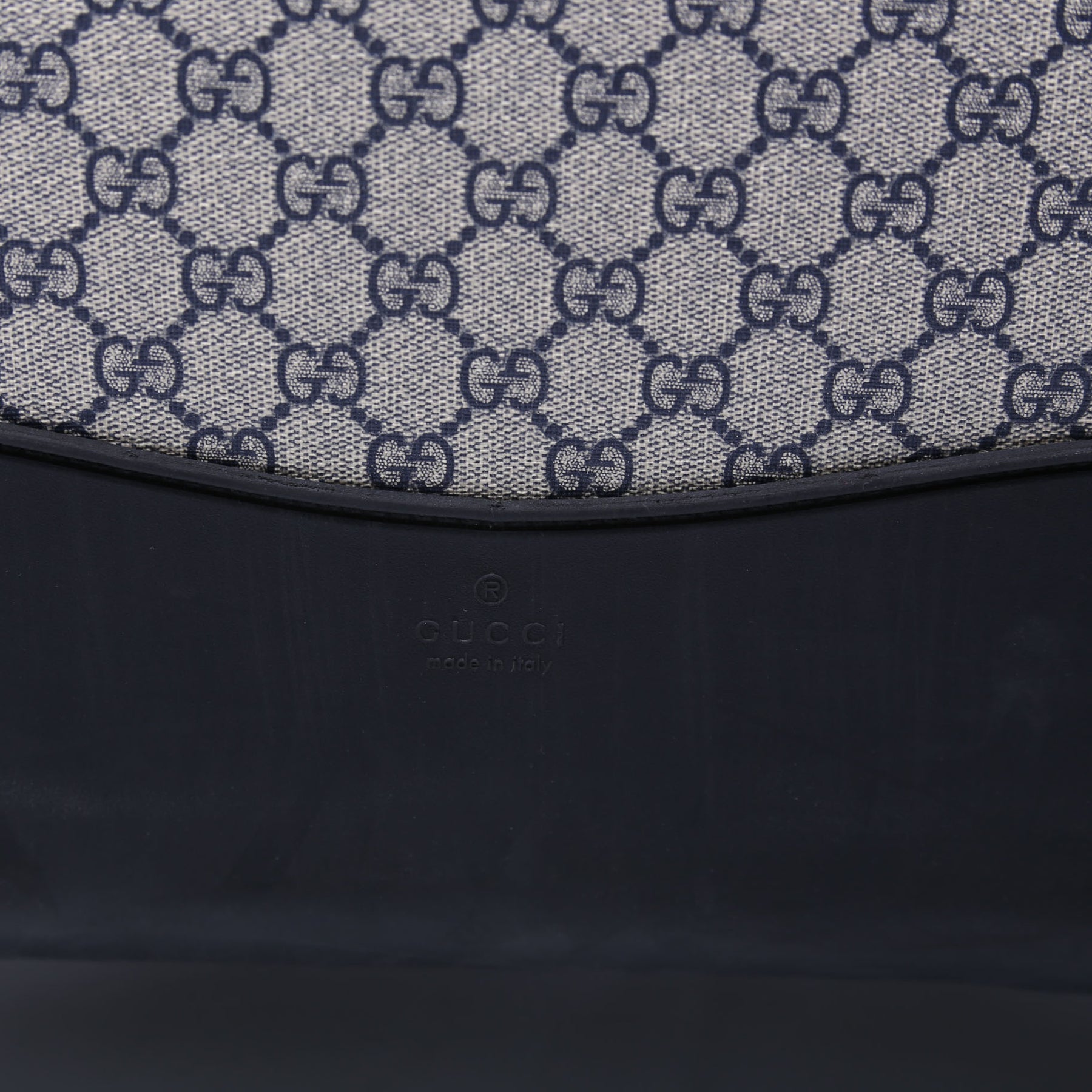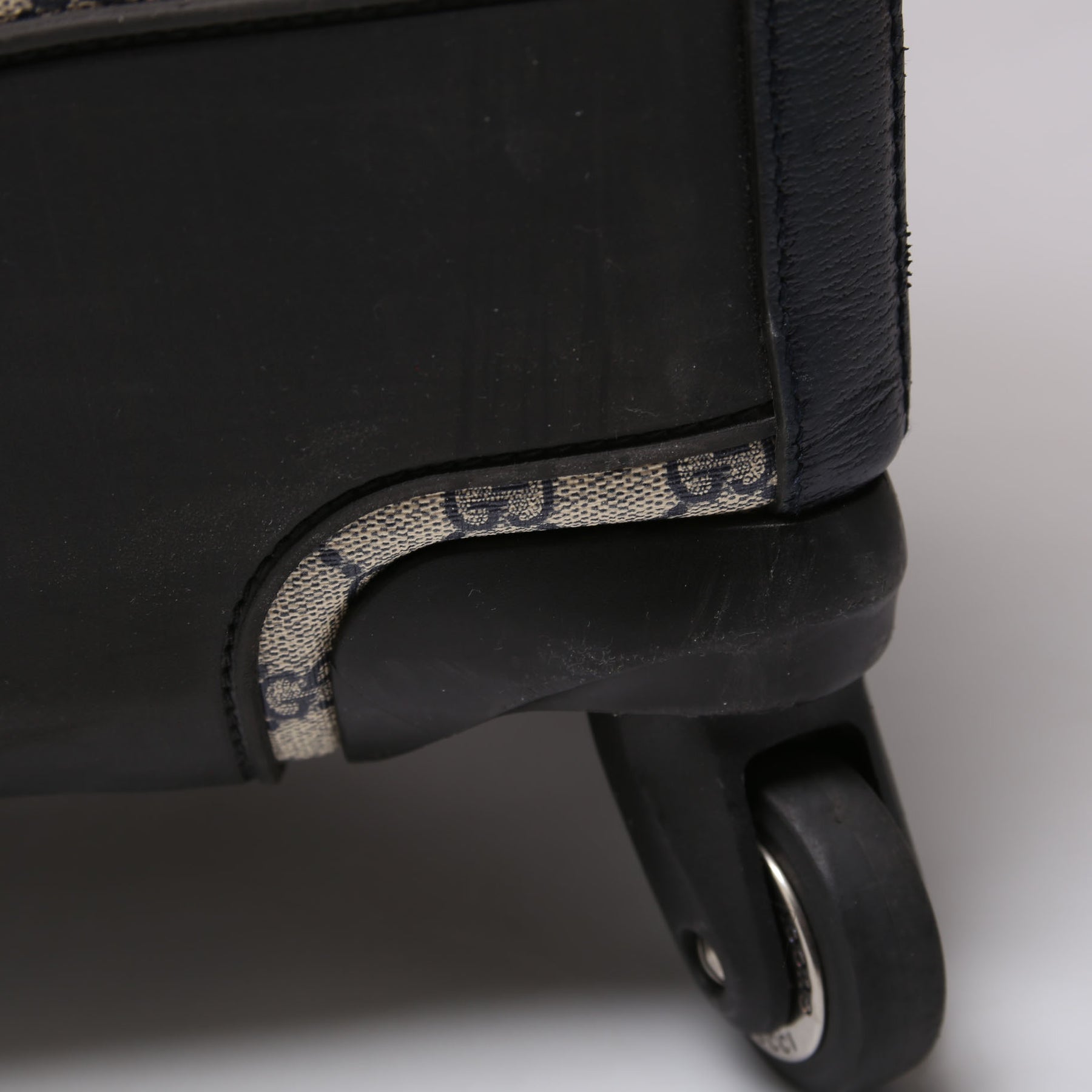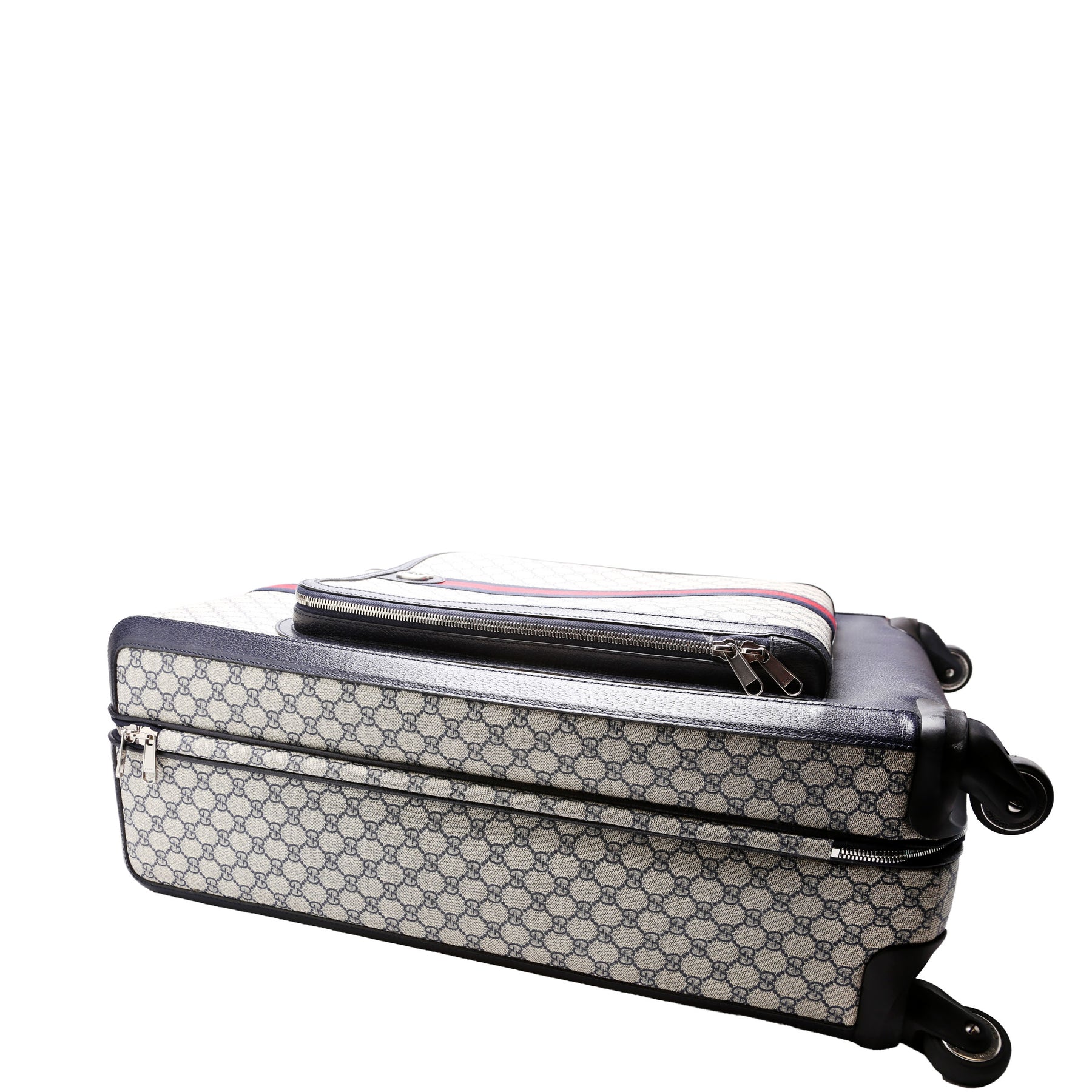 This pre-owned Gucci Supreme Large Savoy Trolley is guaranteed 100% authentic. The exterior is in the GG Supreme coated canvas.