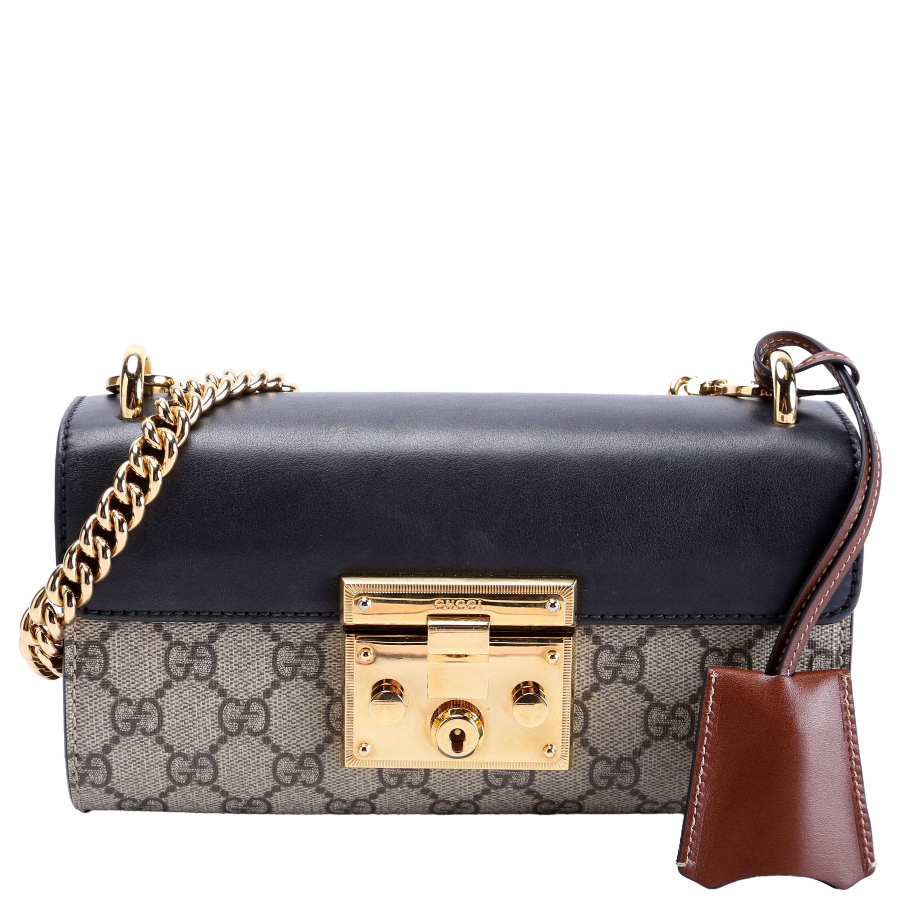 This pre-owned Gucci Supreme Padlock Mini Shoulder Bag is guaranteed 100% authentic.