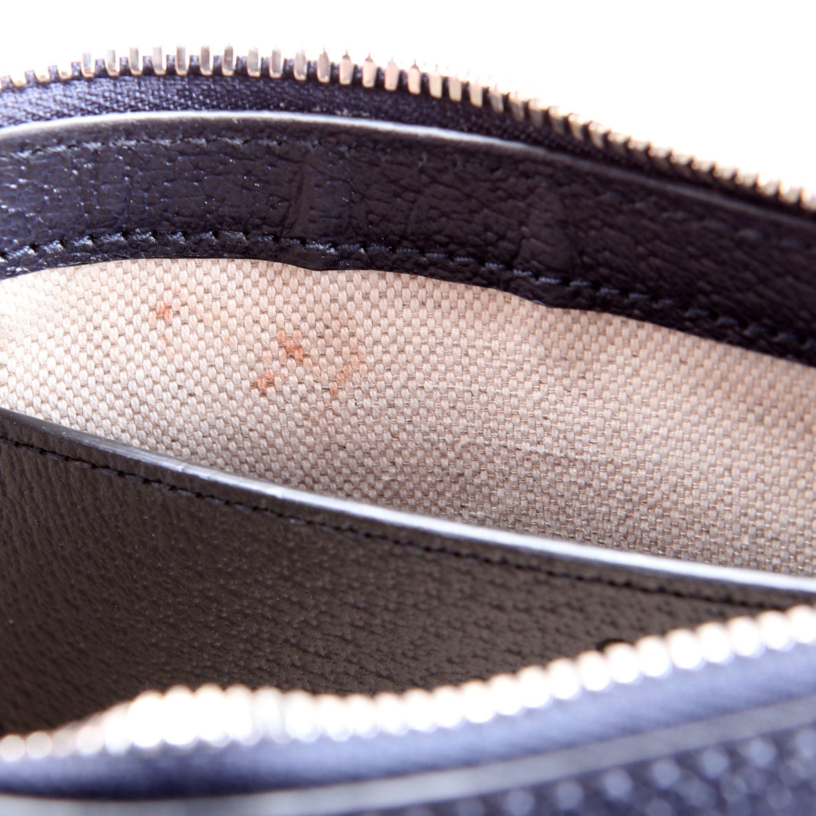 Interior: The interior shows minor stains throughout. The interior features one open pocket.