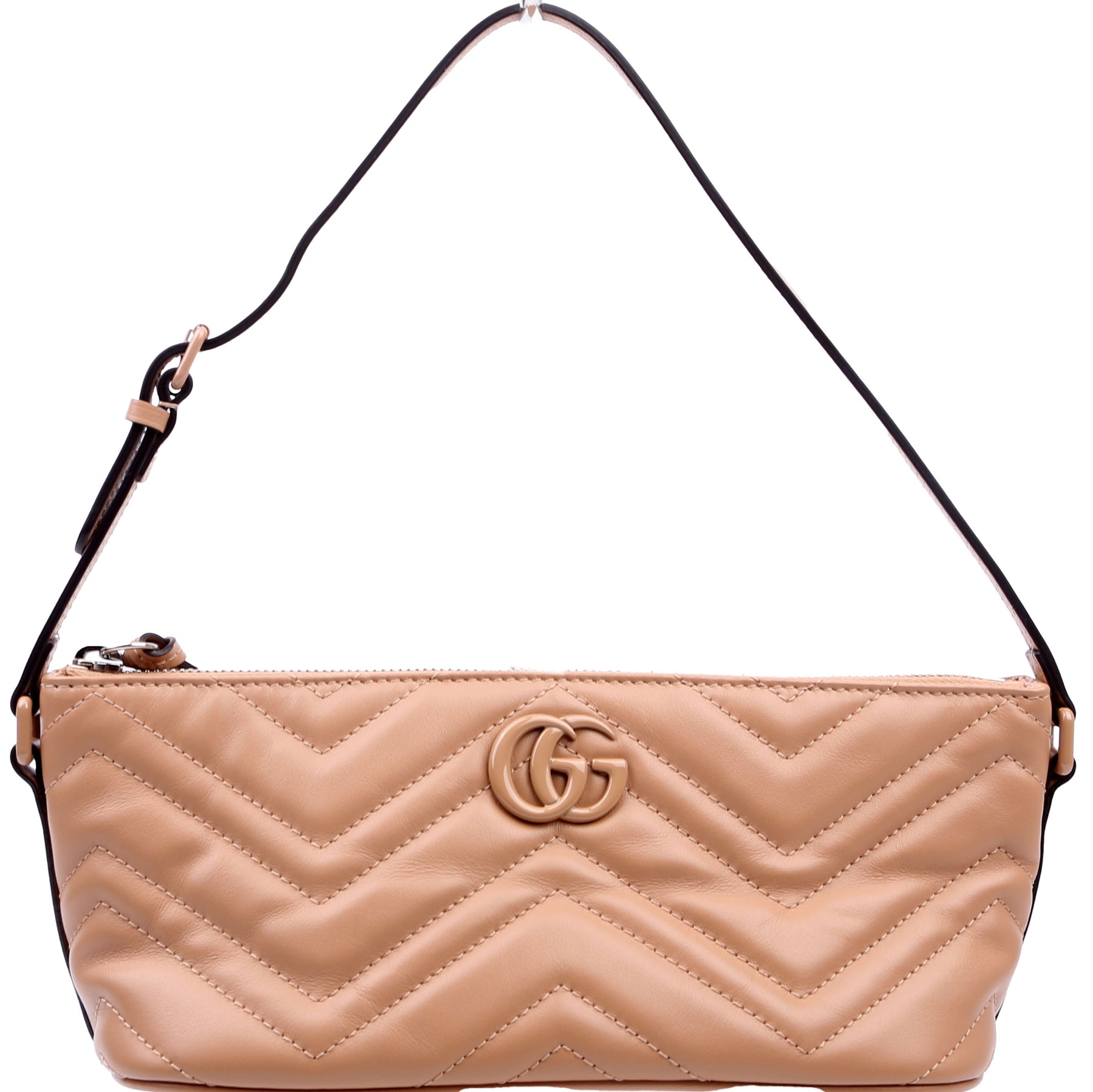 This pre-owned Marmont Sling Mini Shoulder Bag guaranteed 100% authentic. The exterior is in the classic Gucci Marmont leather.