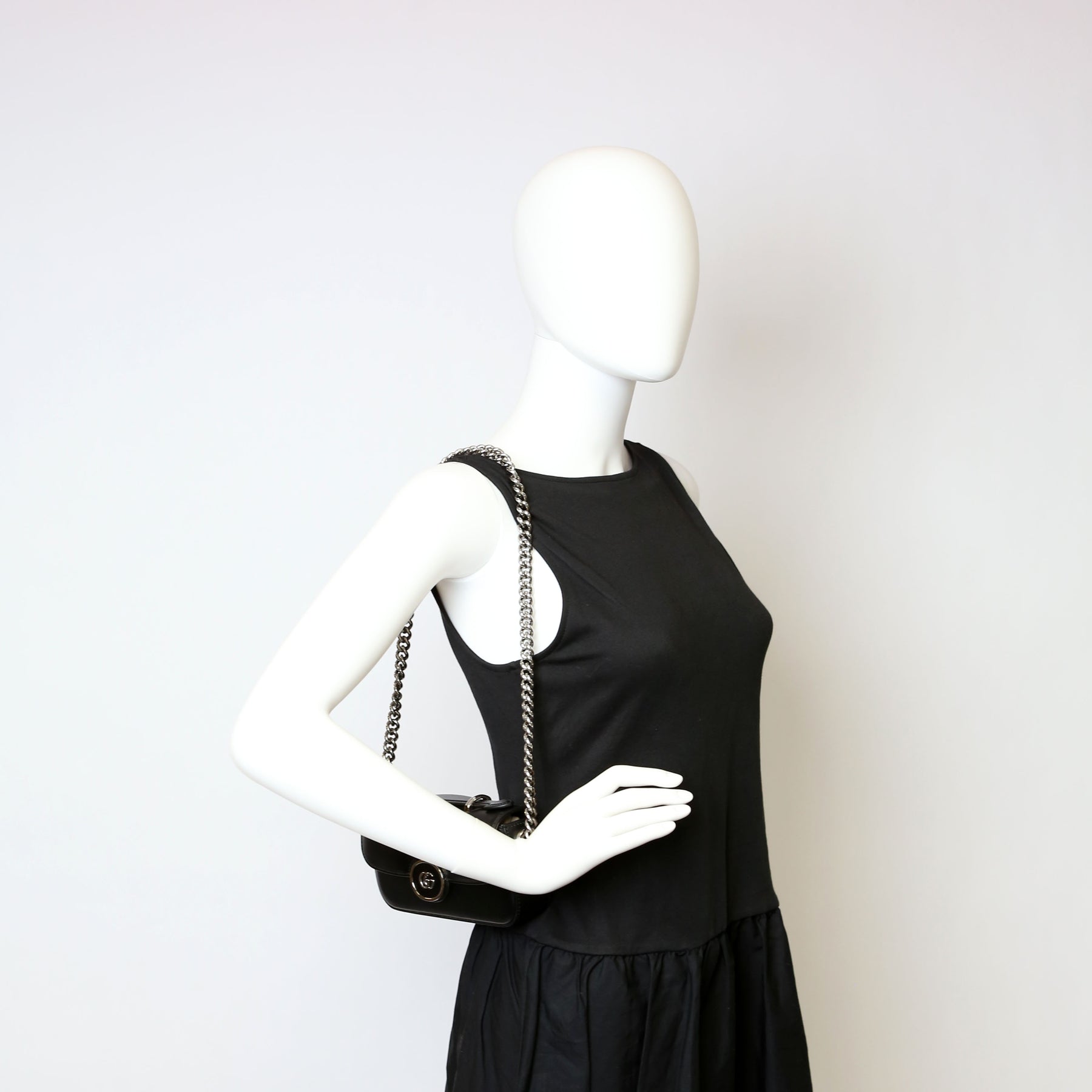 760194 Petite GG Mini Calfskin Shoulder Bag Black