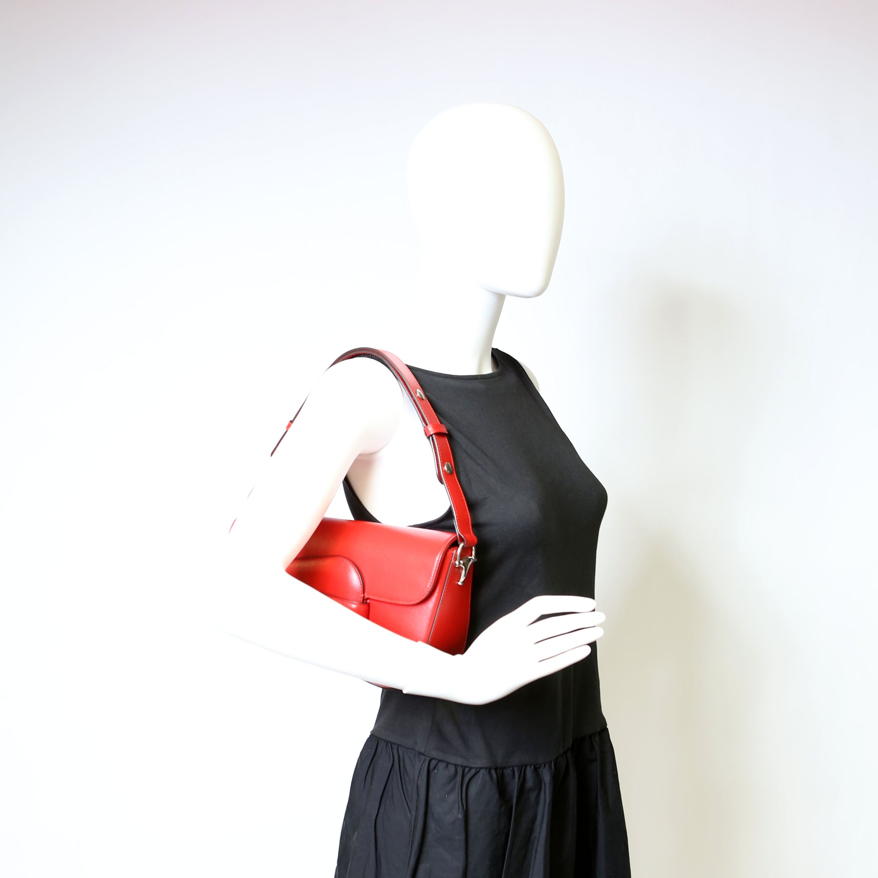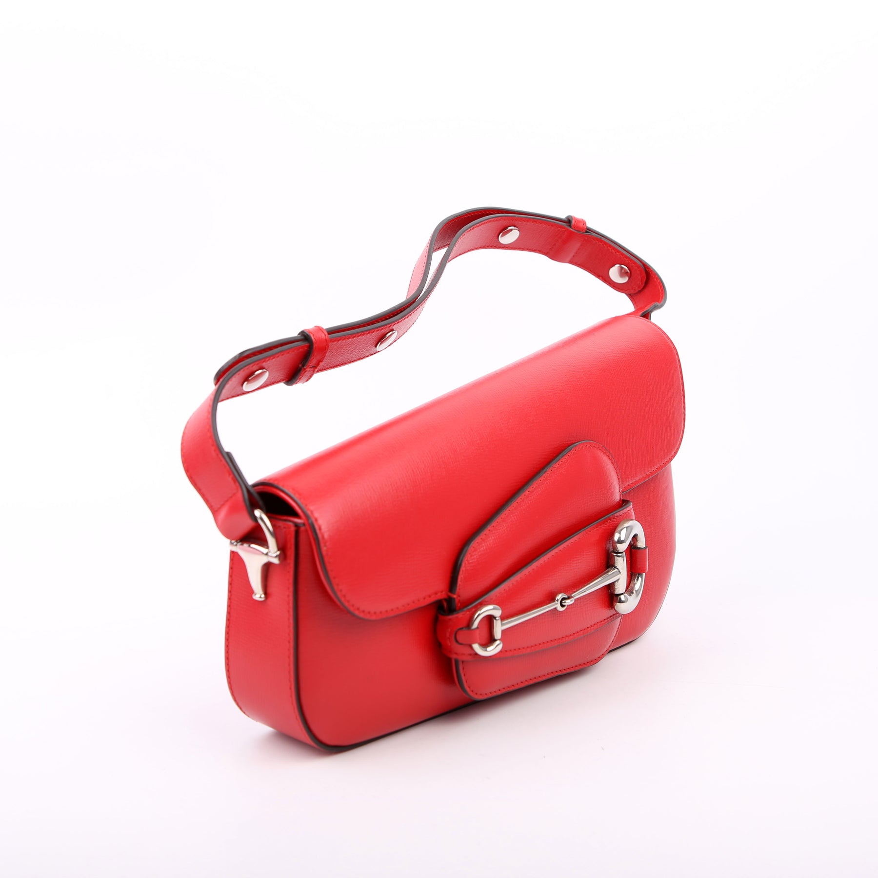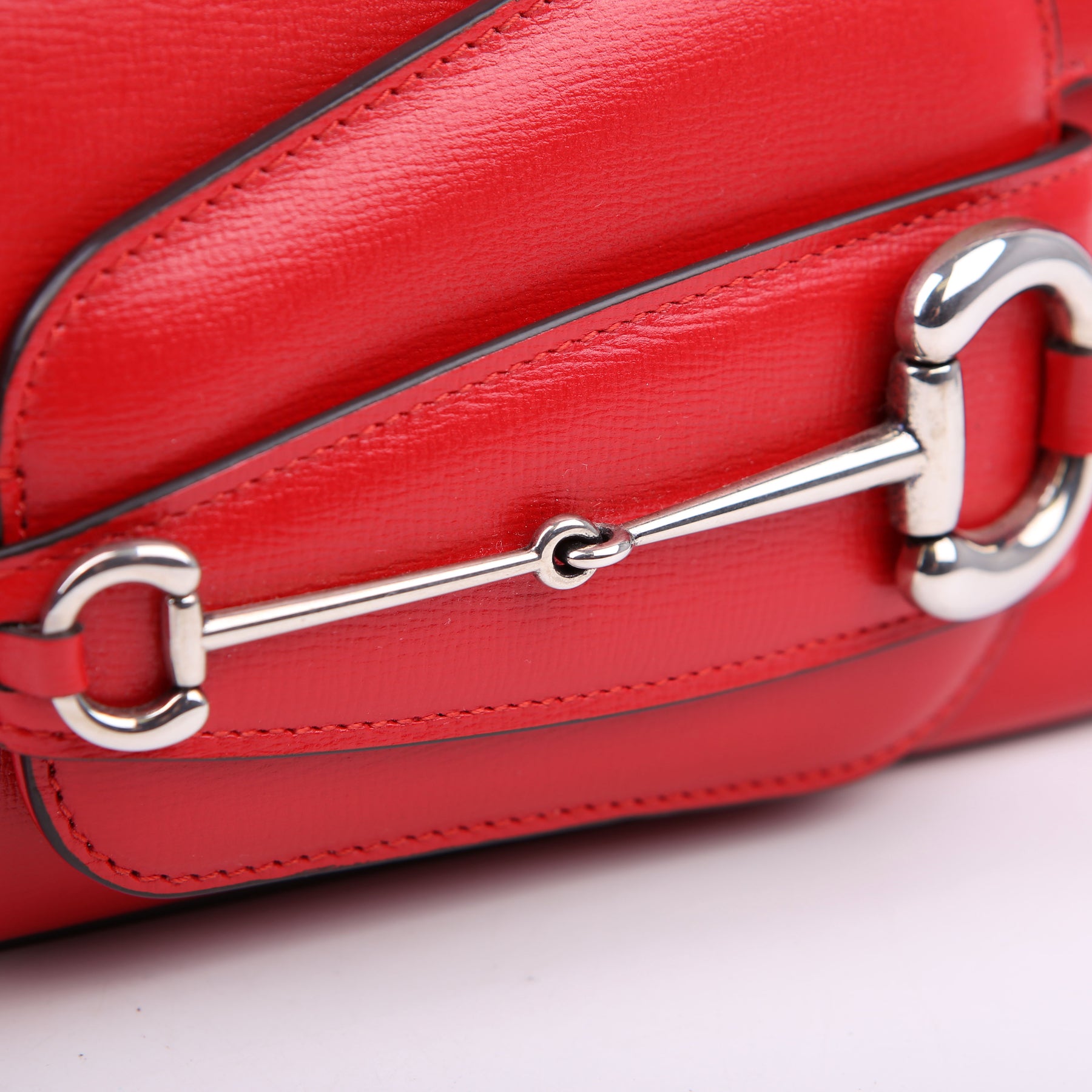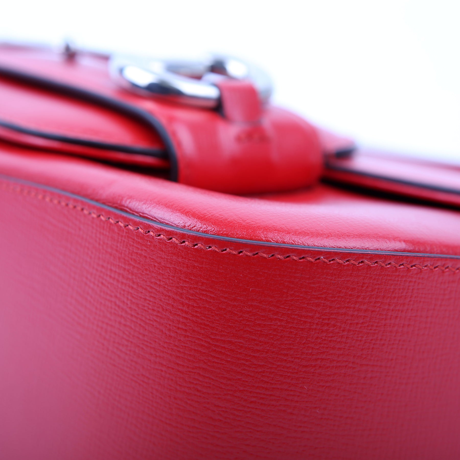 764155 Horsebit 1955 GG Leather Asymmetric Shoulder Red