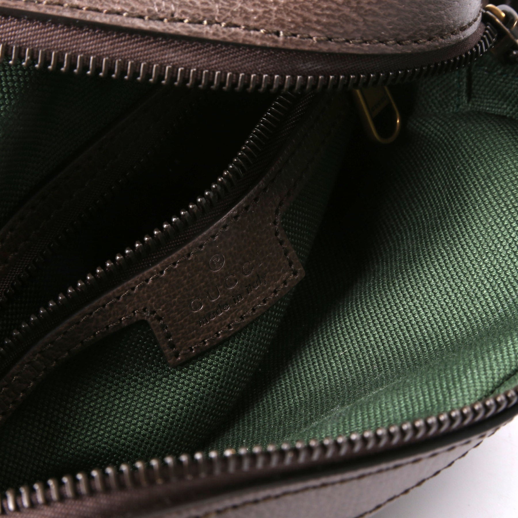 Interior: The interior shows light wear. It features one zip closure pocket.
