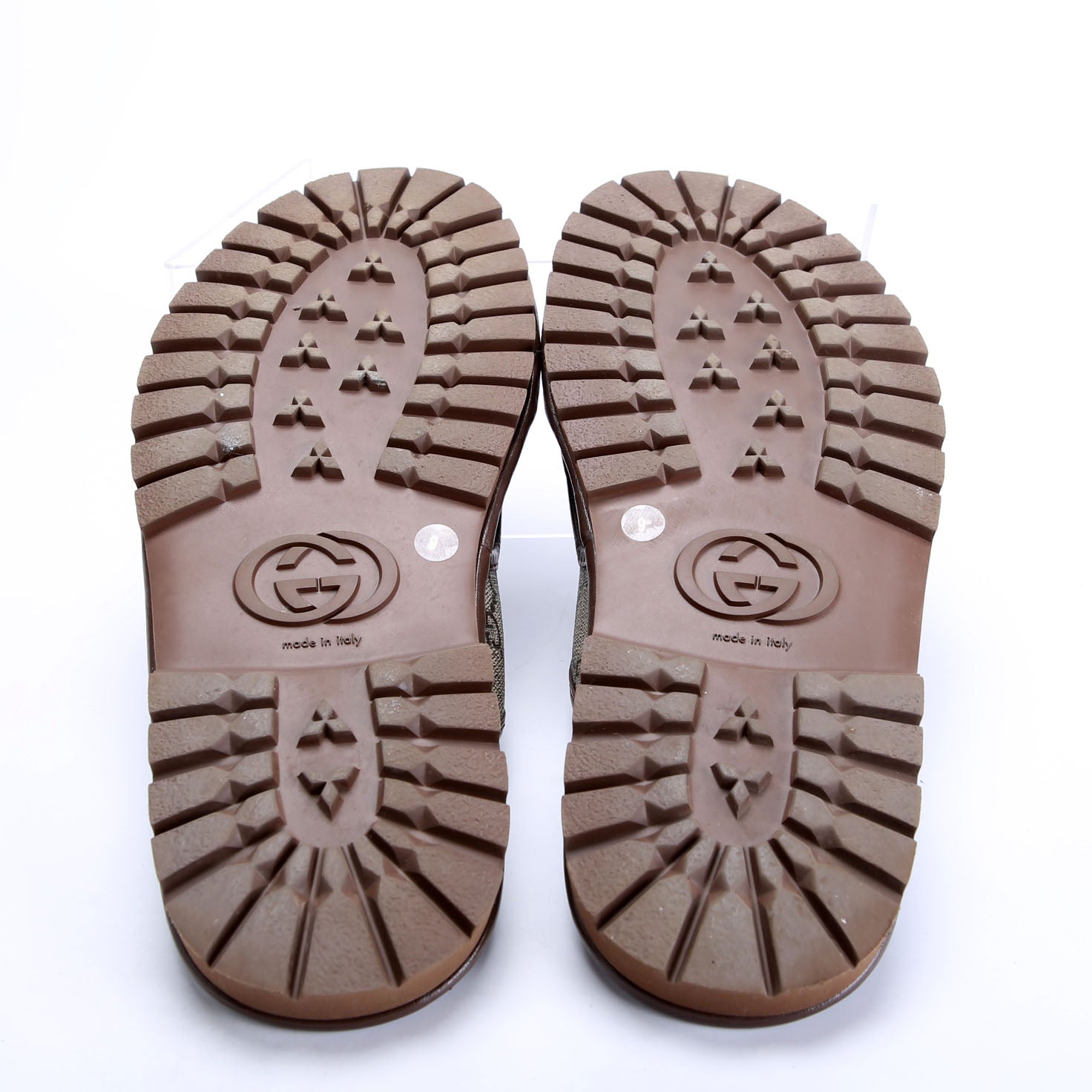 These pre-owned Gucci GG Supreme Granada Lug Sole Slides are guaranteed 100% authentic.