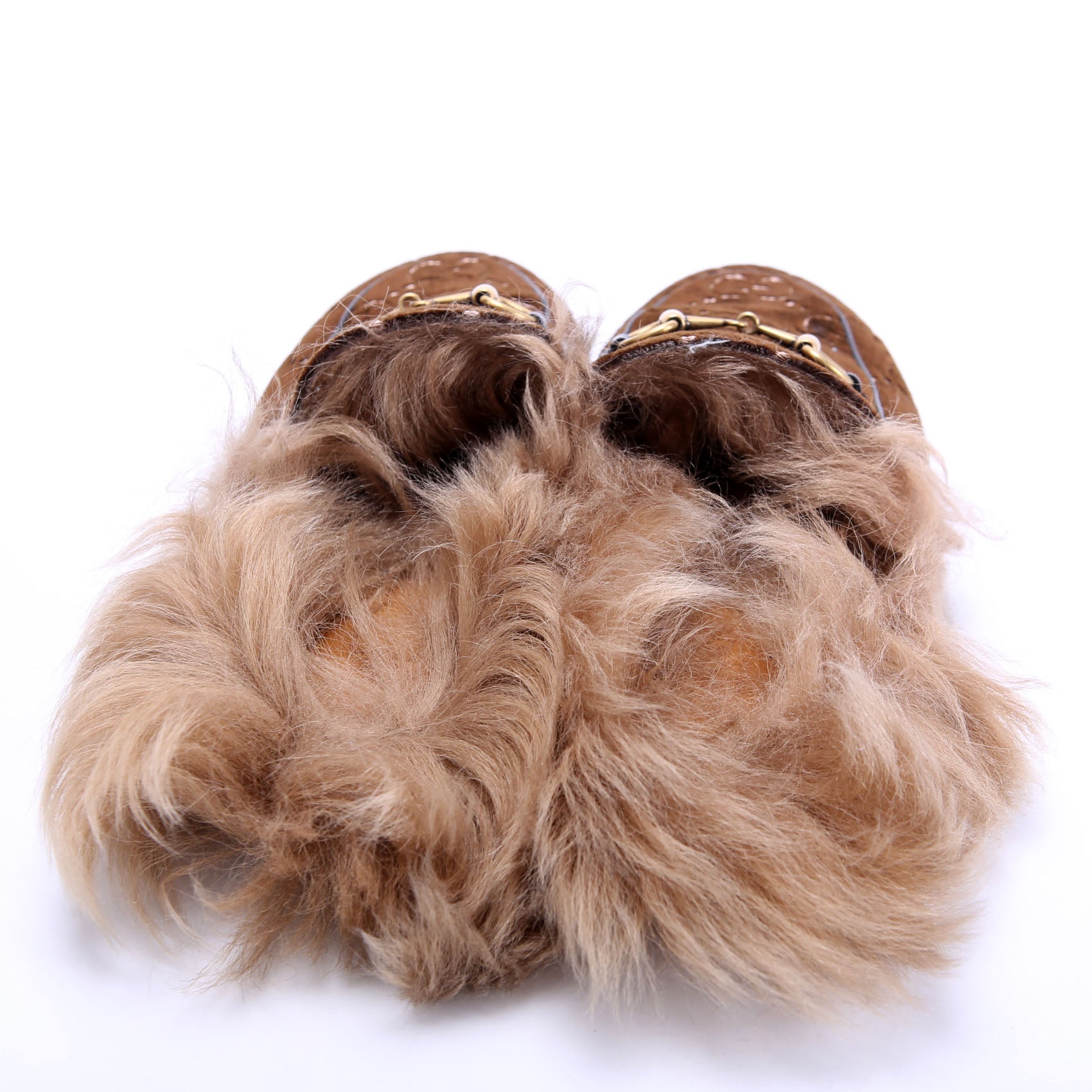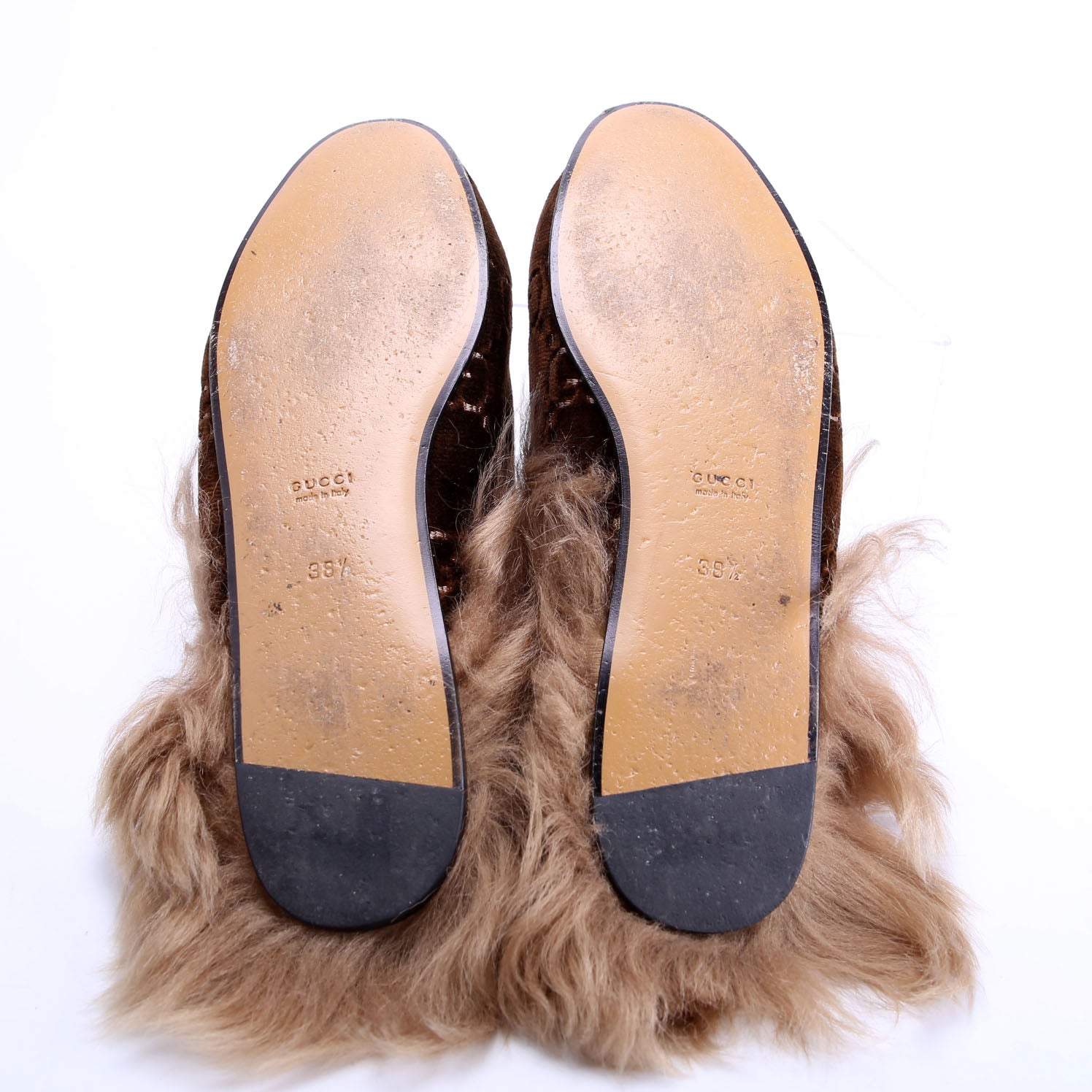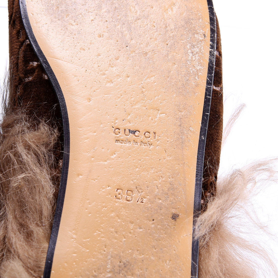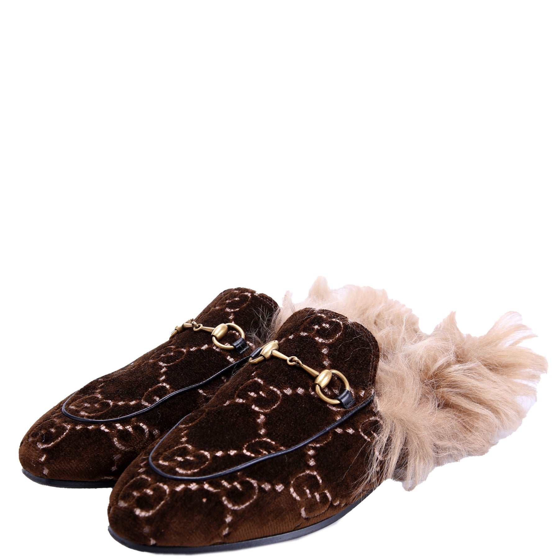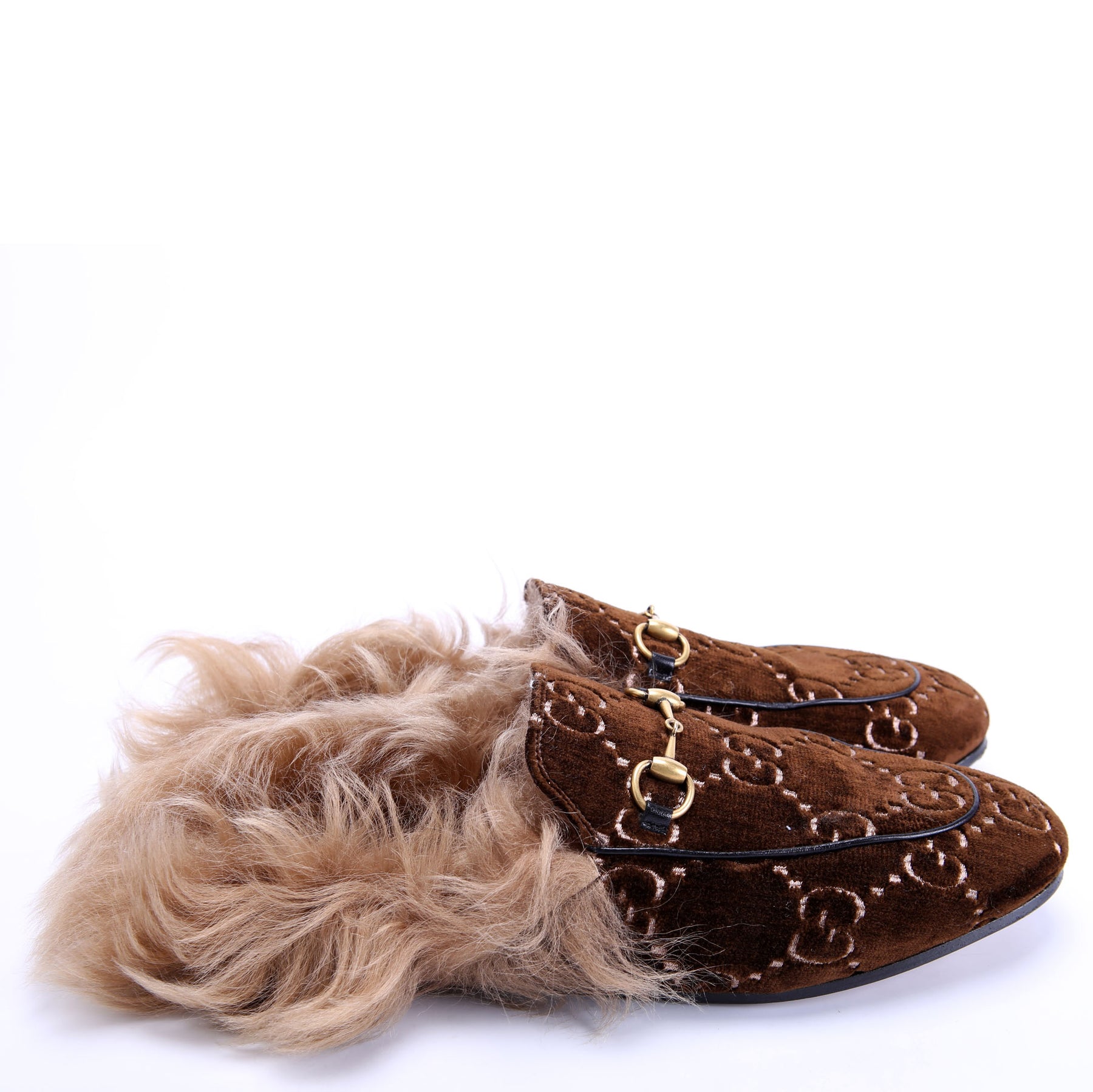 GG Velvet Fur Princetown Mules Size 38.5 Brown