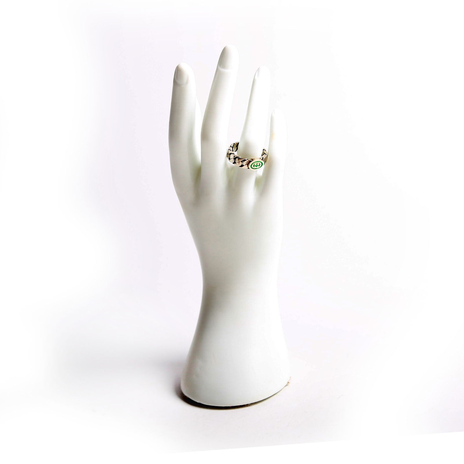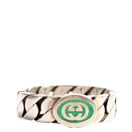 This pre-owned Gucci Interlocking G Enamel Link Ring 925 is guaranteed 100% authentic.