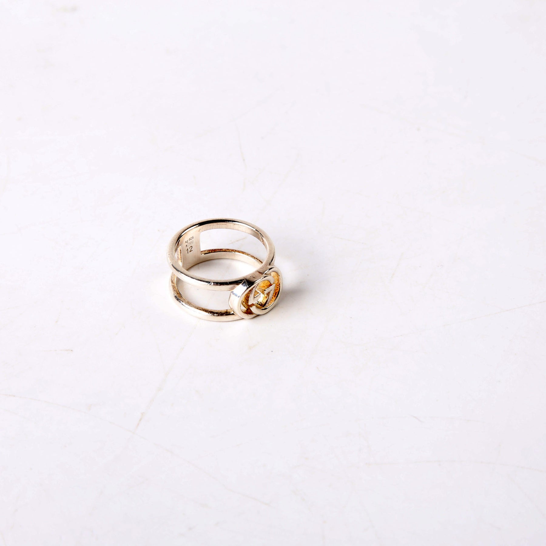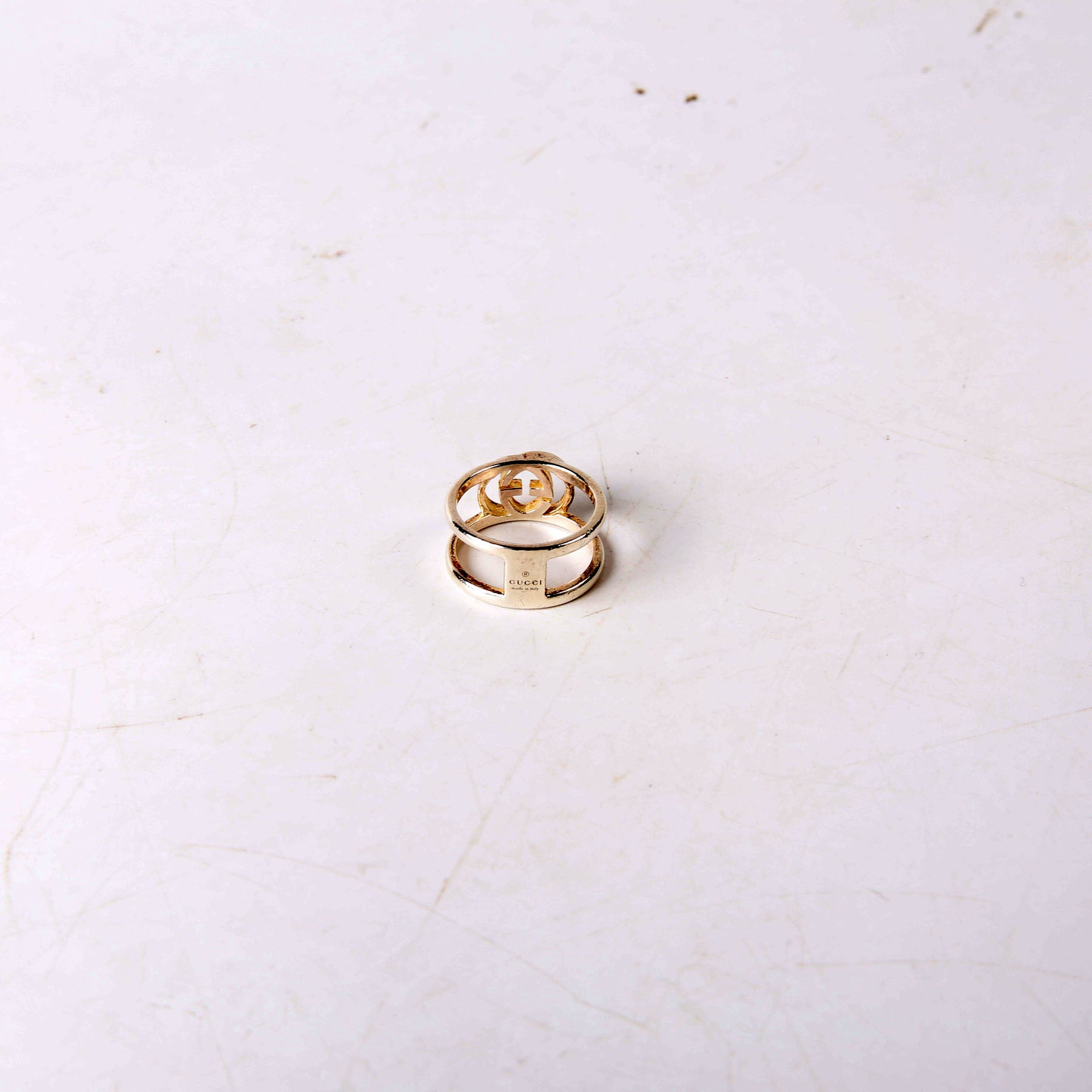 This pre-owned Gucci Interlocking G Open Band 925 Ring is guaranteed 100% authentic.
