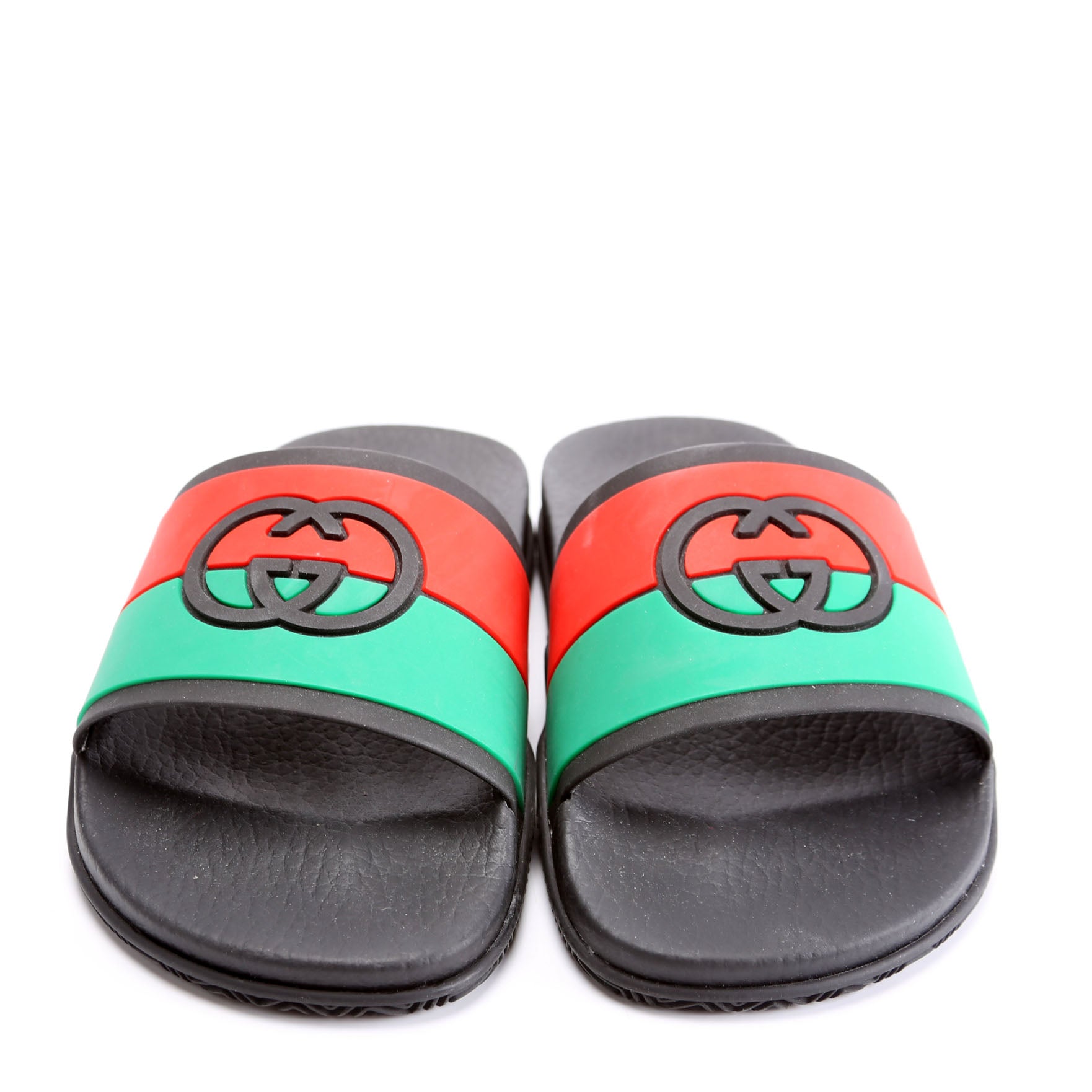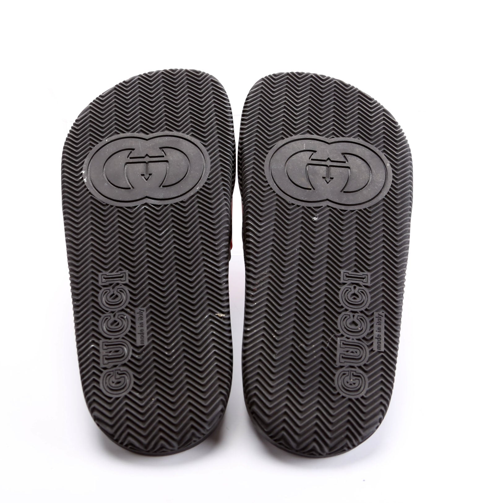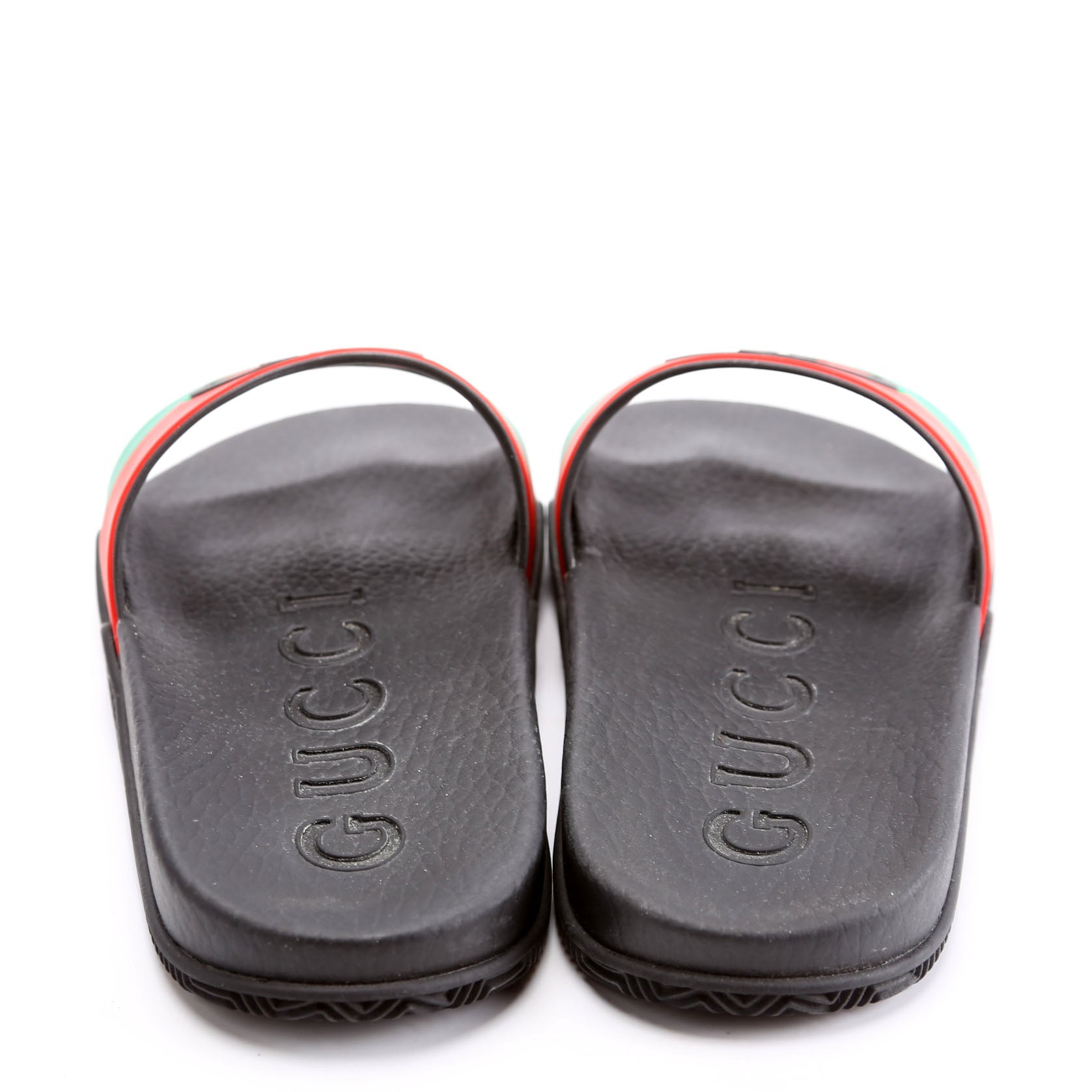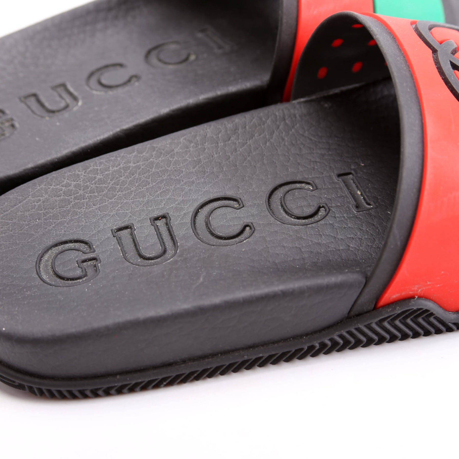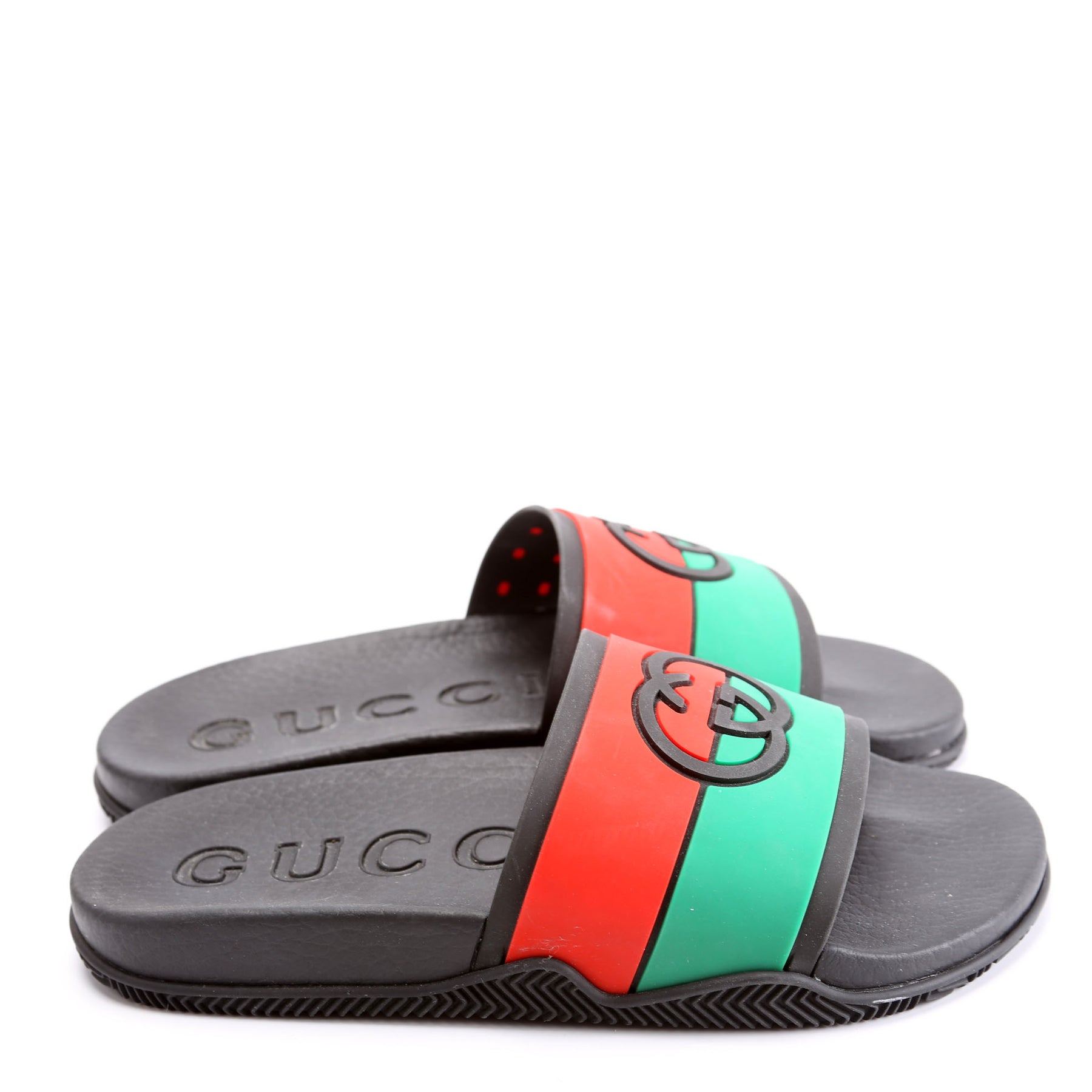 These pre-owned Gucci Interlocking G Web Stripe Slides are guaranteed 100% authentic.