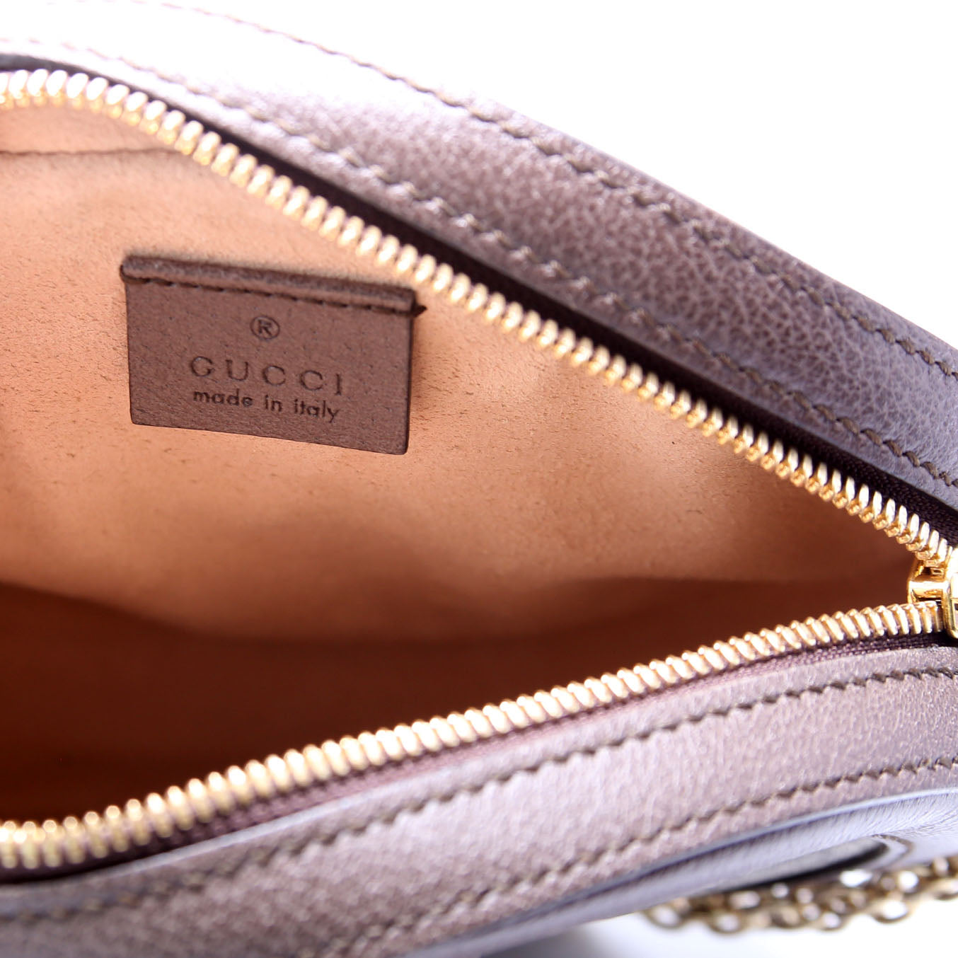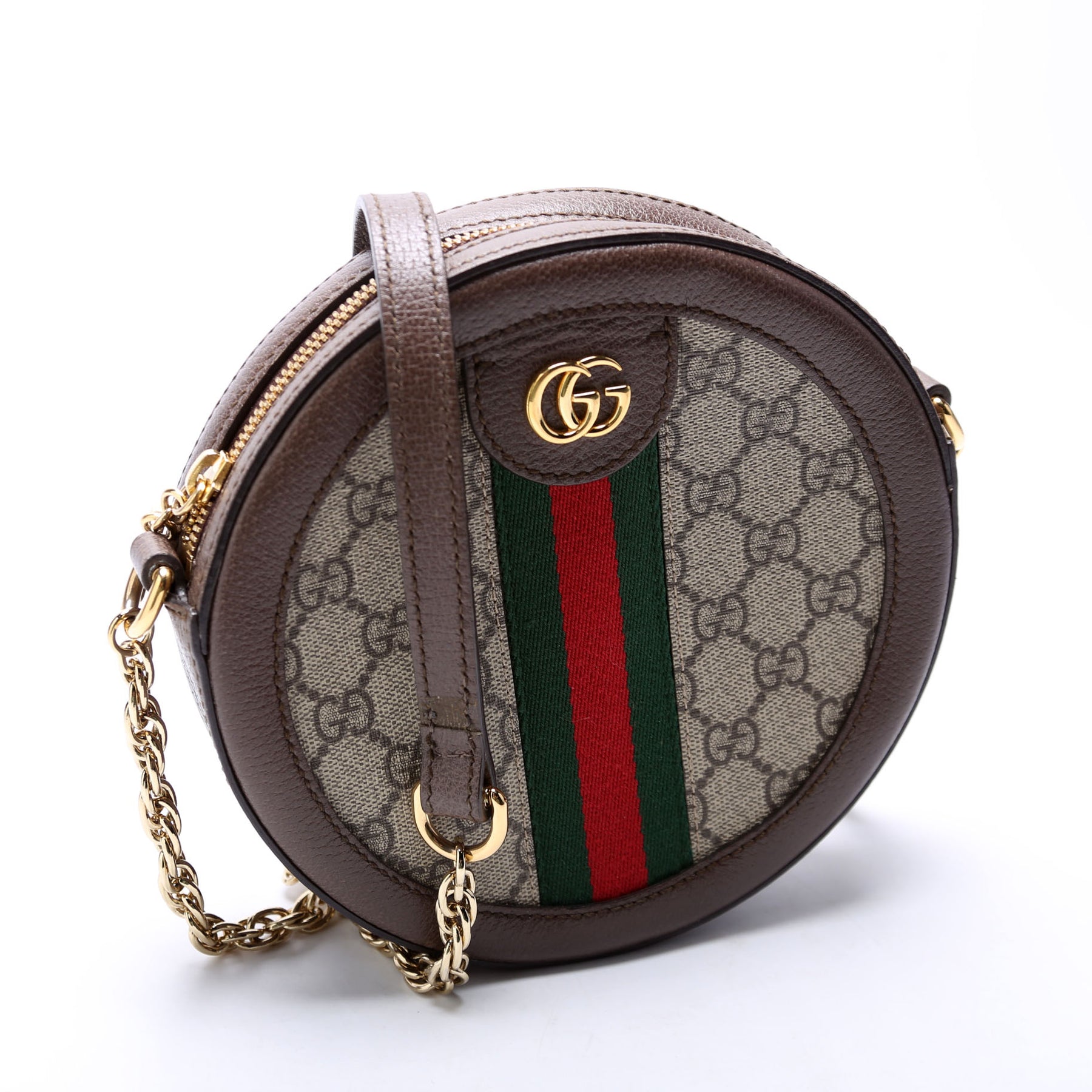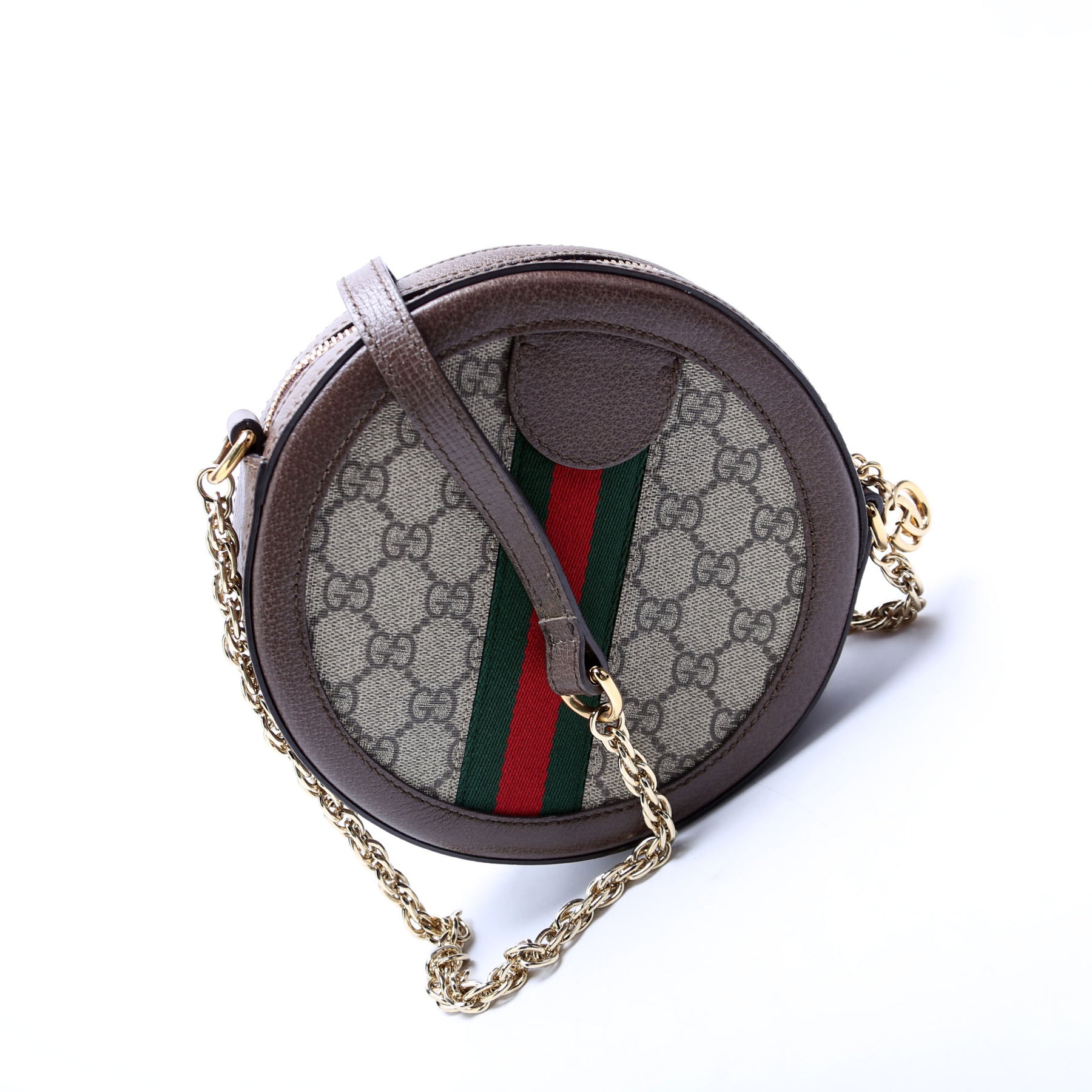 This pre-owned Gucci Ophidia Round Small Crossbody is guaranteed 100% authentic. The exterior is in the classic Gucci GG Supreme coated canvas.