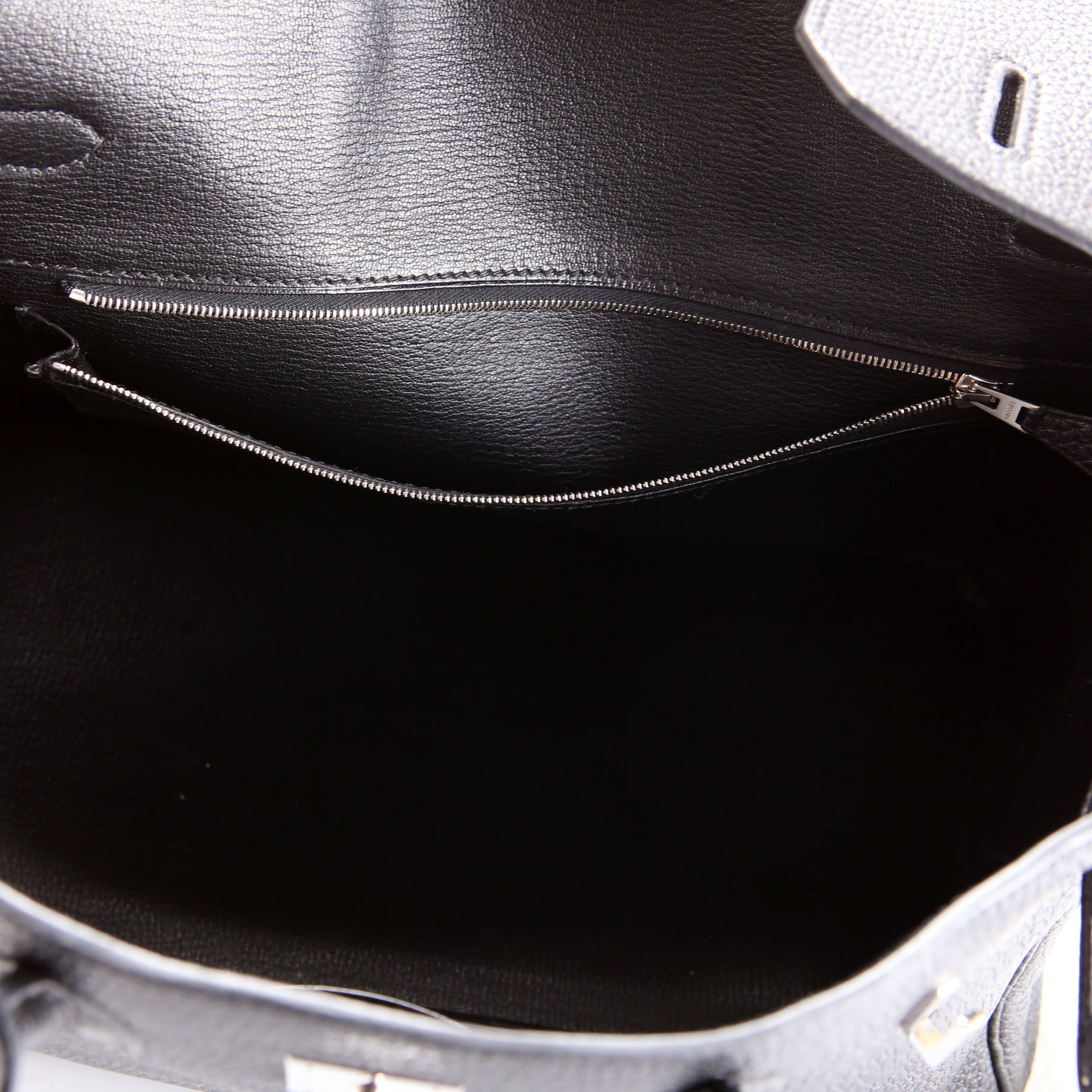 Interior: The interior is free from wear. It features one open pocket and one zip closure pocket.