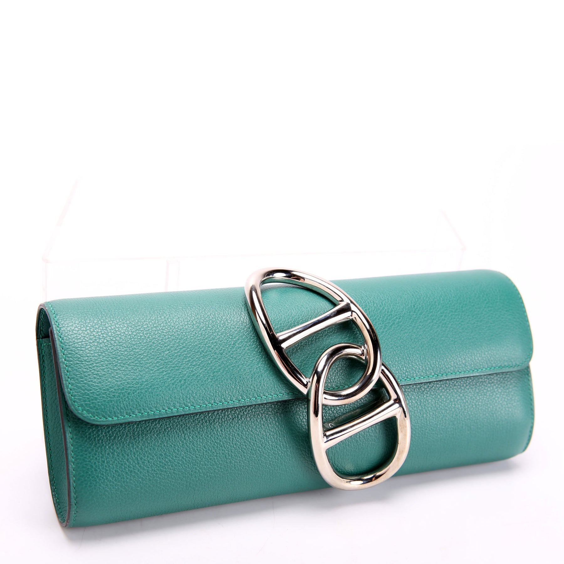 This pre-owned Hermes Egee Clutch Evercolor is guaranteed 100% authentic. The exterior is in the classic Hermes Pressed Calfskin Leather.