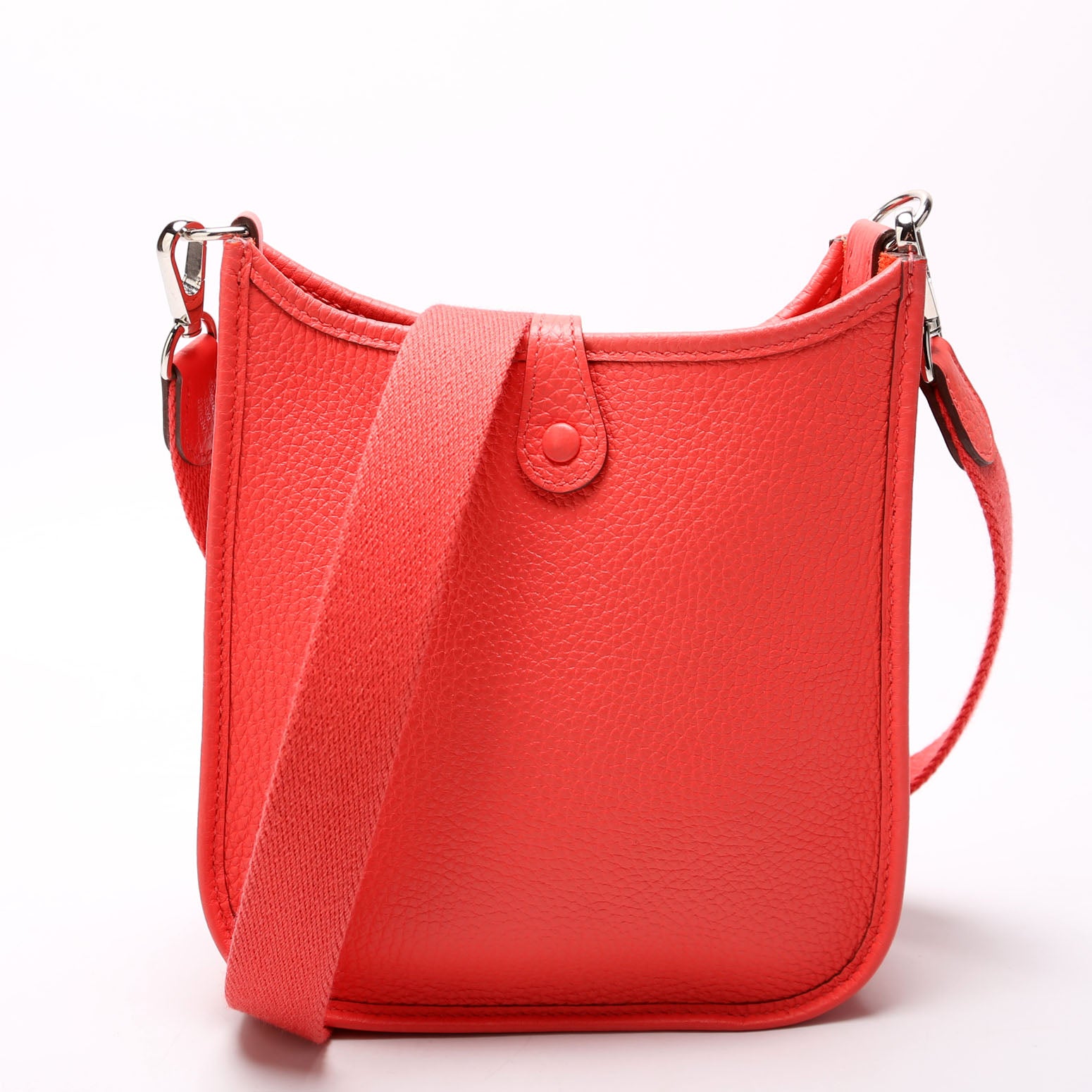 This pre-owned Hermes Evelyne TPM is guaranteed 100% authentic. The exterior is in the classic Hermes Taurillon leather.