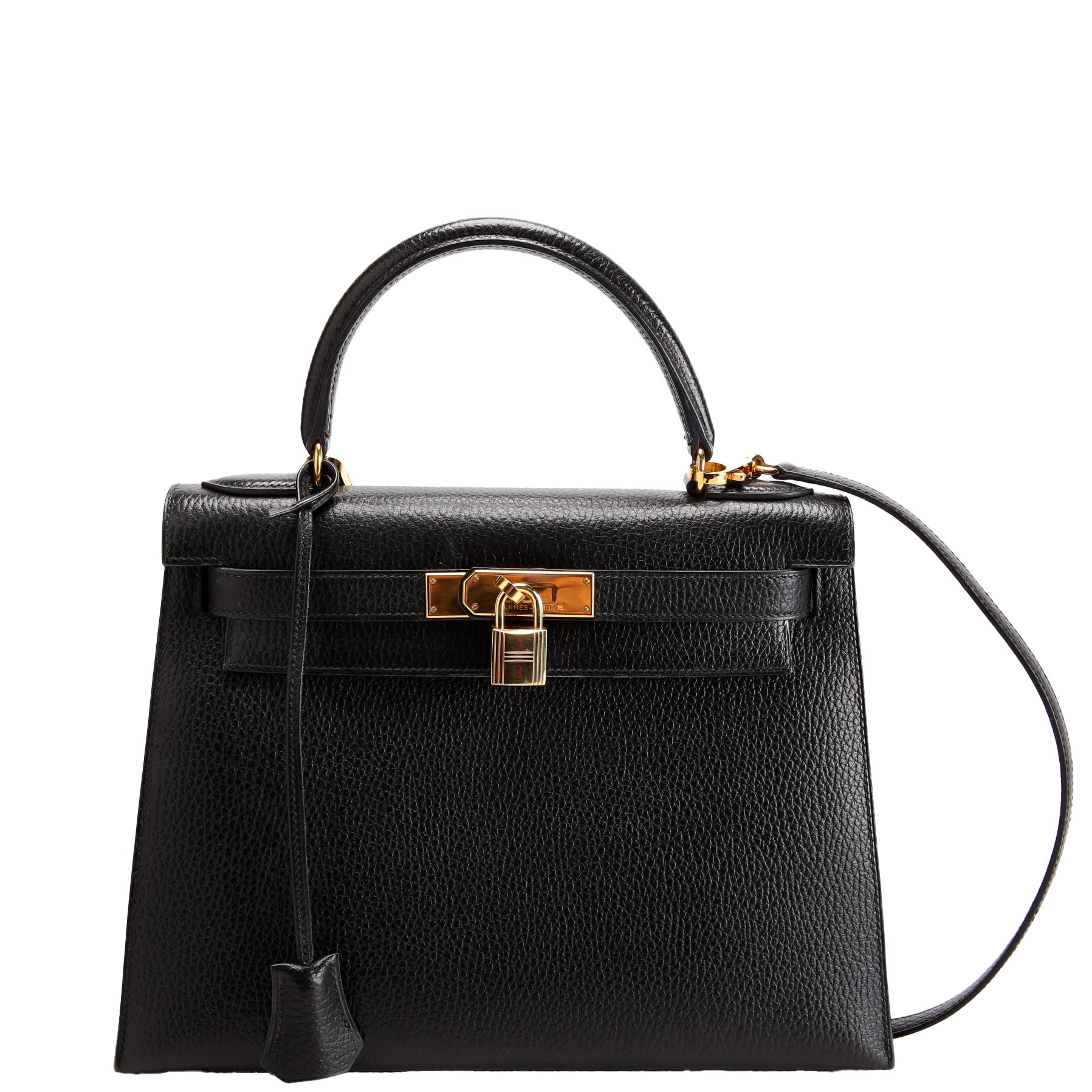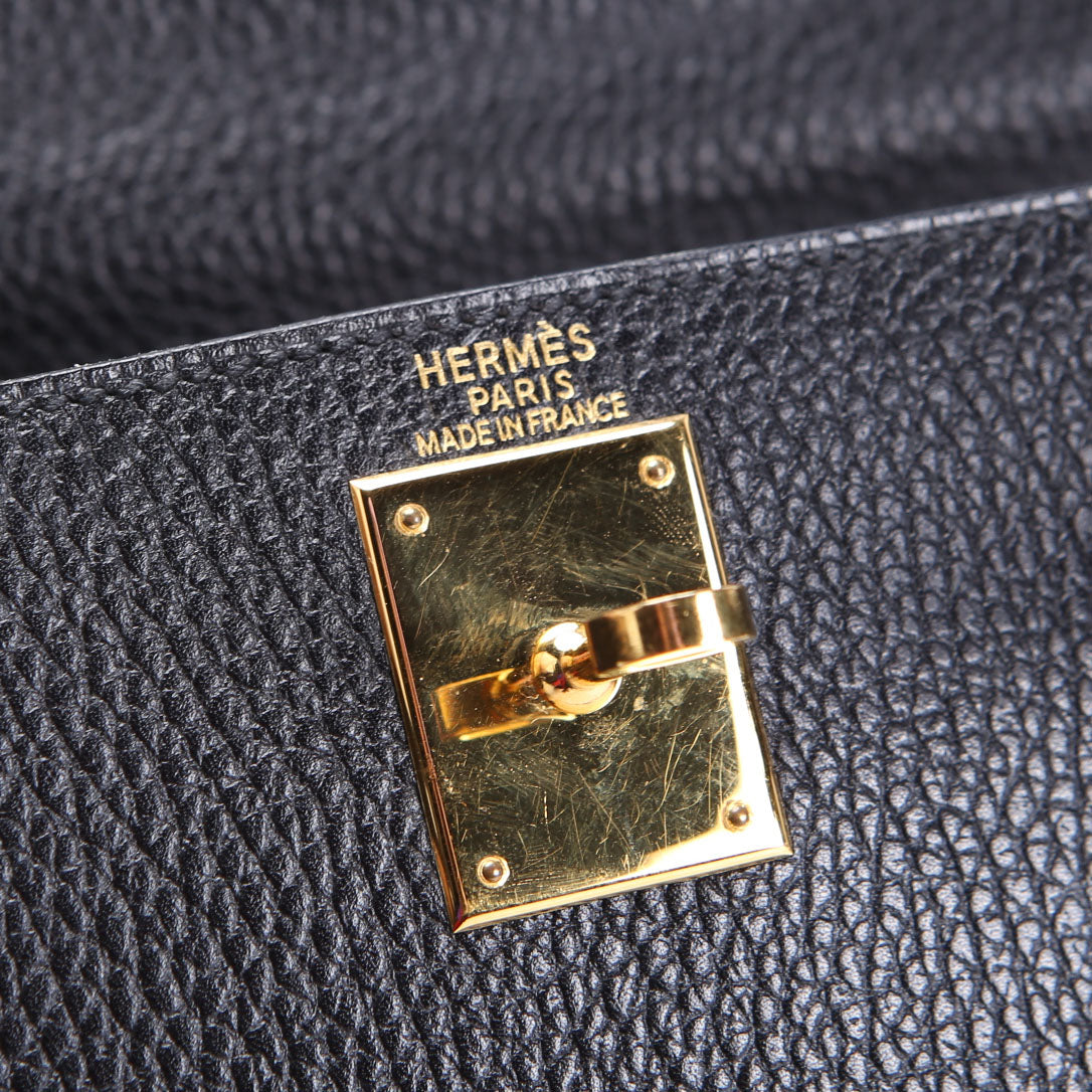This pre-owned Hermes Kelly 28 Ardennes 1997 is guaranteed 100% authentic. The exterior is in the classic Hermes Ardennes Leather.