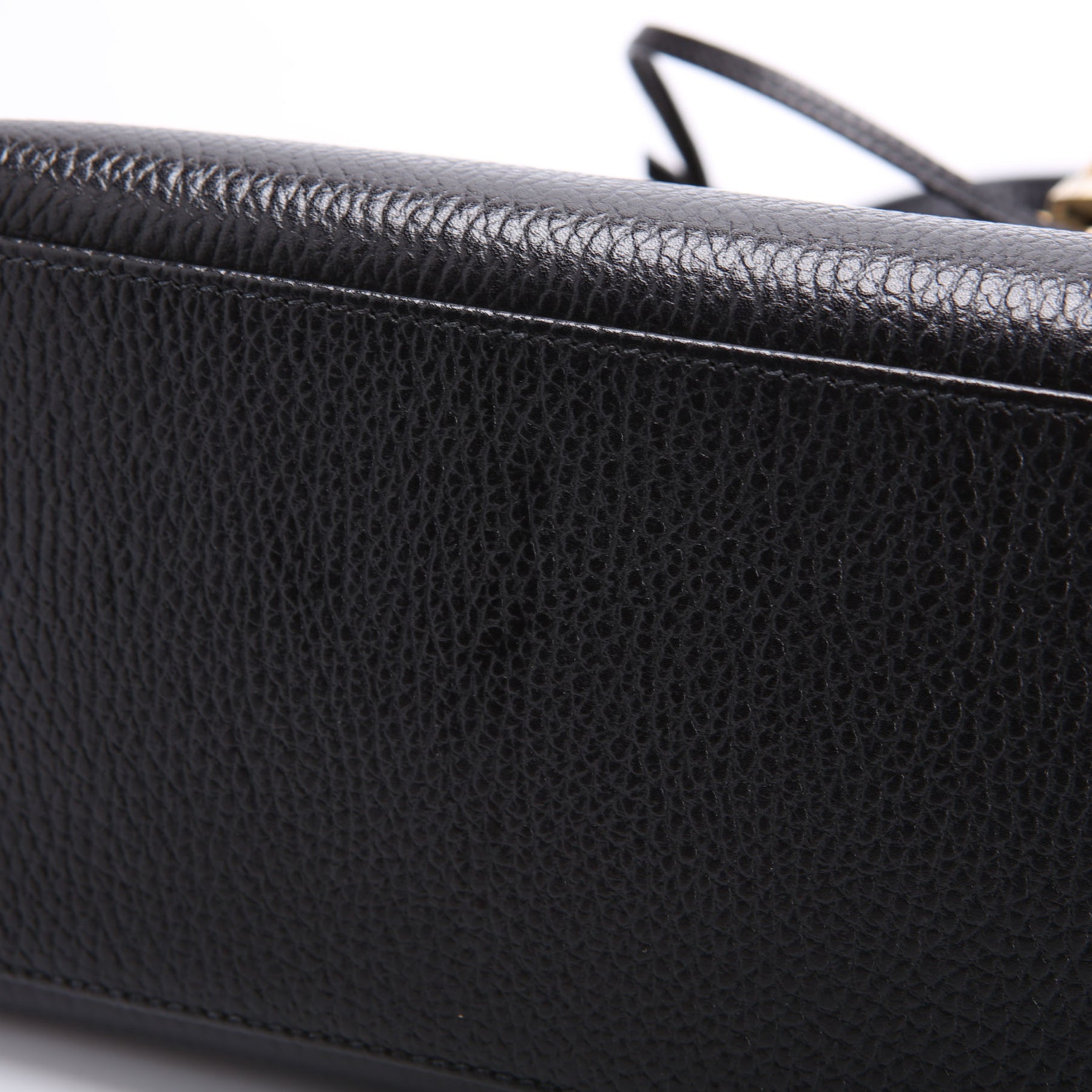 Exterior: The exterior has scratching throughout and wear on all four corners of the bag. The piping has minor tearing. The base of the bag has marks as pictured.