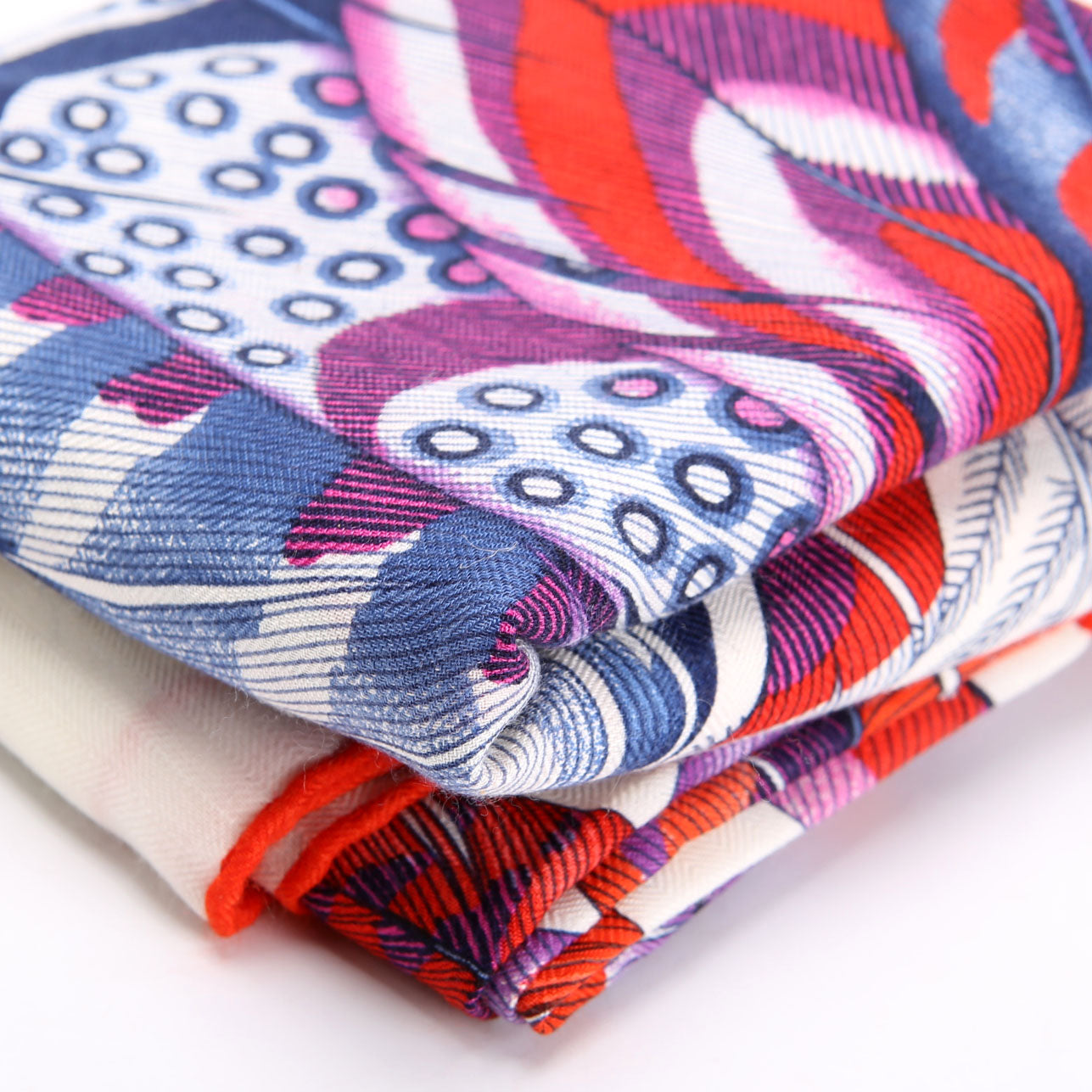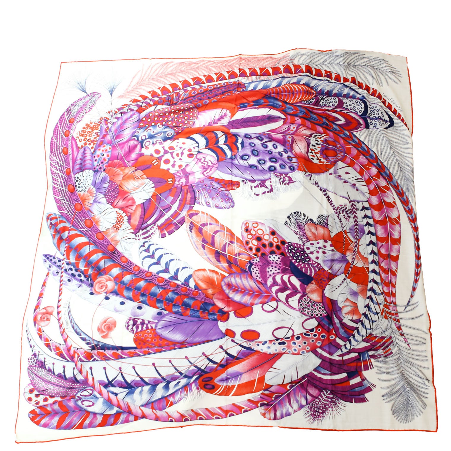 This pre-owned Hermes Scarf: Shawl Plumes En fete 140 Cashmere is guaranteed 100% authentic.