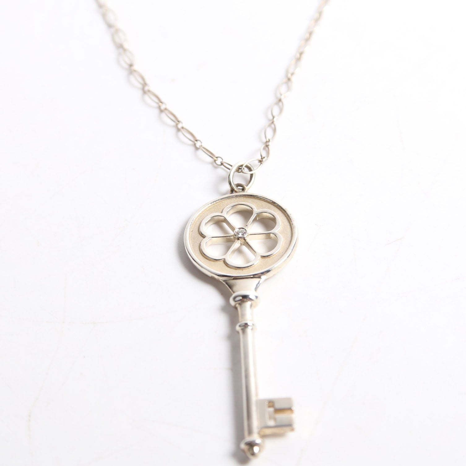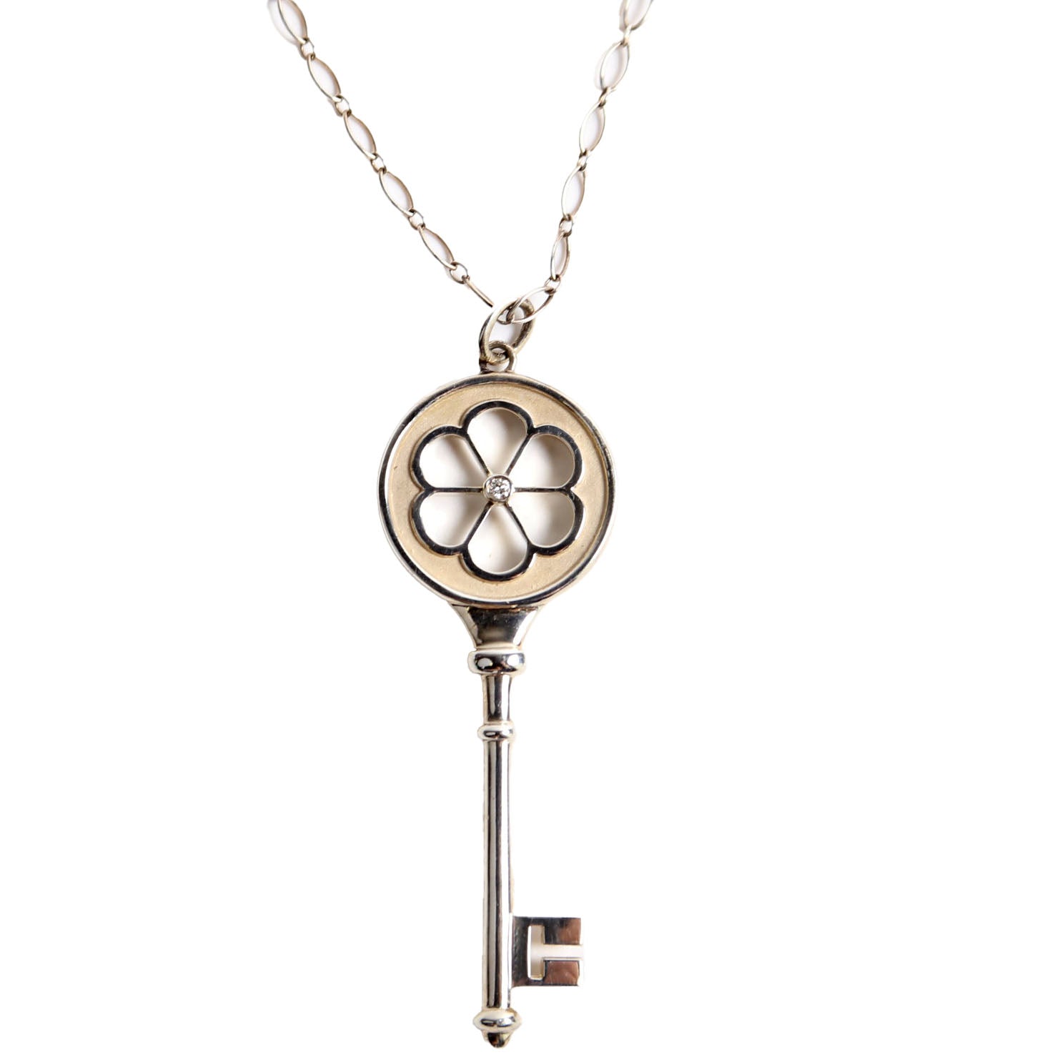 These pre-owned Tiffany & Co. Blossom Flower Key Pendant Necklace are guaranteed 100% authentic.