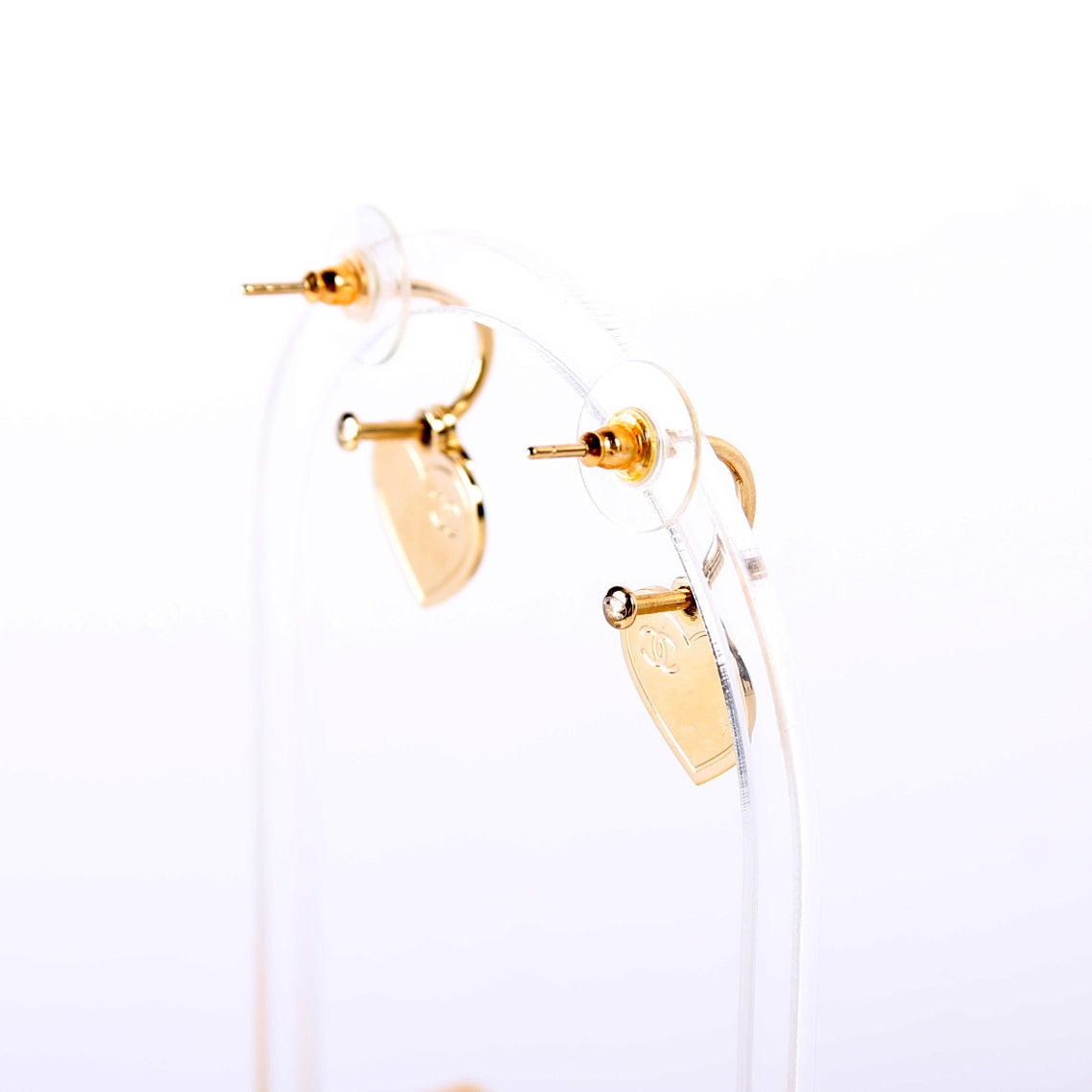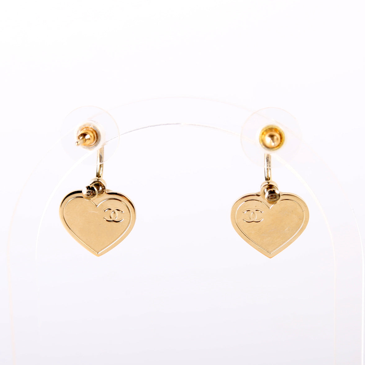 These pre-owned Chanel CC Drop Heart Huggie Earrings are guaranteed 100% authentic.
