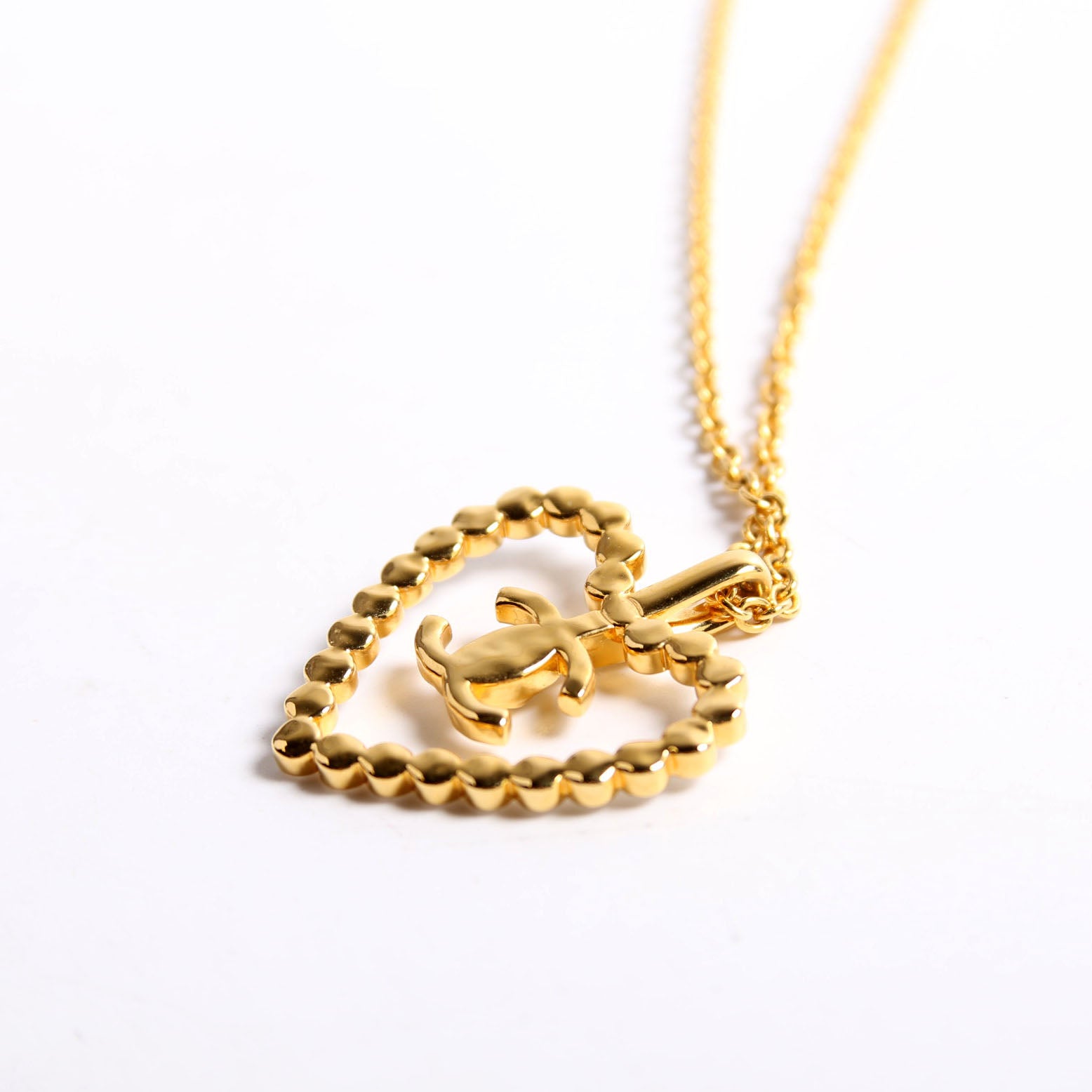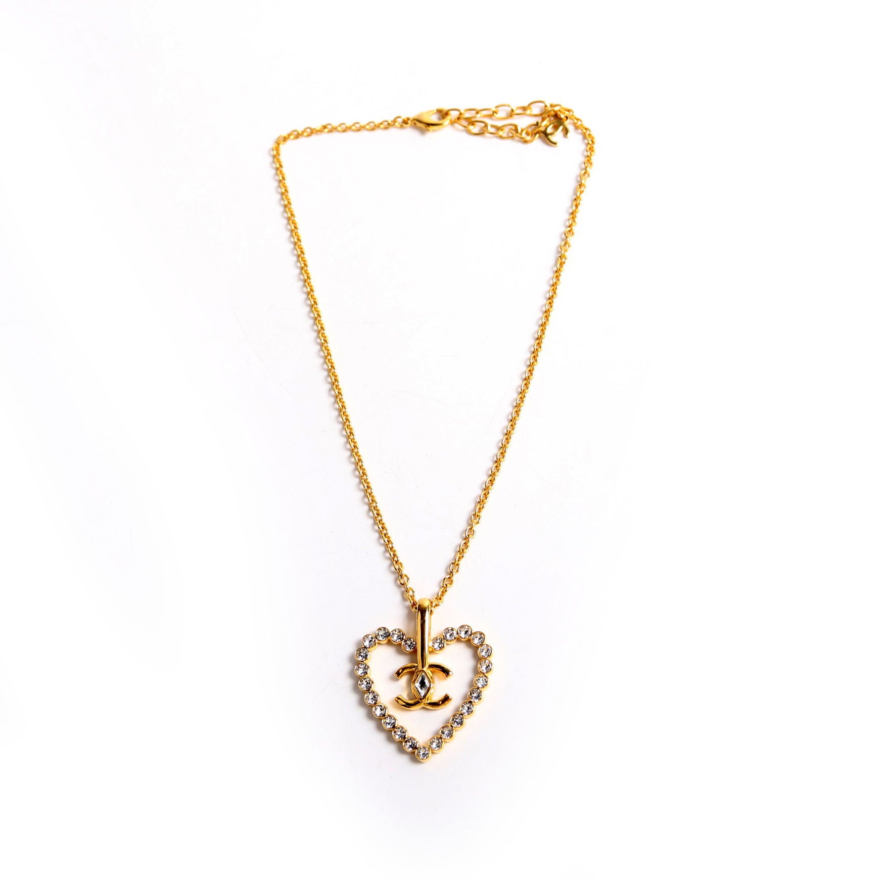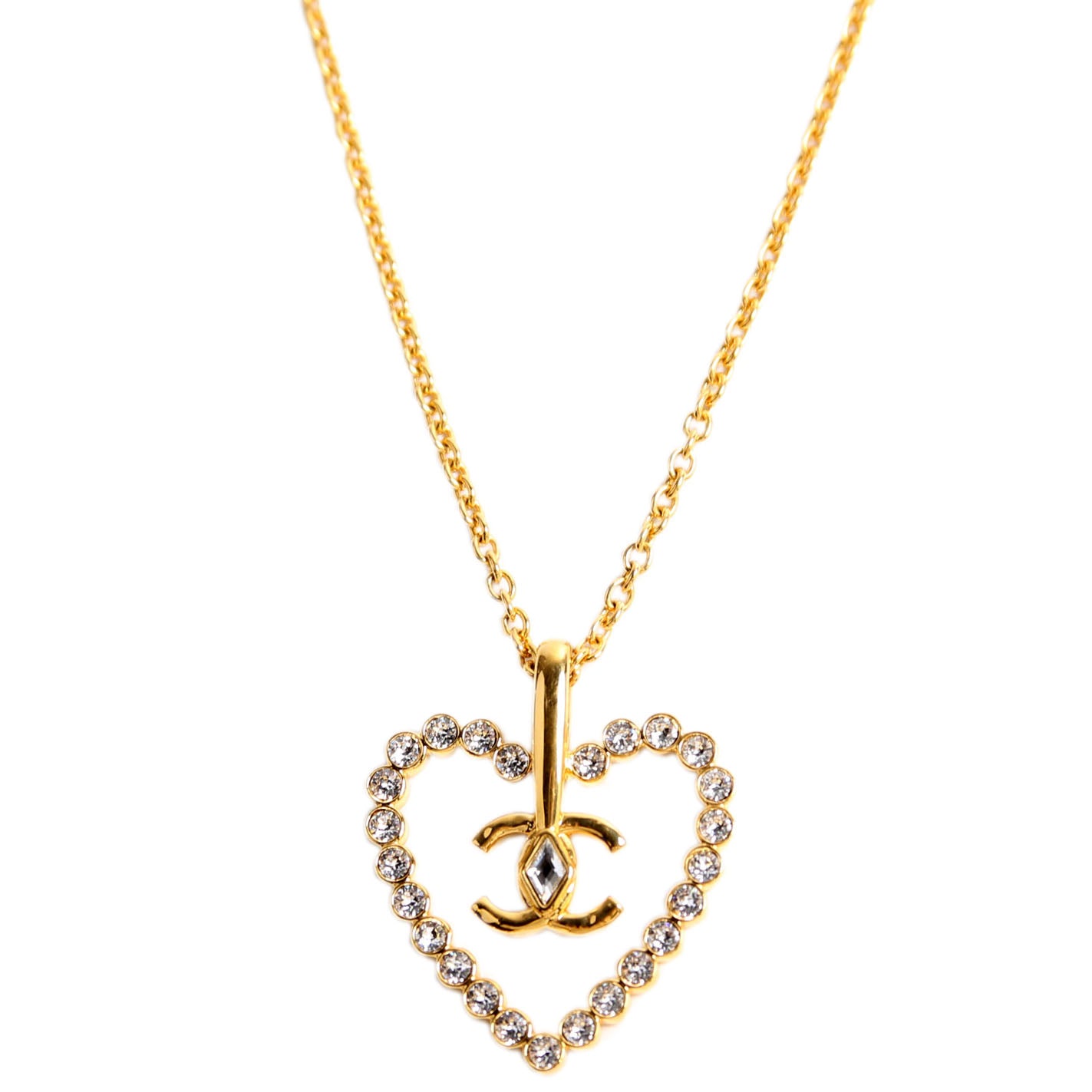 This pre-owned Chanel CC Heart Crystal Necklace is guaranteed 100% authentic.