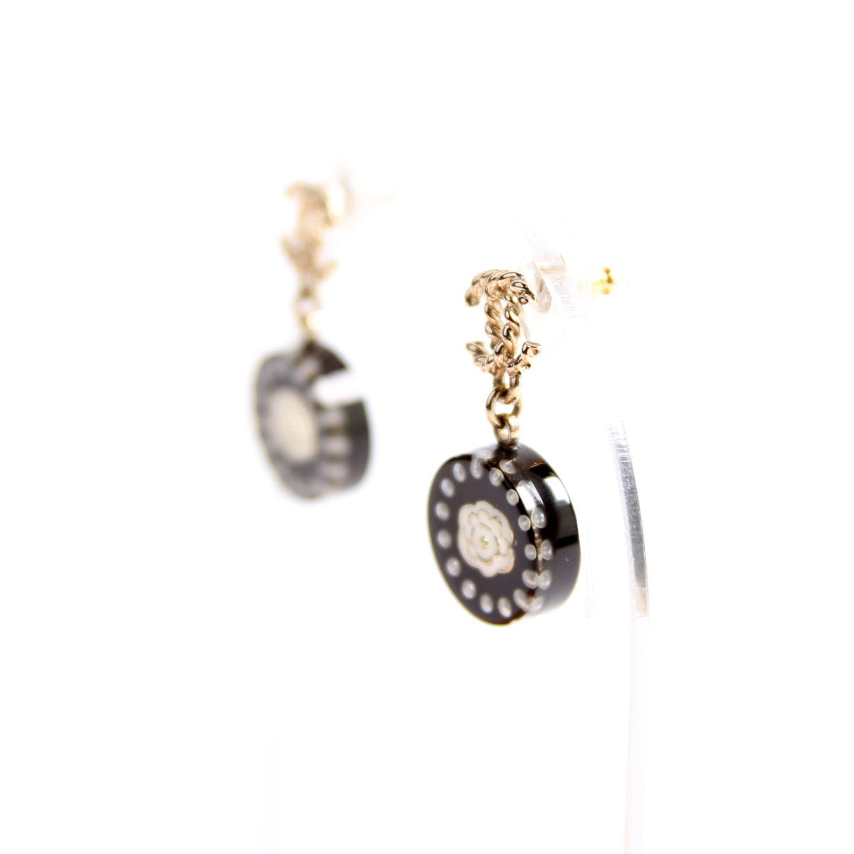 These pre-owned Chanel CC Round Camellia Flower Resin Drop Earrings are guaranteed 100% authentic.