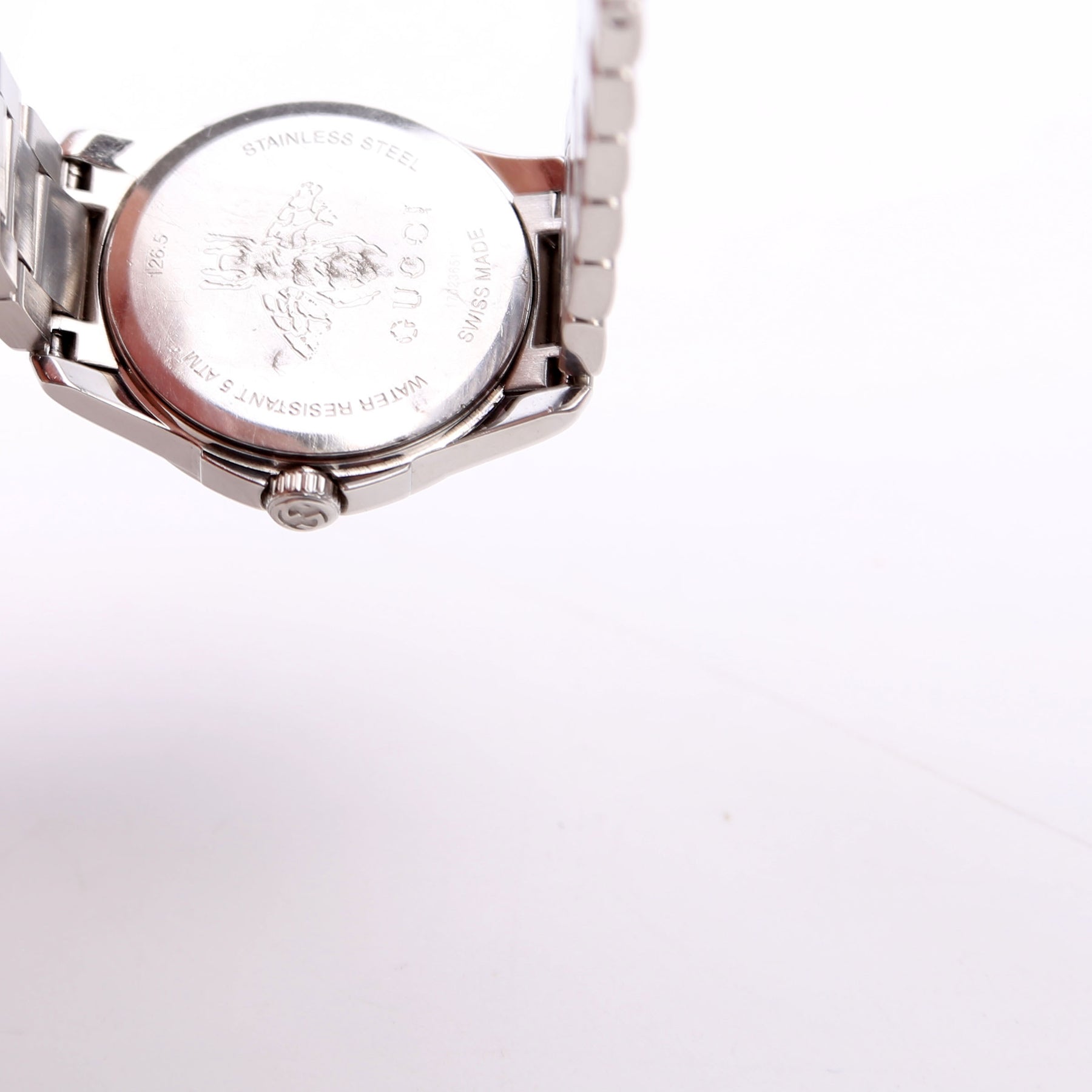 This pre-owned Gucci G-Timeless Charm Quartz/Stainless Steel 27MM Watch is guaranteed 100% authentic.