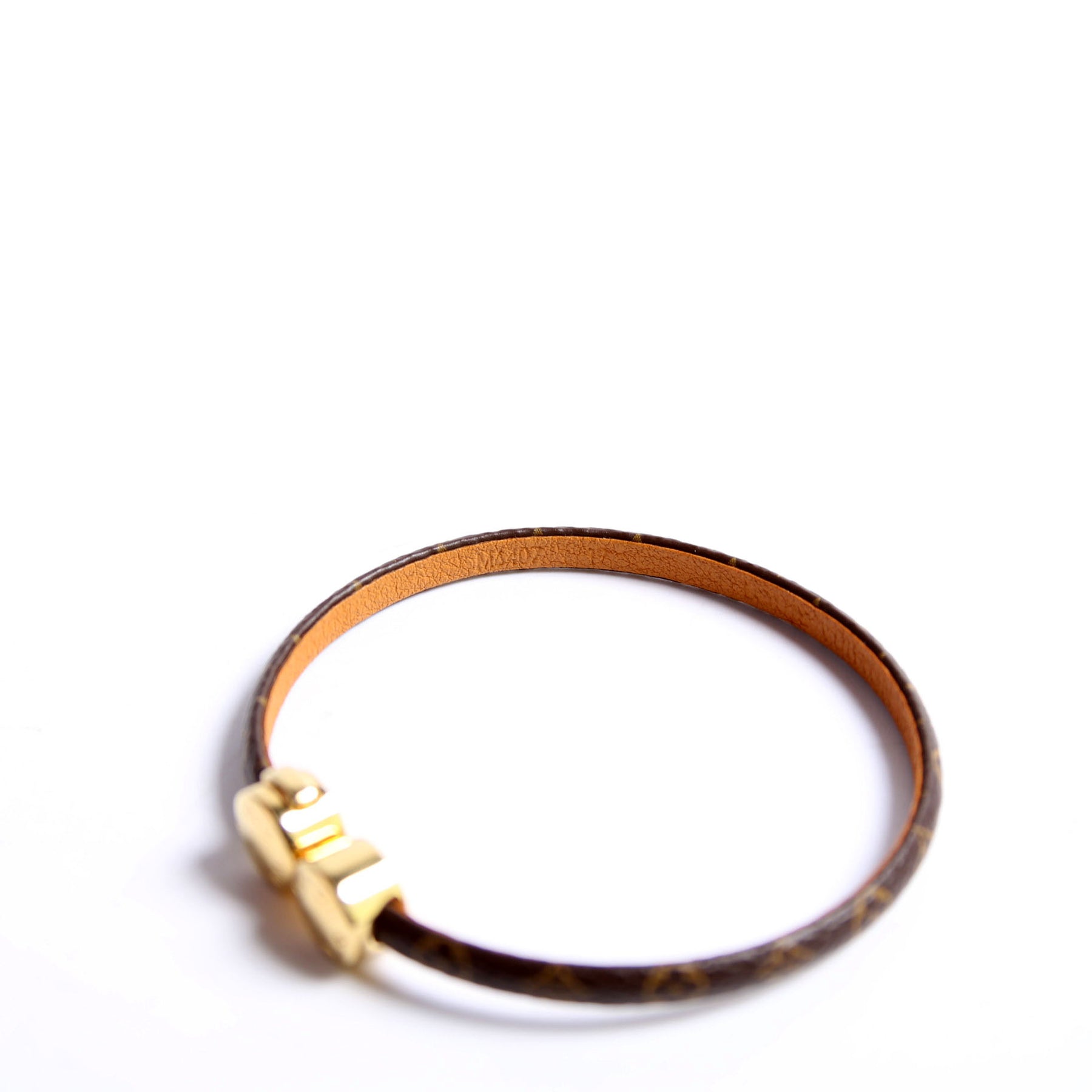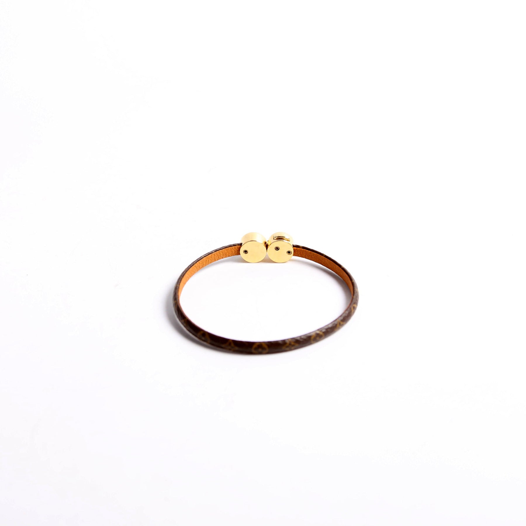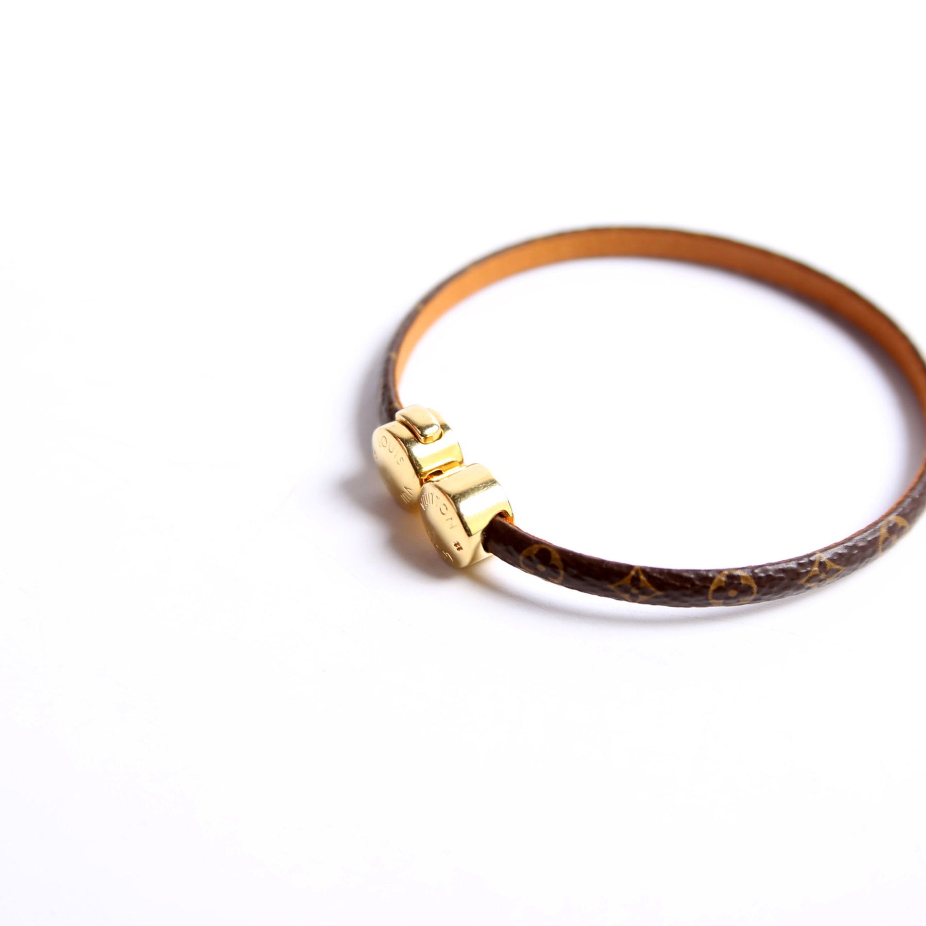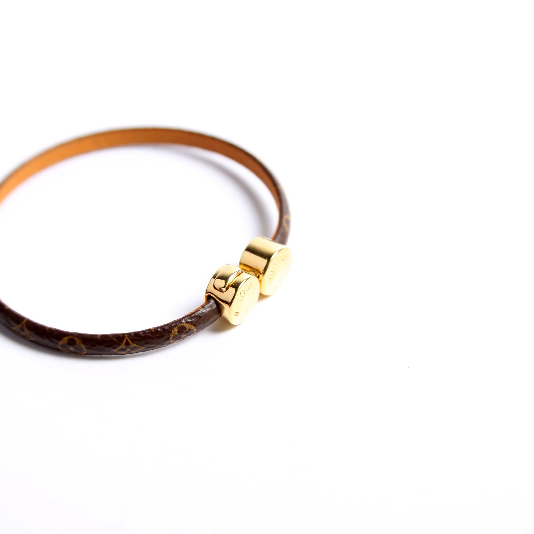 This pre-owned Louis Vuitton Historic Mini Monogram Bracelet is guaranteed 100% authentic. The exterior is in the classic Louis Vuitton Monogram coated canvas.