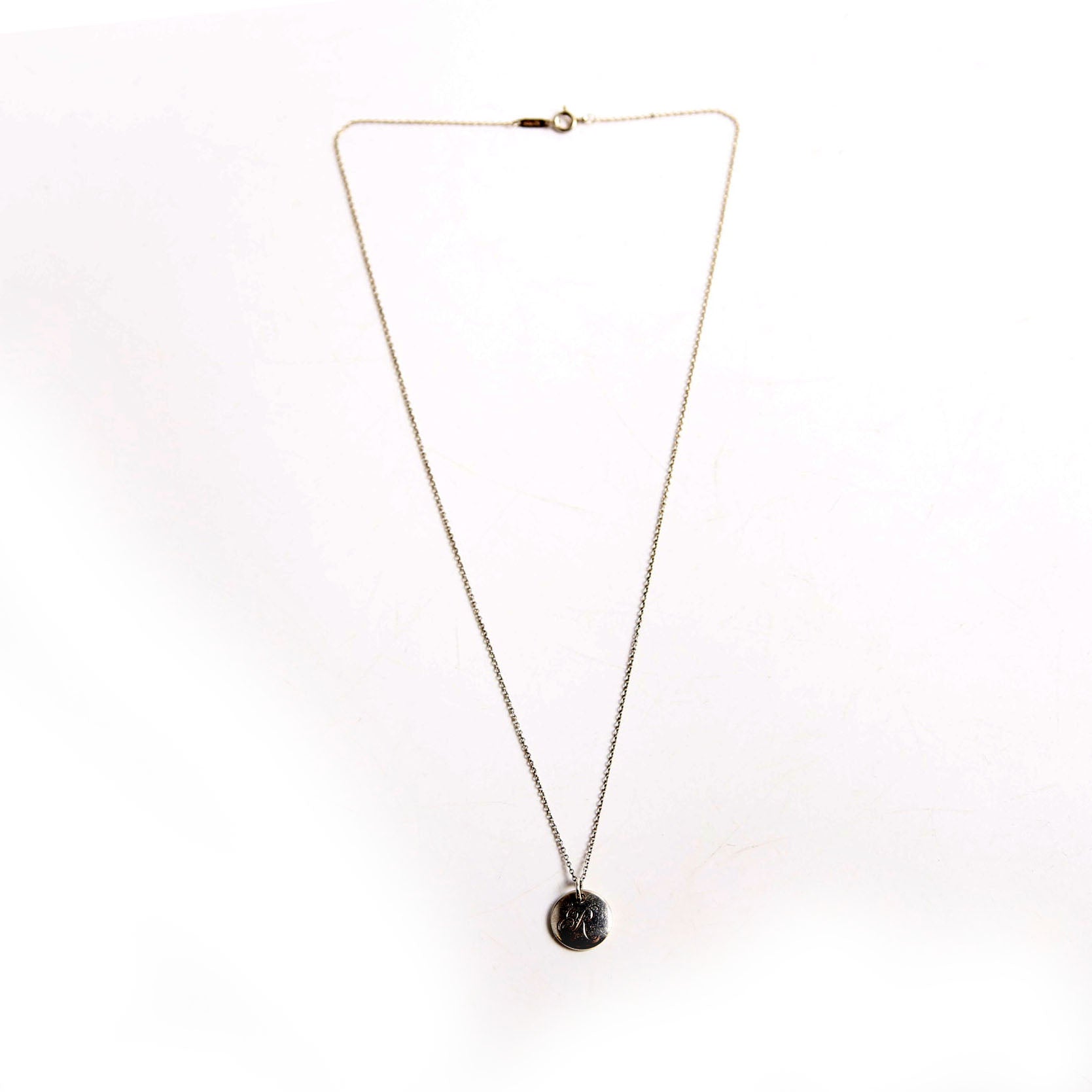 This pre-owned Tiffany & Co. Initial "R" Pendant Necklace is guaranteed 100% authentic.