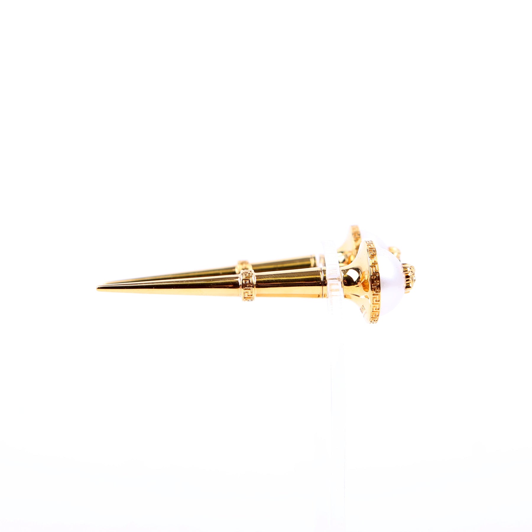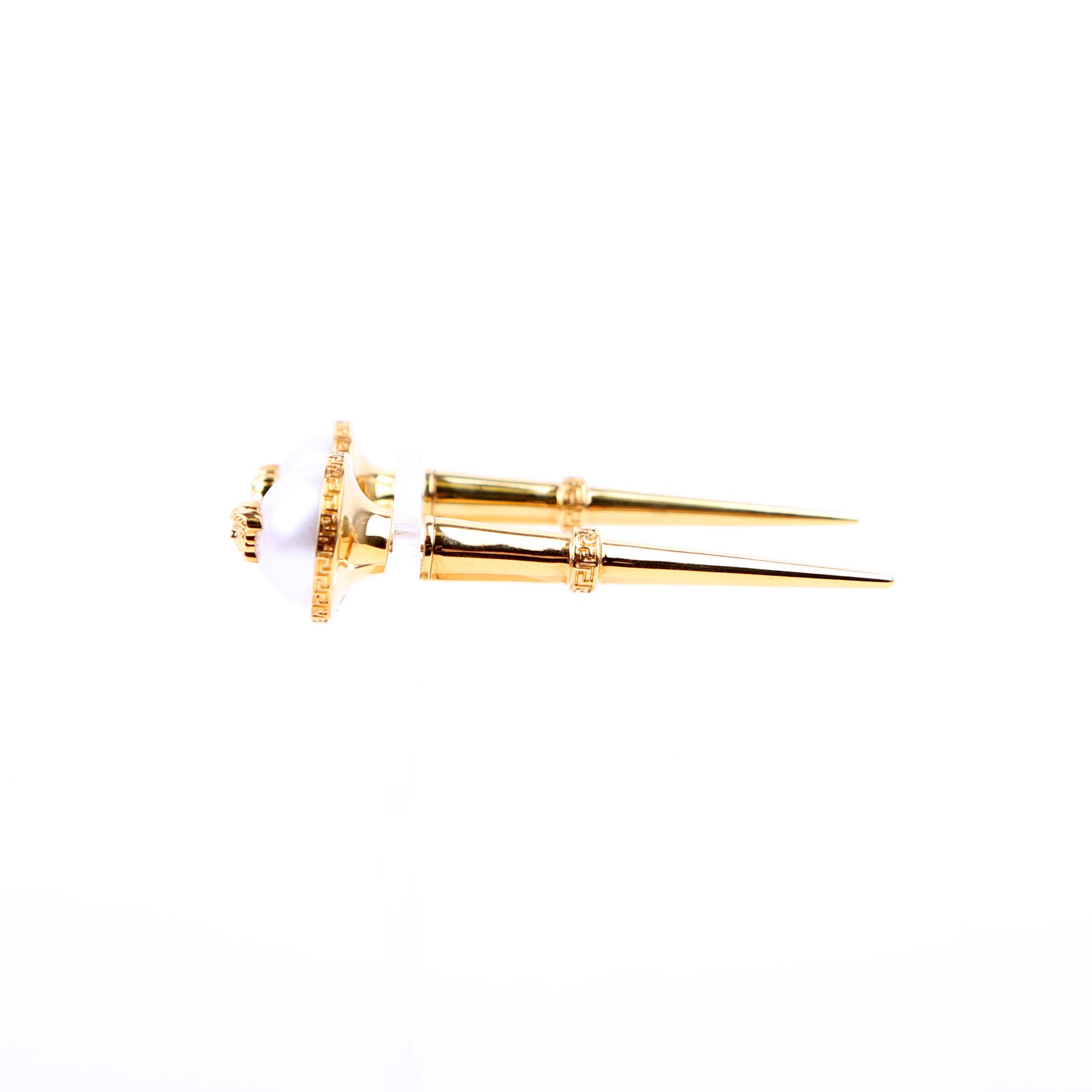 These pre-owned Versace Medusa Faux Pearl Spike Stud Earrings are guaranteed 100% authentic.