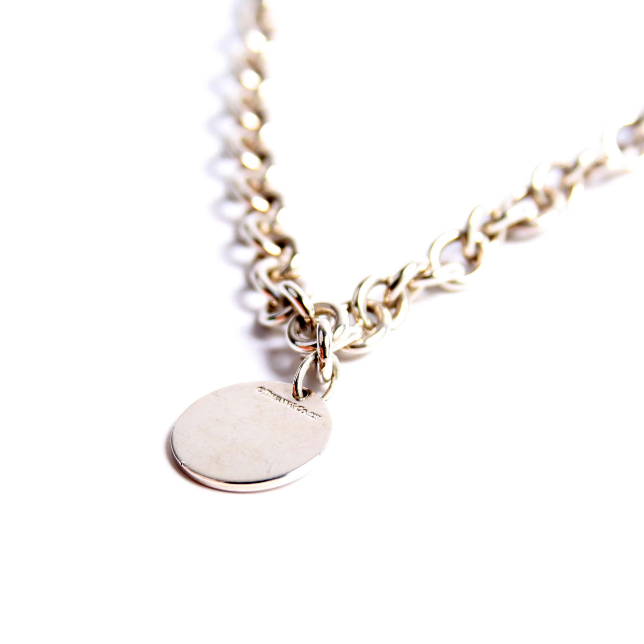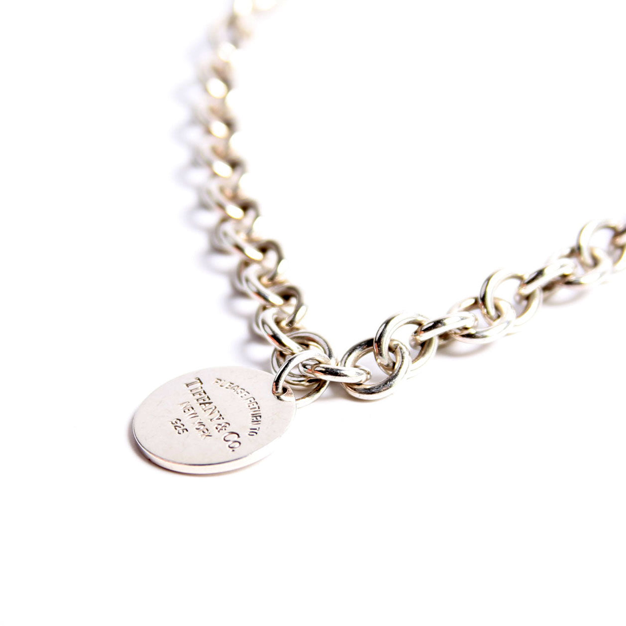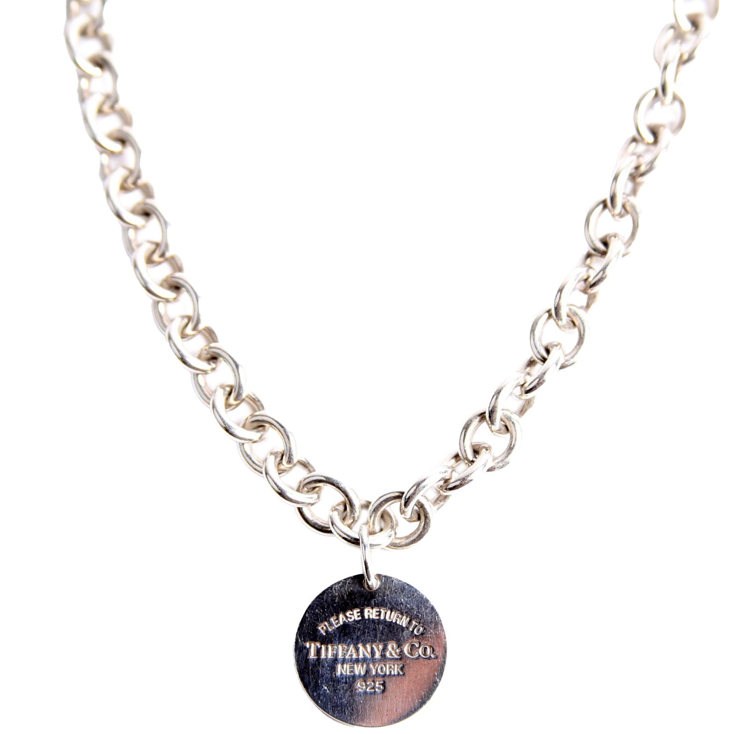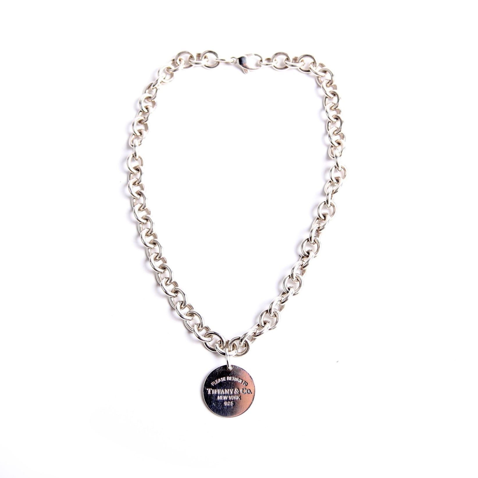This pre-owned Tiffany & Co. Please Return To Round Tag Choker is guaranteed 100% authentic.