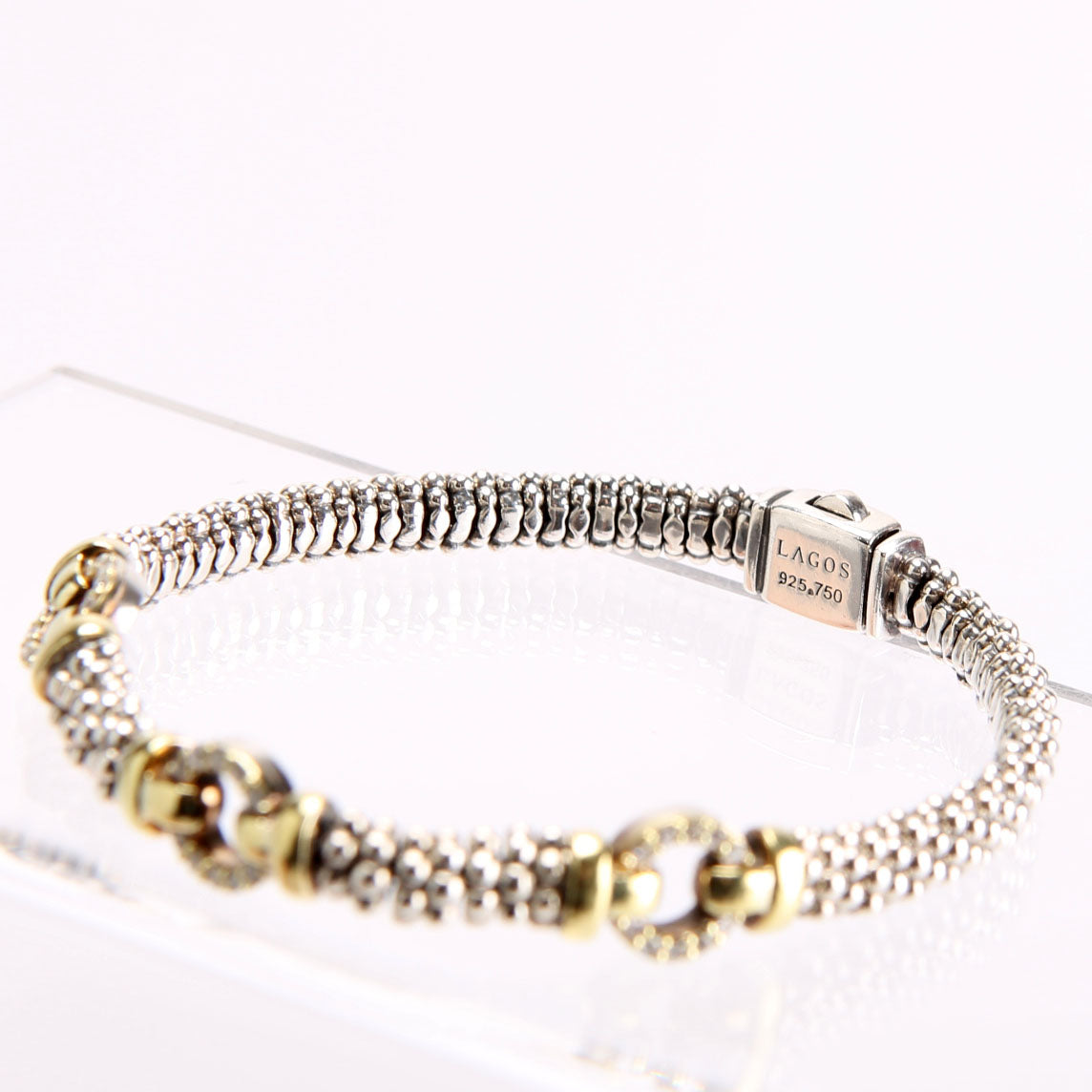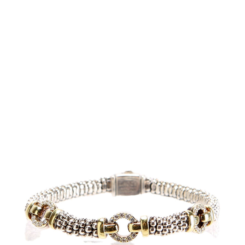 This pre-owned Lagos Three Station Enso Bracelet 925/750/Diamonds is guaranteed 100% authentic.