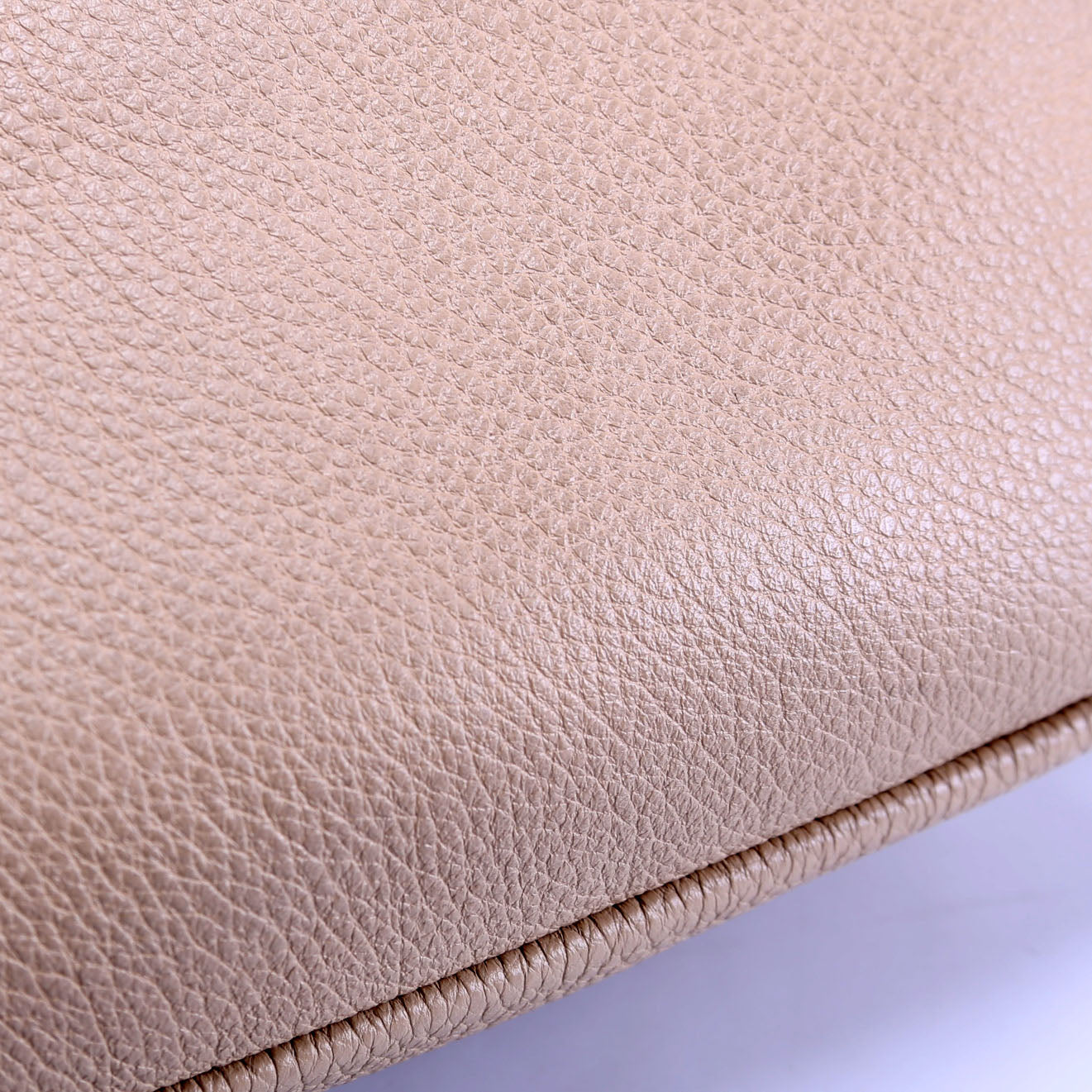 Strap: The fabric shoulder strap shows light stitch fray throughout. The leather is free from major signs of wear.