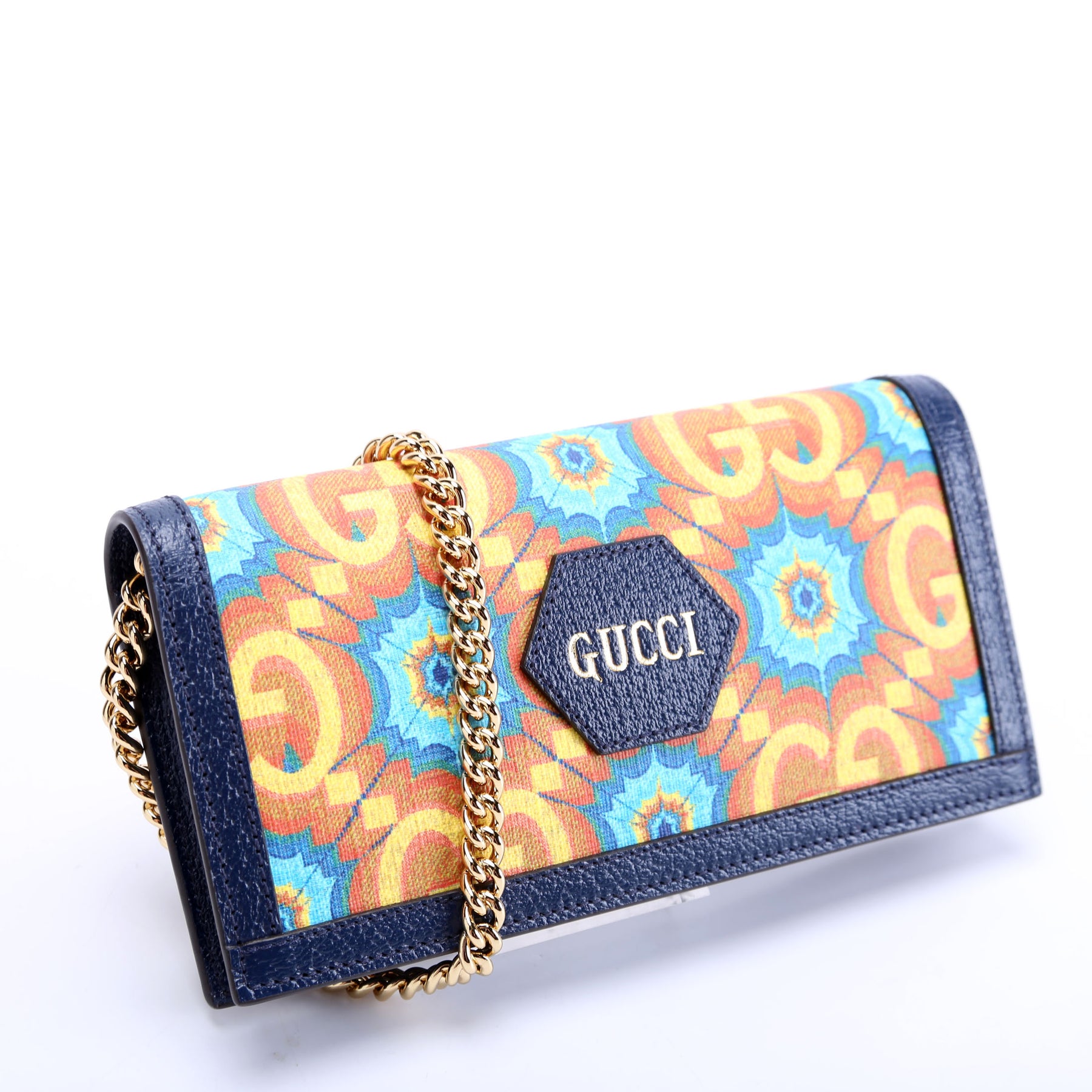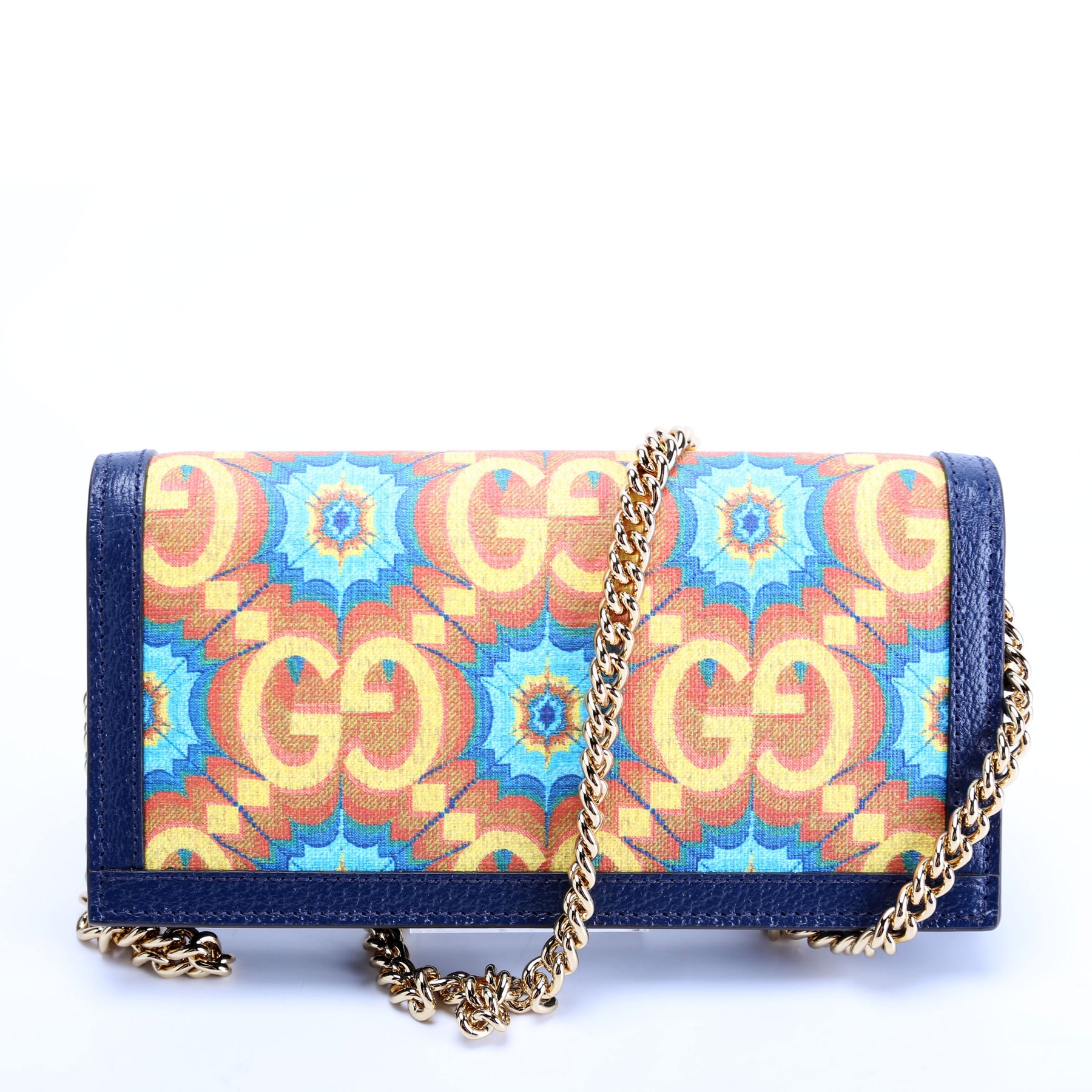 676294 GG Kaleidoscope 100 Chain Wallet Navy/Multicolor