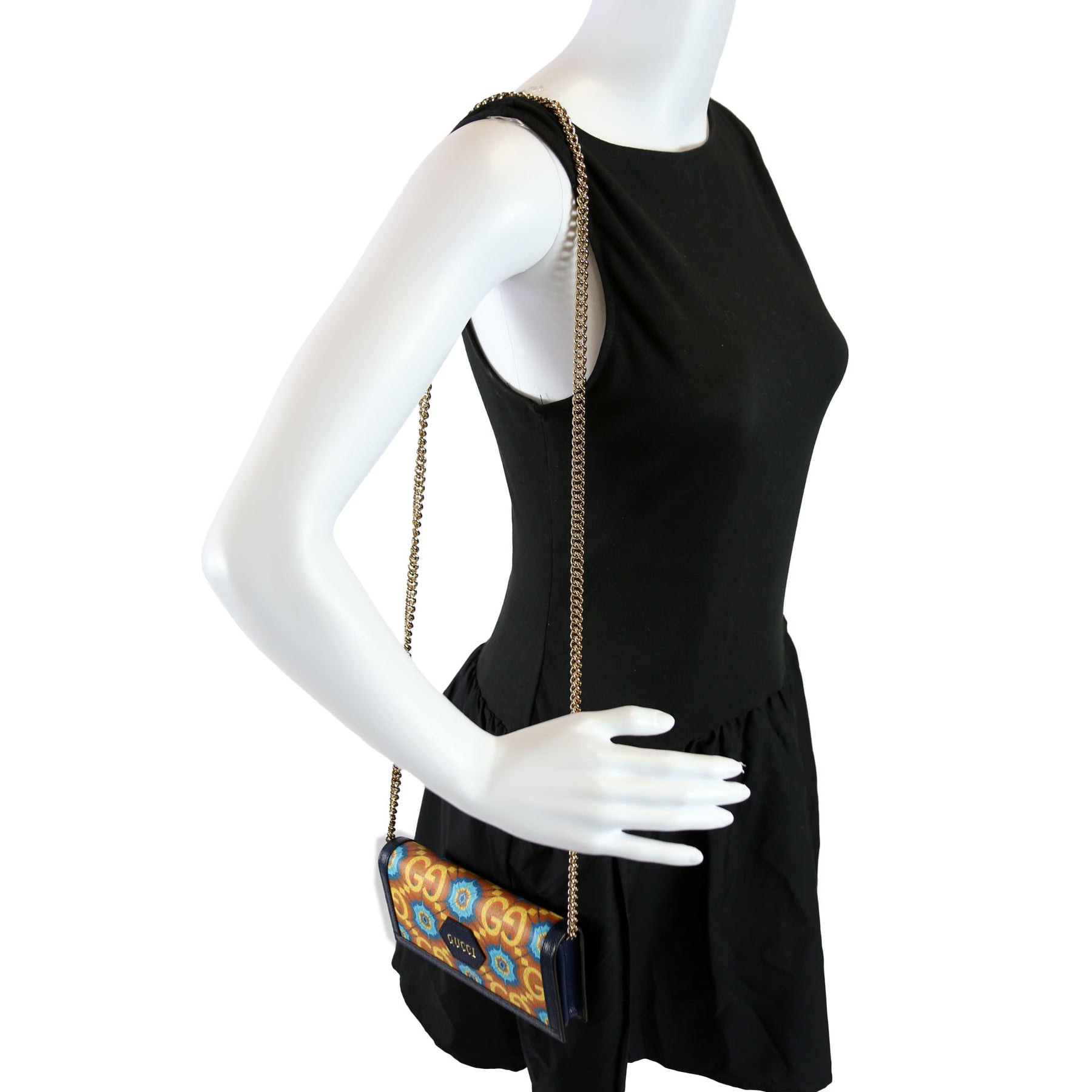 This pre-owned Gucci GG Kaleidoscope 100 Chain Wallet is guaranteed 100% authentic.