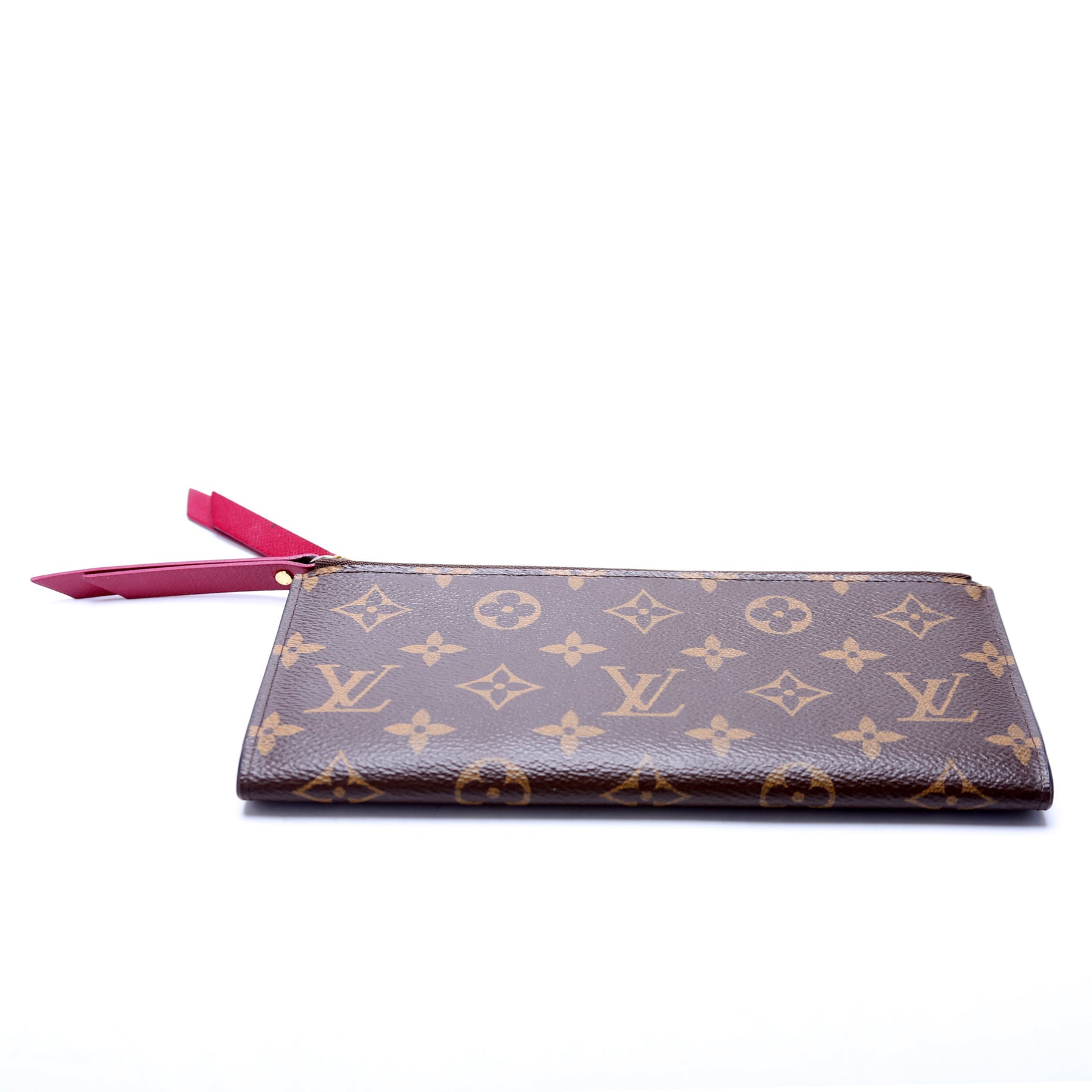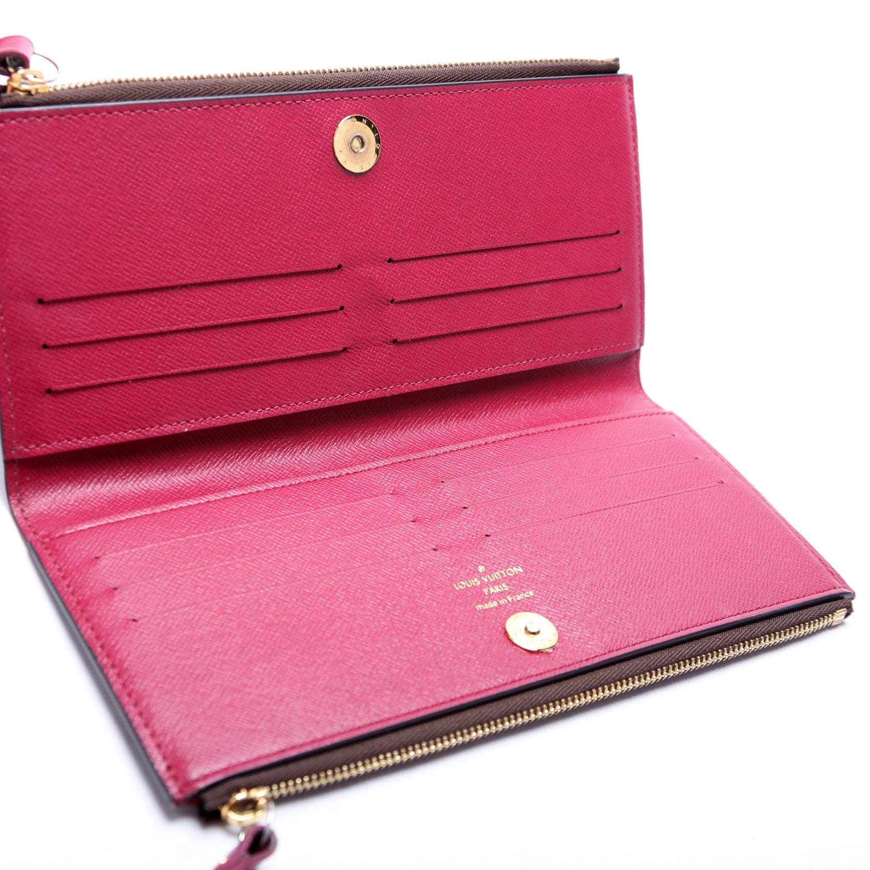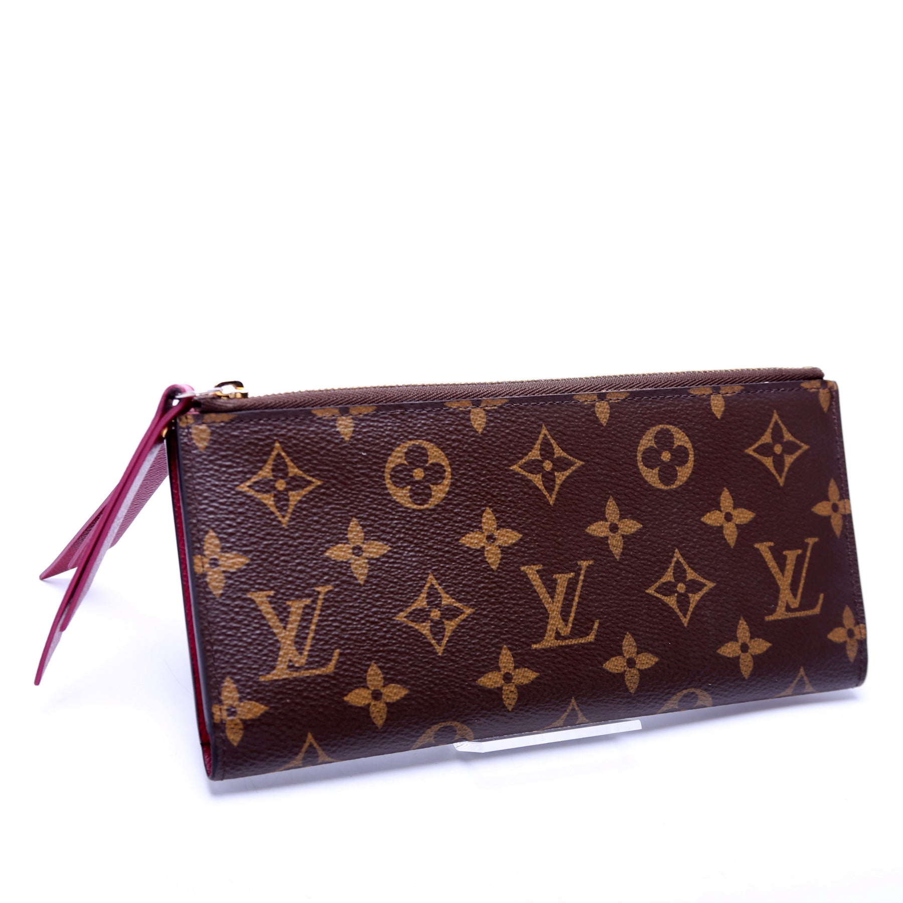 This pre-owned Louis Vuitton Adele Wallet is guaranteed 100% authentic. The exterior is in the classic Louis Vuitton Monogram coated canvas.