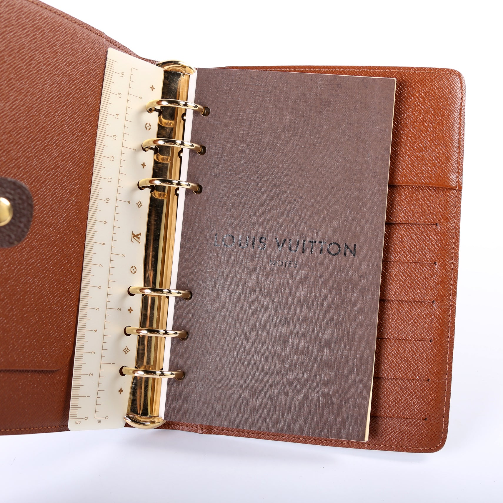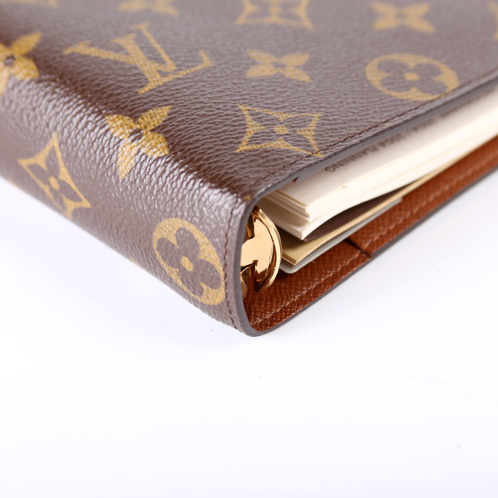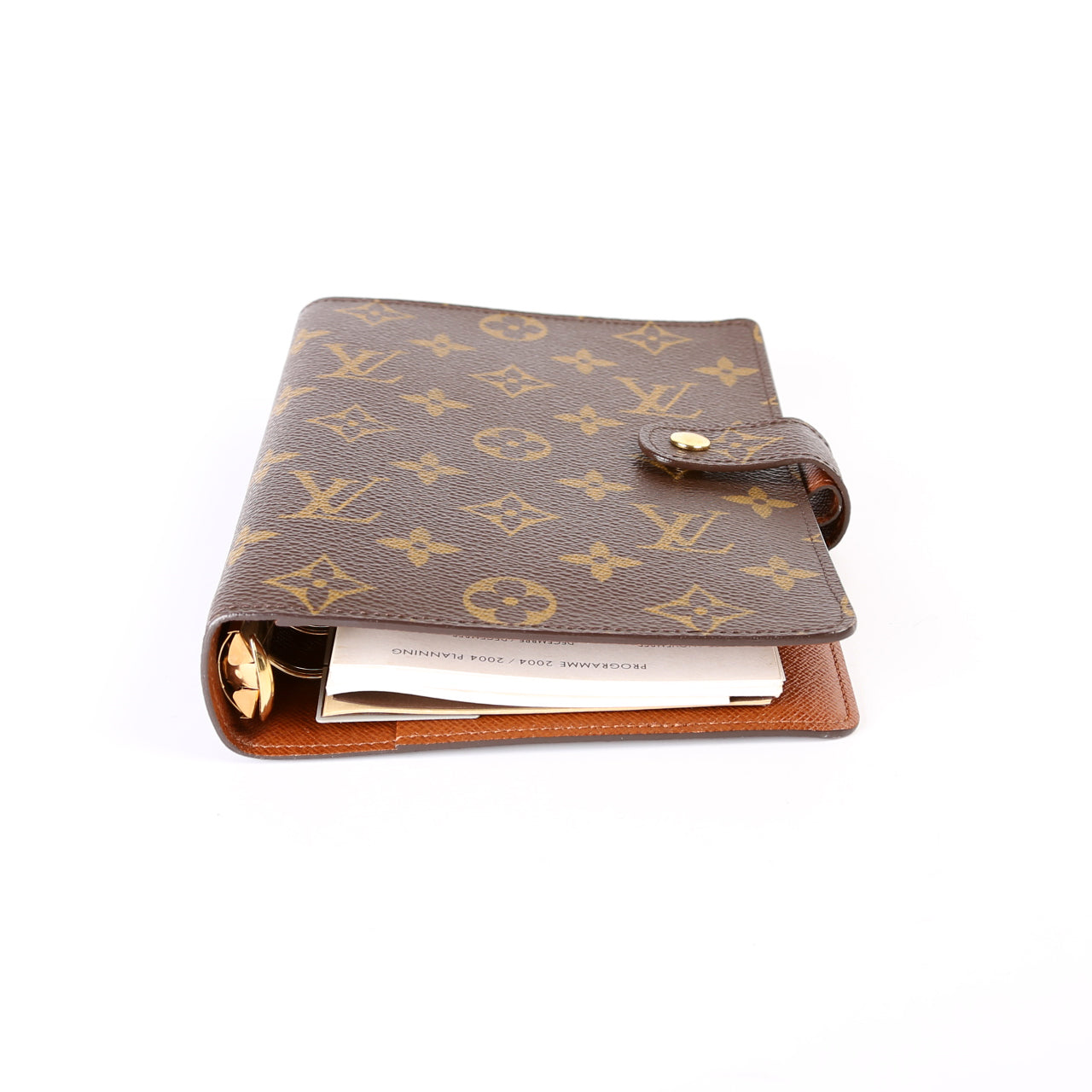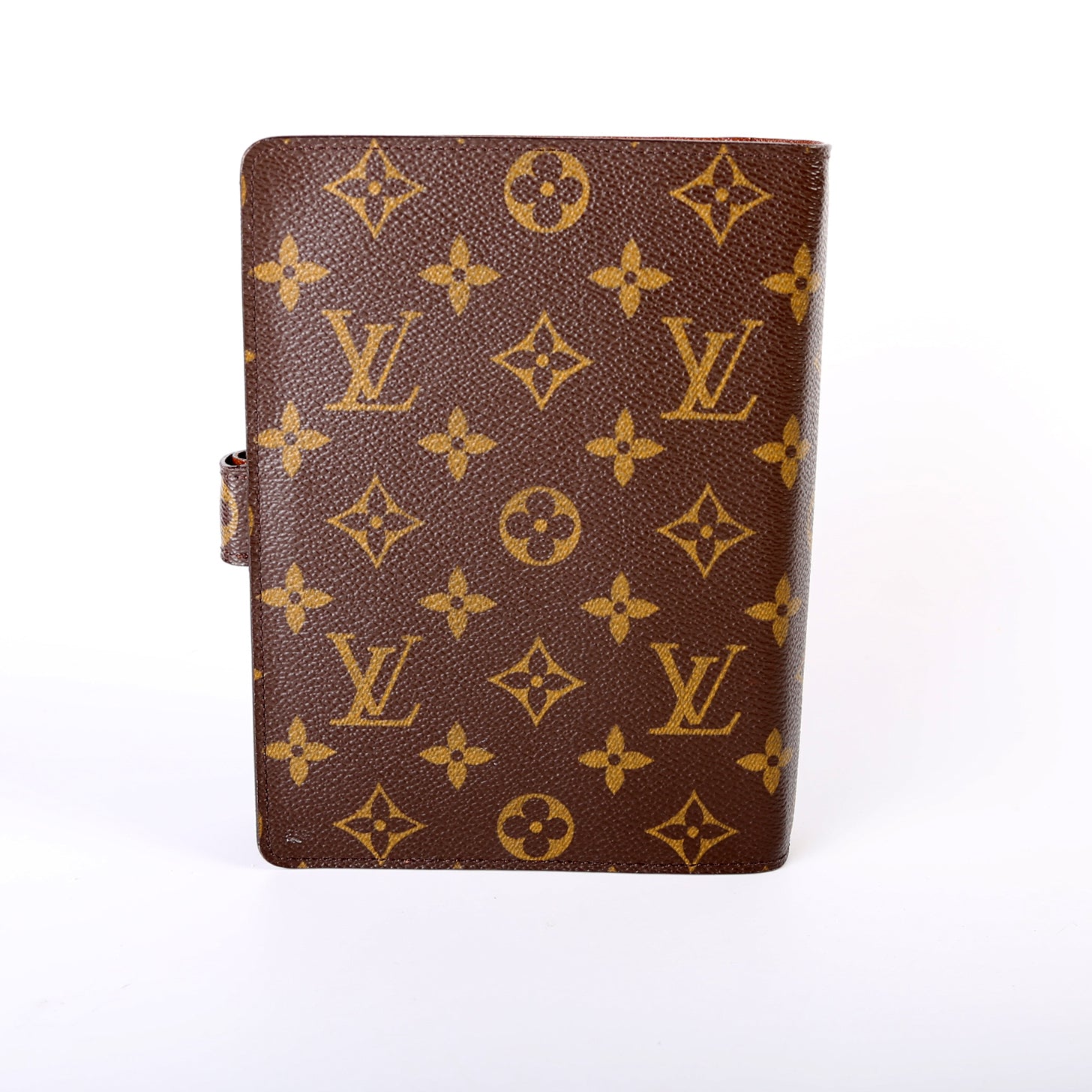 This pre-owned Louis Vuitton Agenda Medium Ring is guaranteed 100% authentic. The exterior is in the classic monogram canvas.
